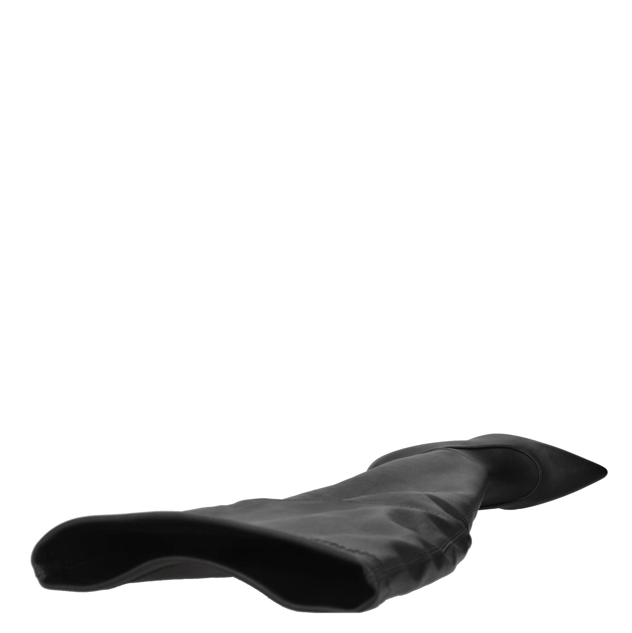 Leather cuissard boots. Stretch. Leather and fabric inner upper. Rubber sole.