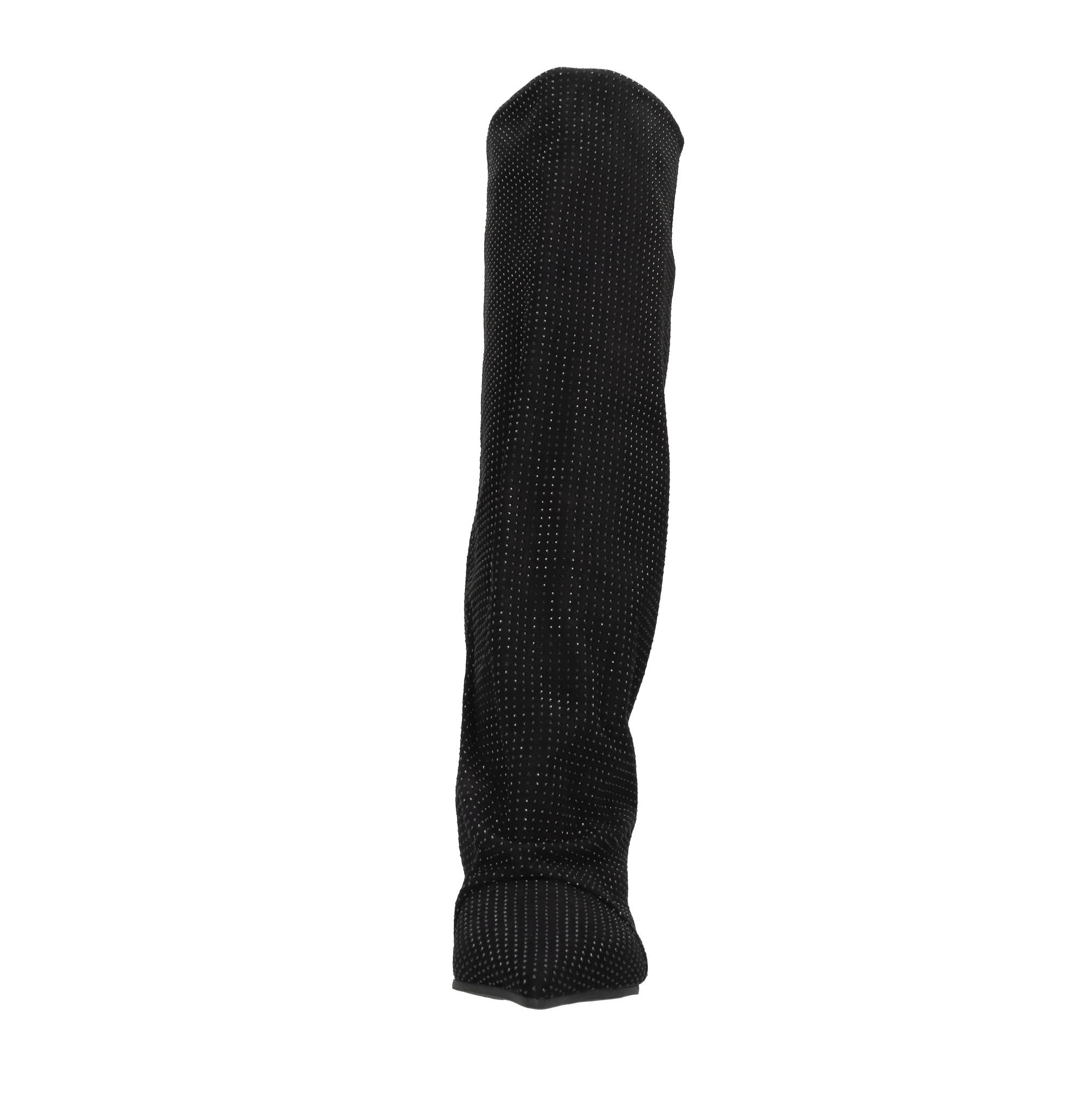 Suede and rhinestone boots. Leather inner upper. Rubber outer sole.