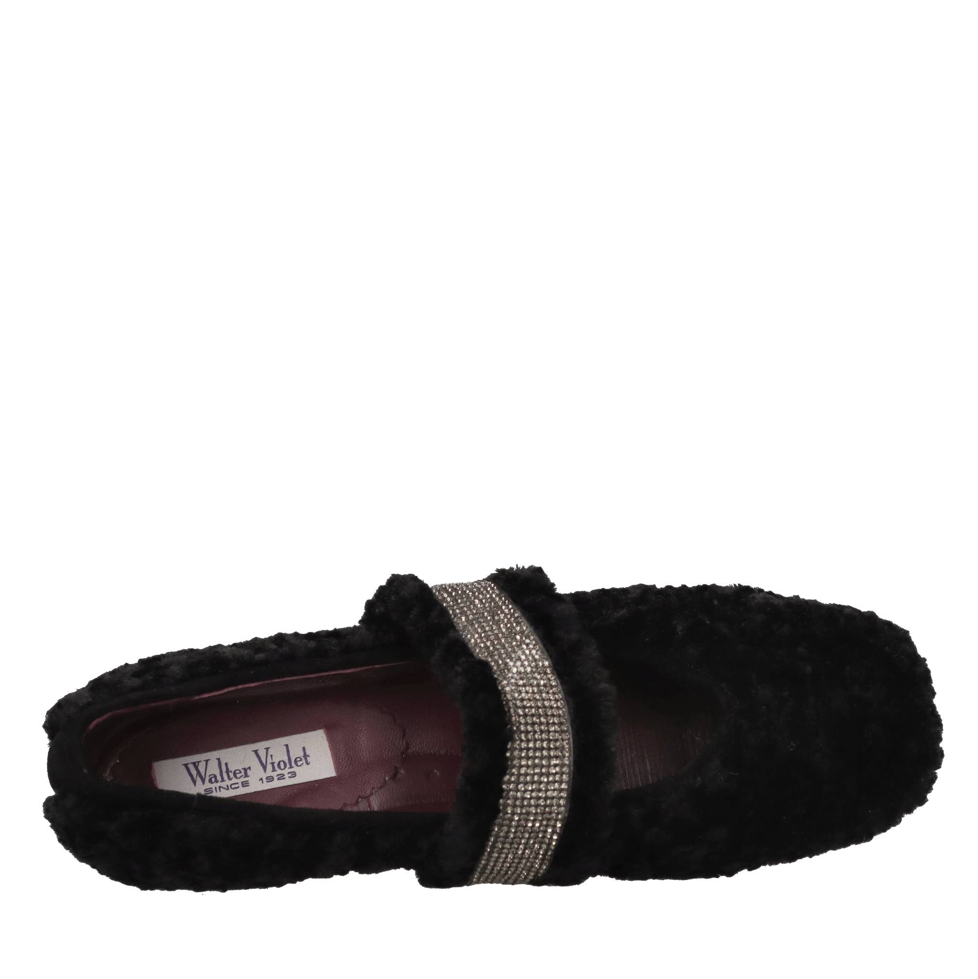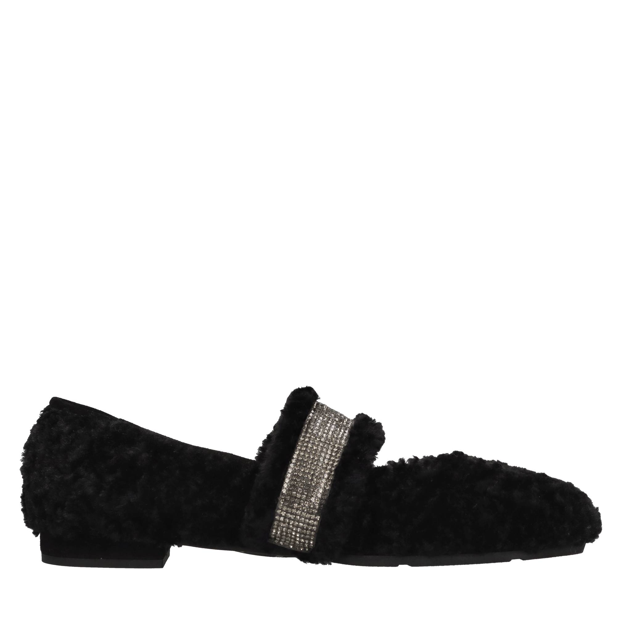 Fabric ballet flats. Band covered with grey rhinestones. Leather inner upper. Rubber outer sole.