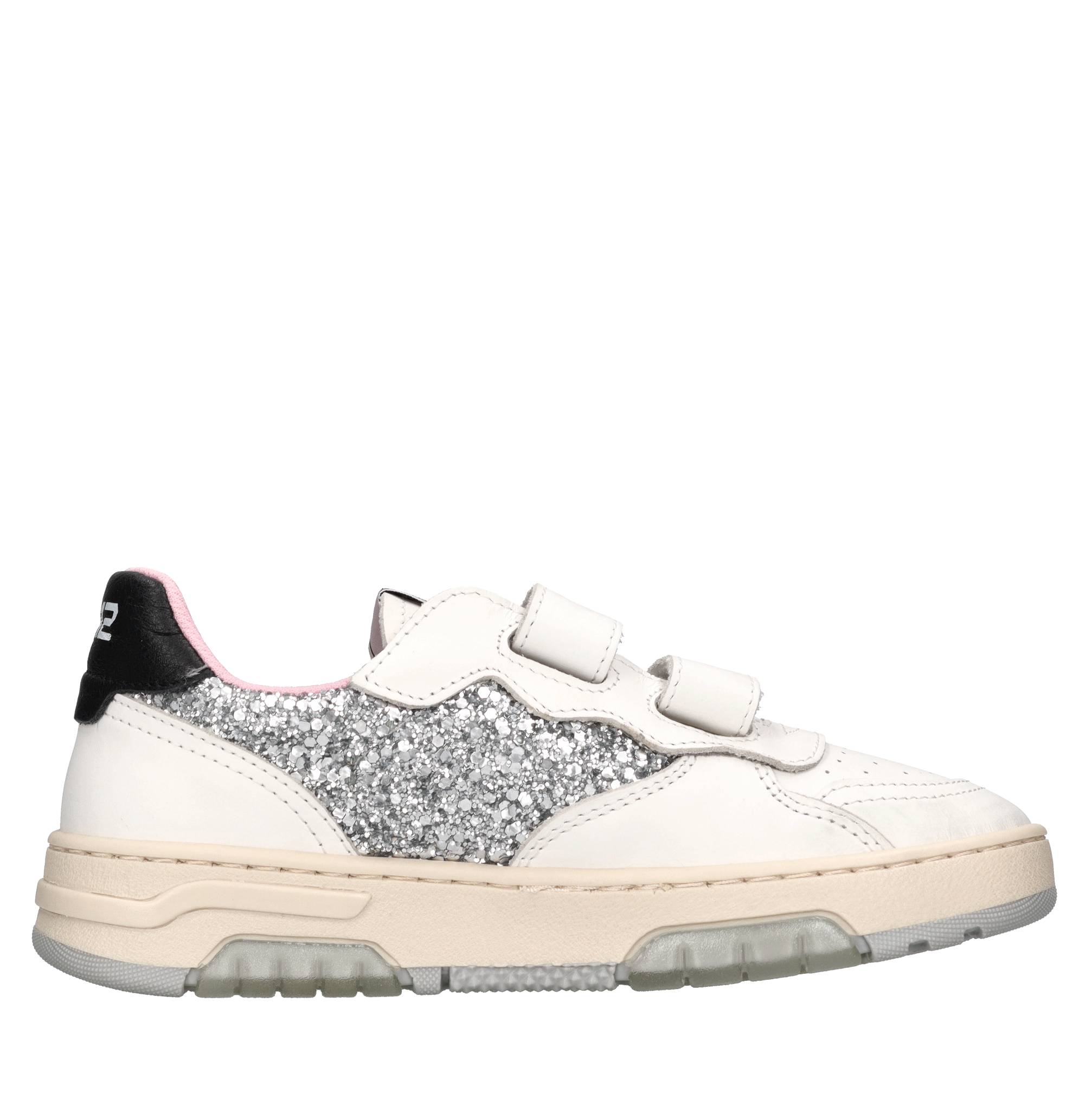 Sneakers in pelle e glitter. Tomaia interna in pelle e tessuto. Suola esterna in gomma.