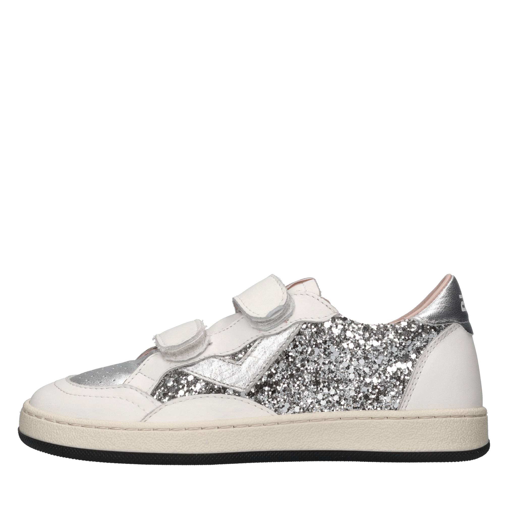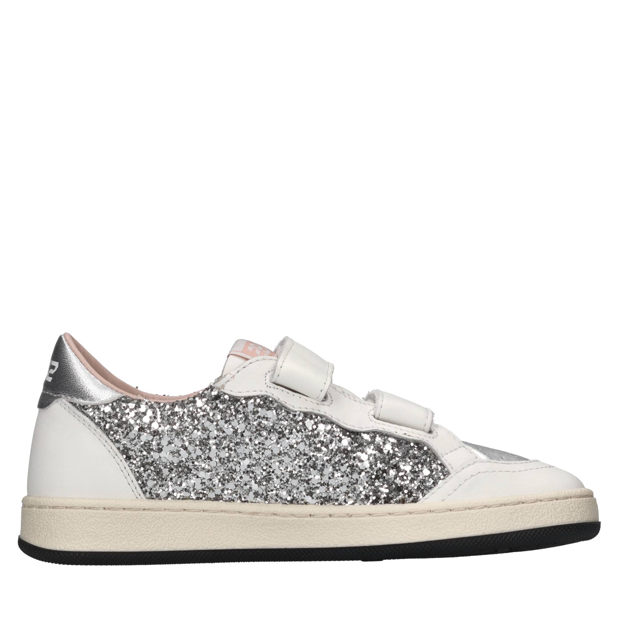 Sneakers in pelle e glitter. Tomaia interna in pelle e tessuto. Suola esterna in gomma.