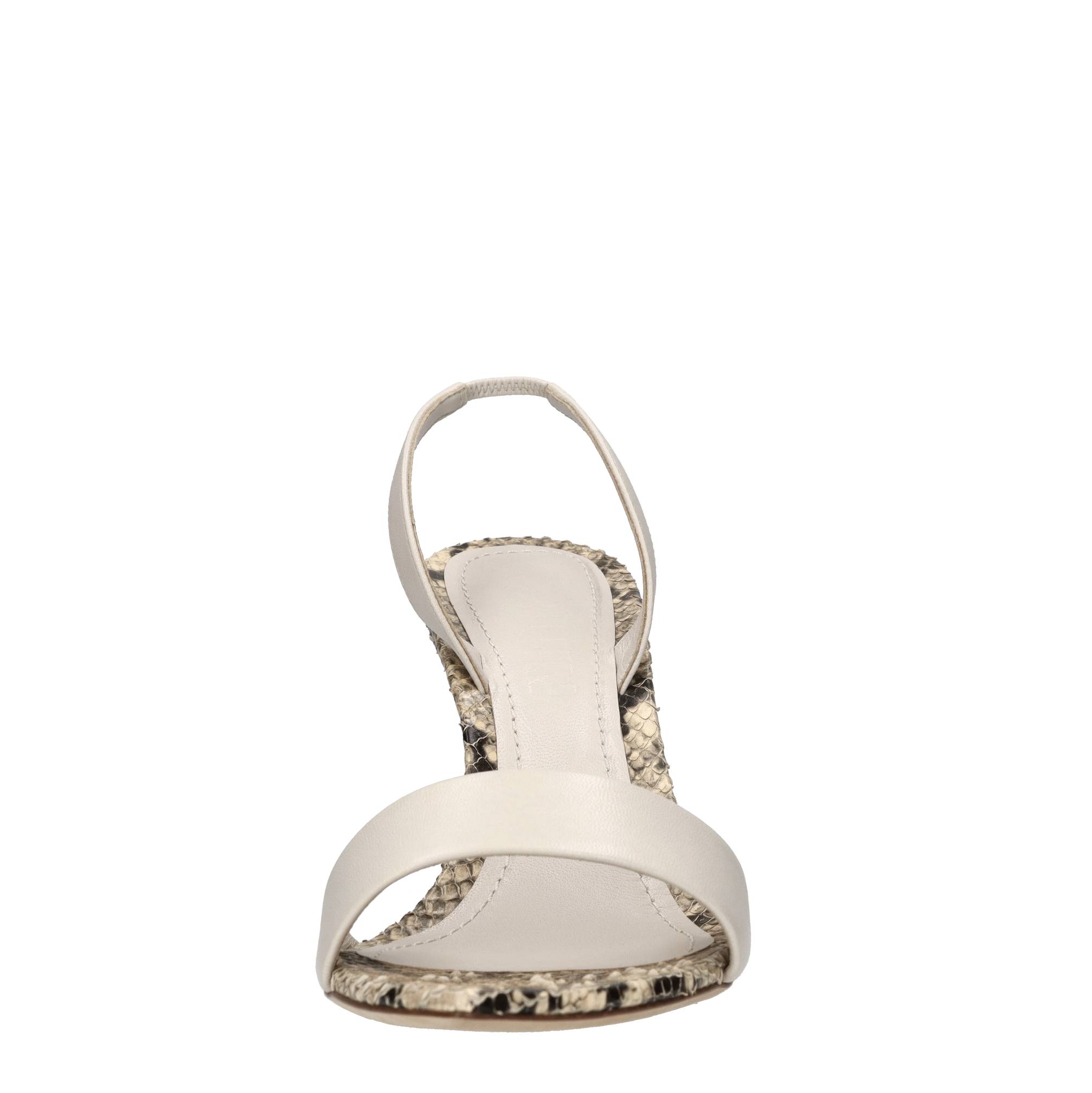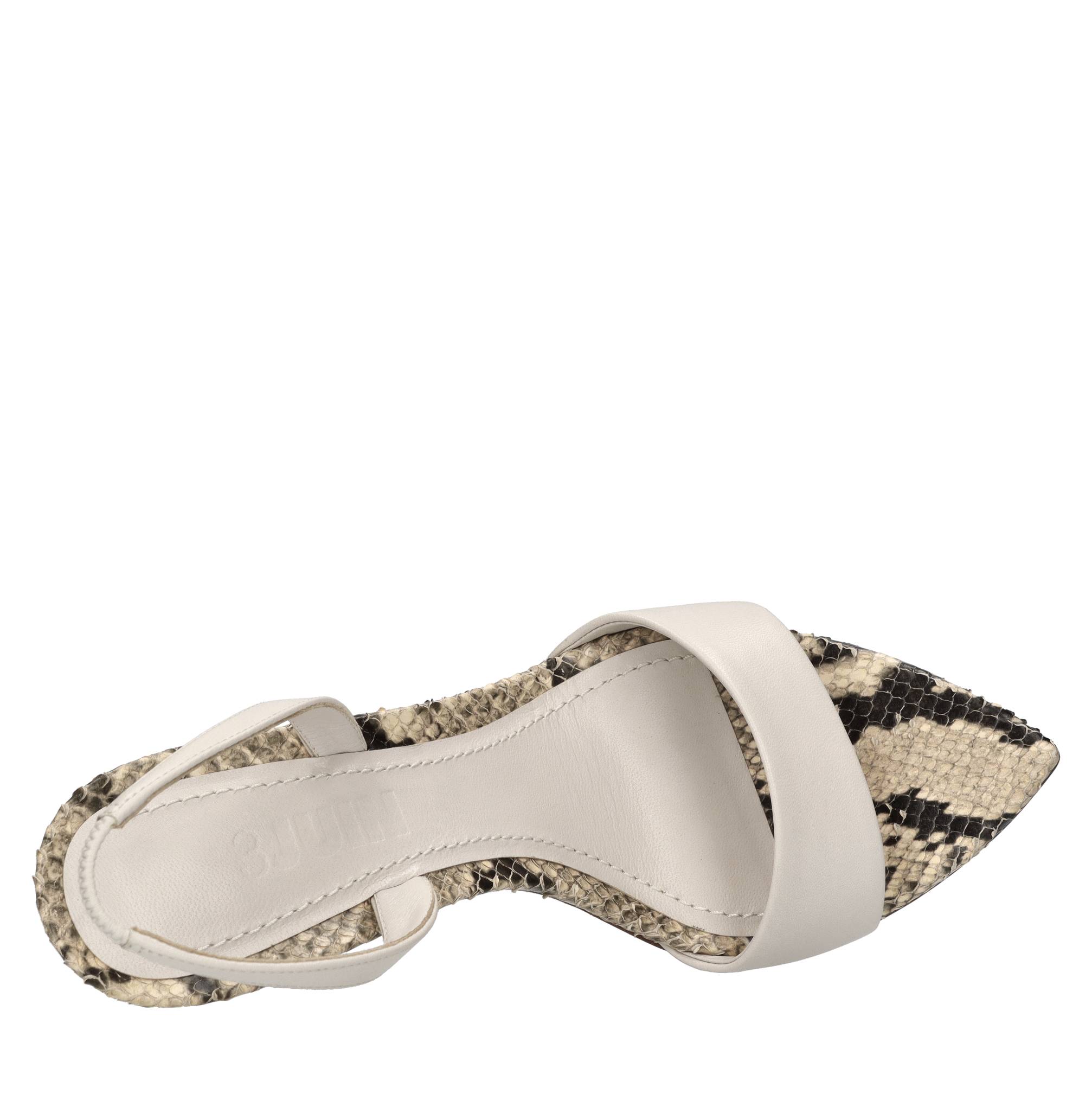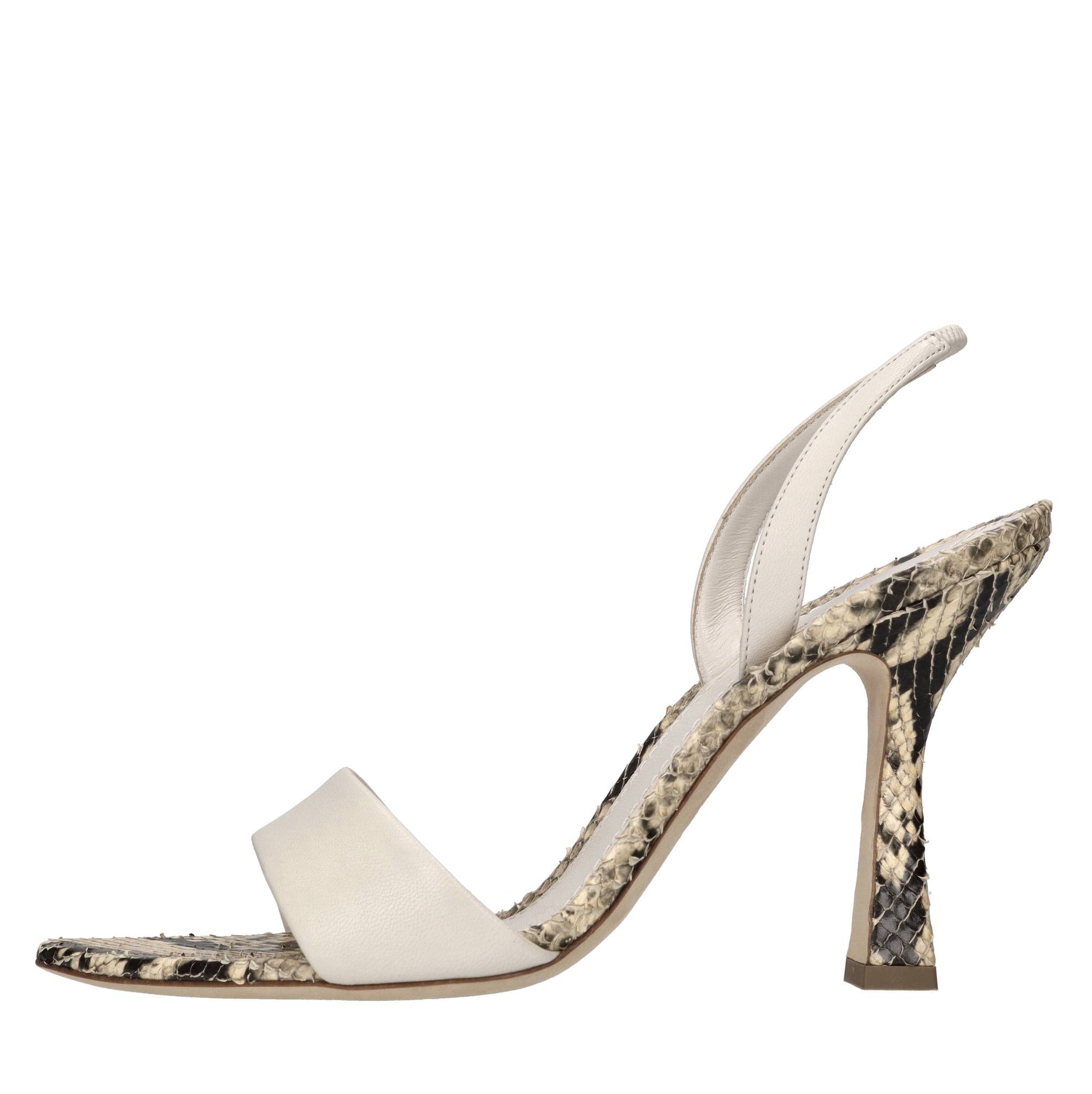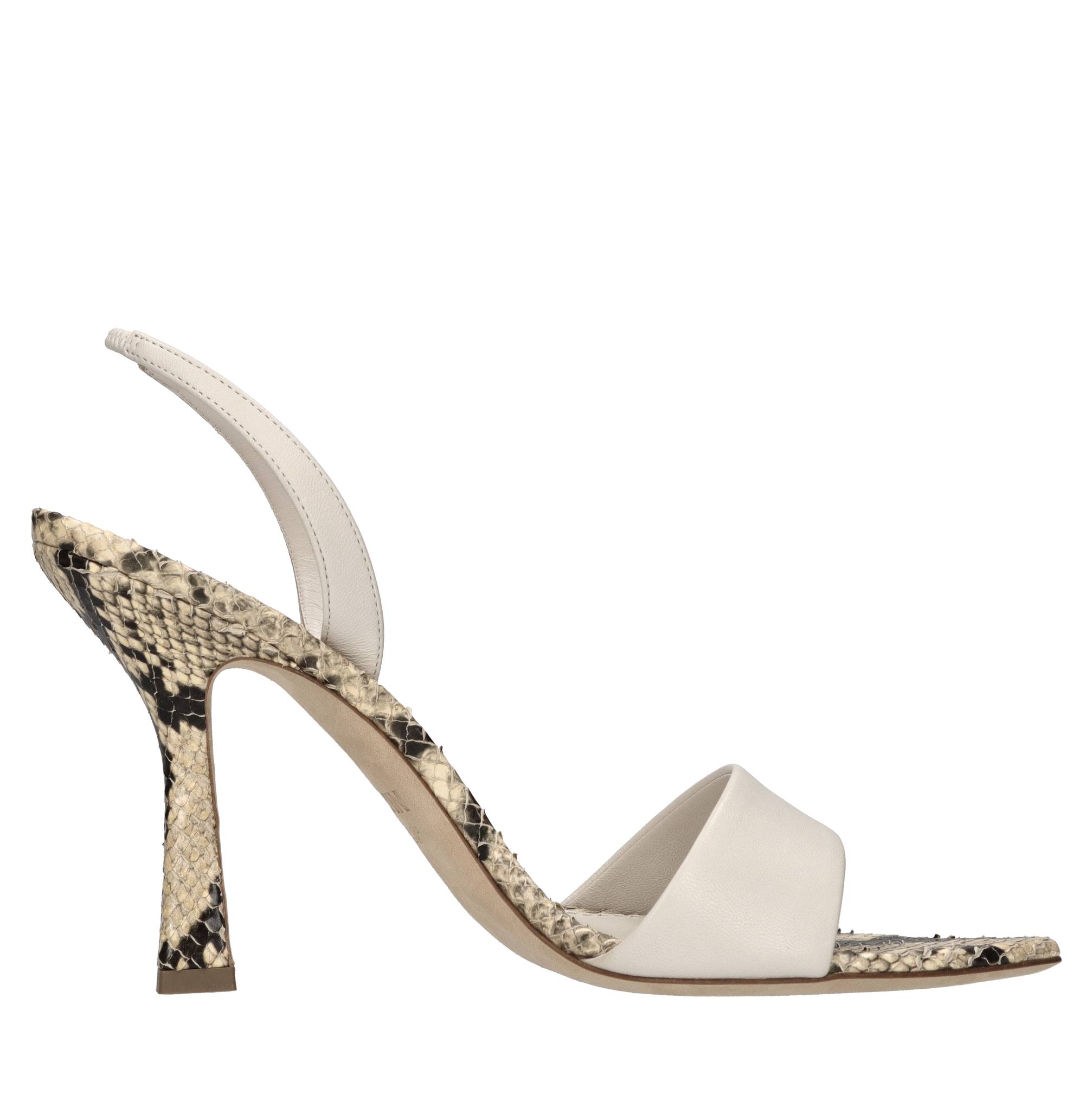 Sandali in pelle stampa pitone. Tomaia interna in pelle. Suola esterna in cuoio.