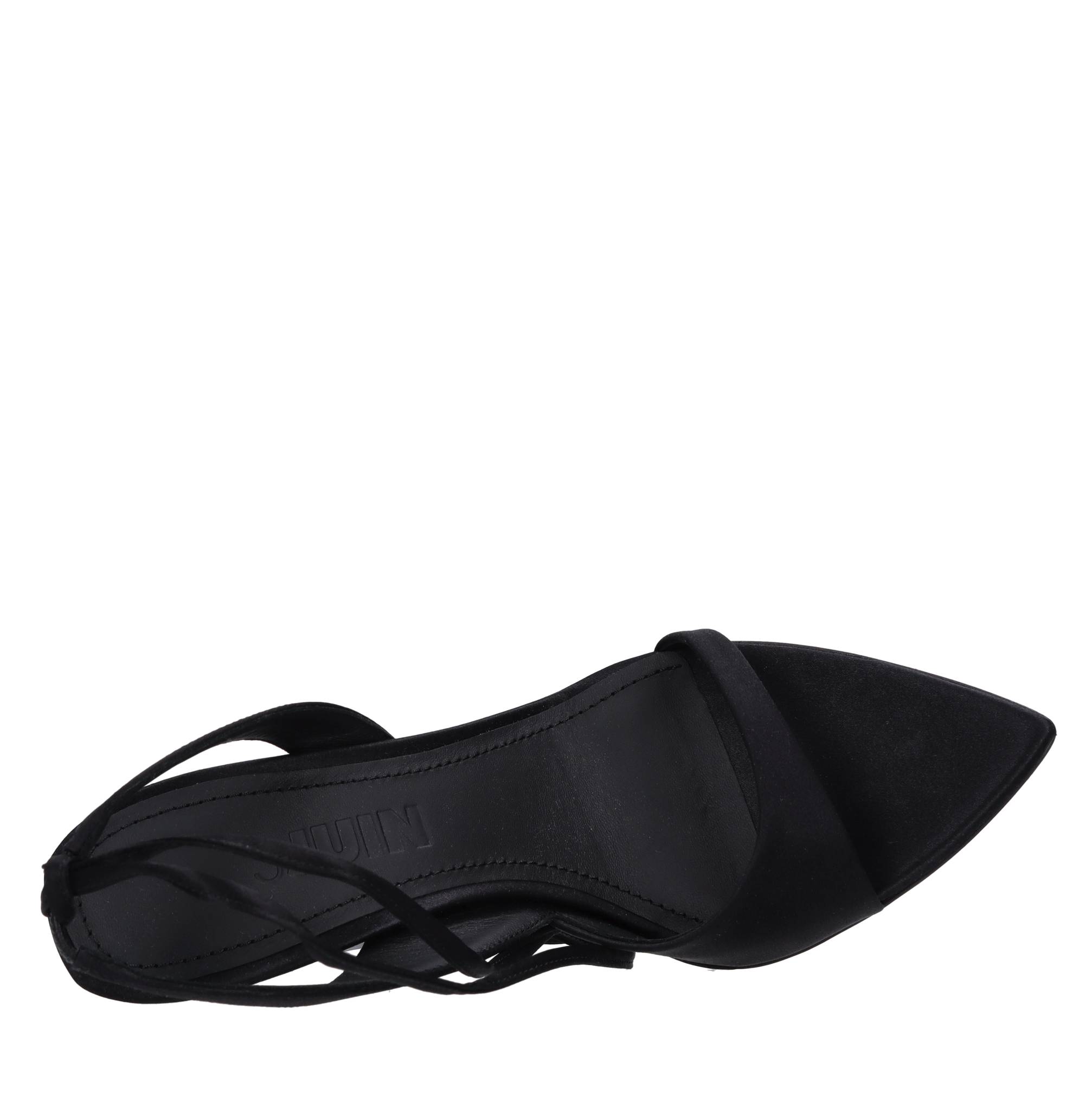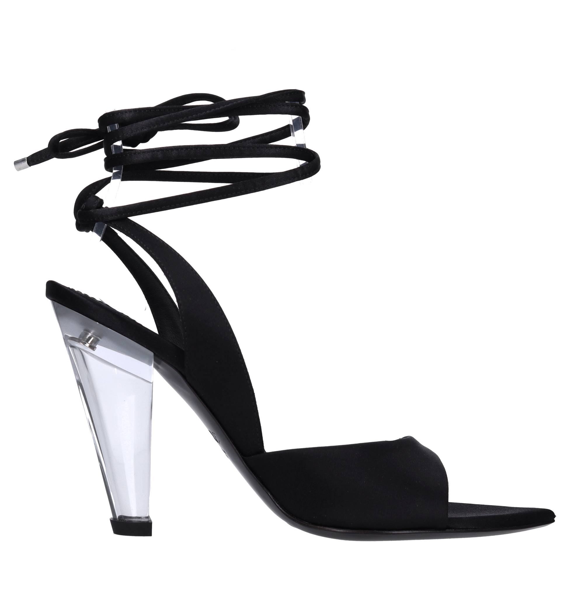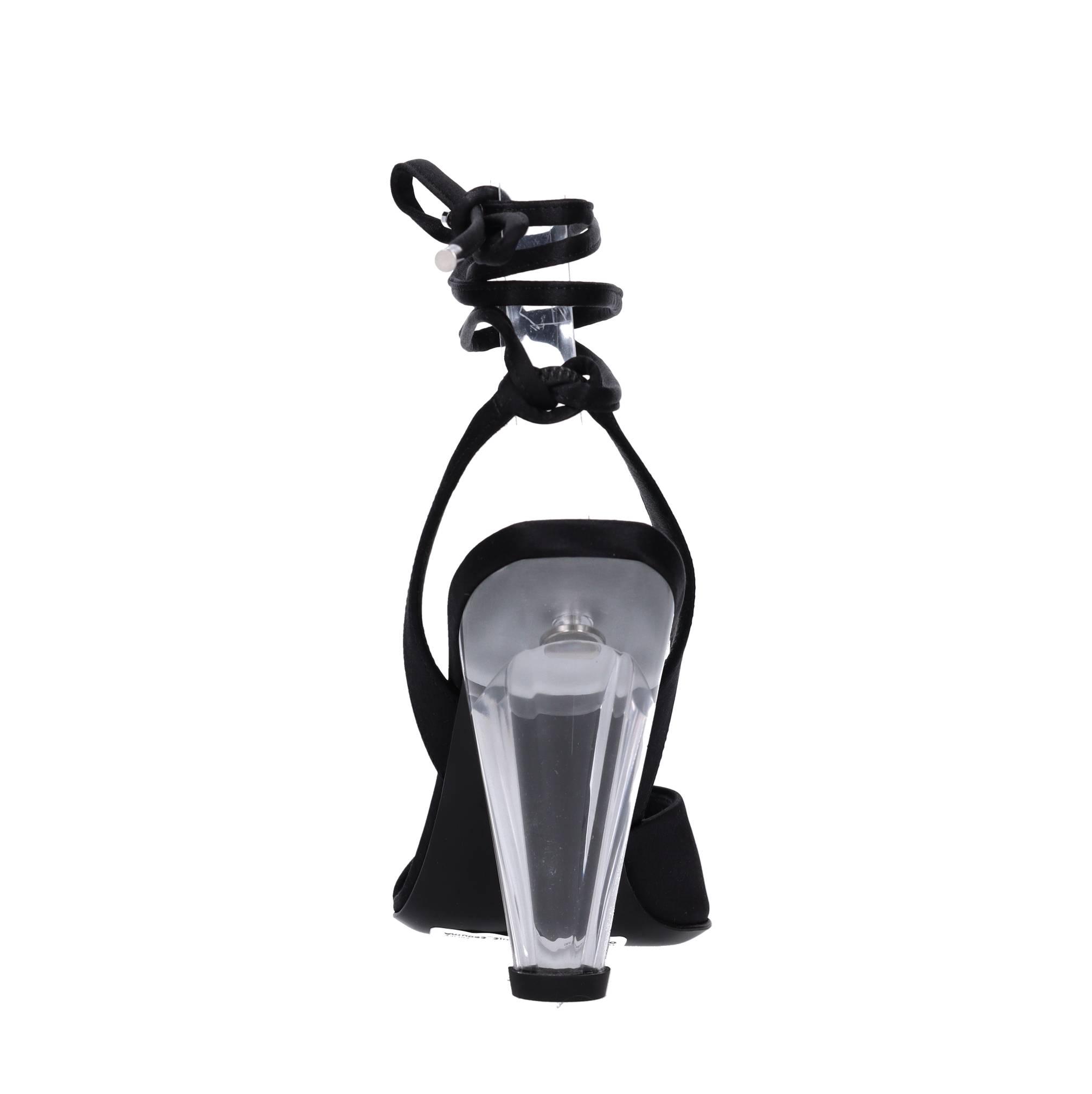 Sandali in raso.Modello Alma.Tomaia interna in pelle.Suola esterna in cuoio.Tacco conico trasparente.