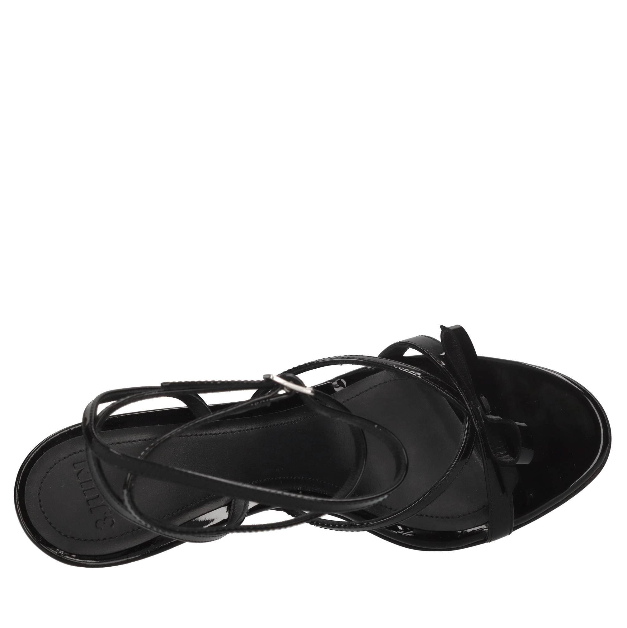 Sandali Megan in vernice. Applicazione fiocco in vernice. Tomaia interna in pelle. Suola esterna in cuoio.