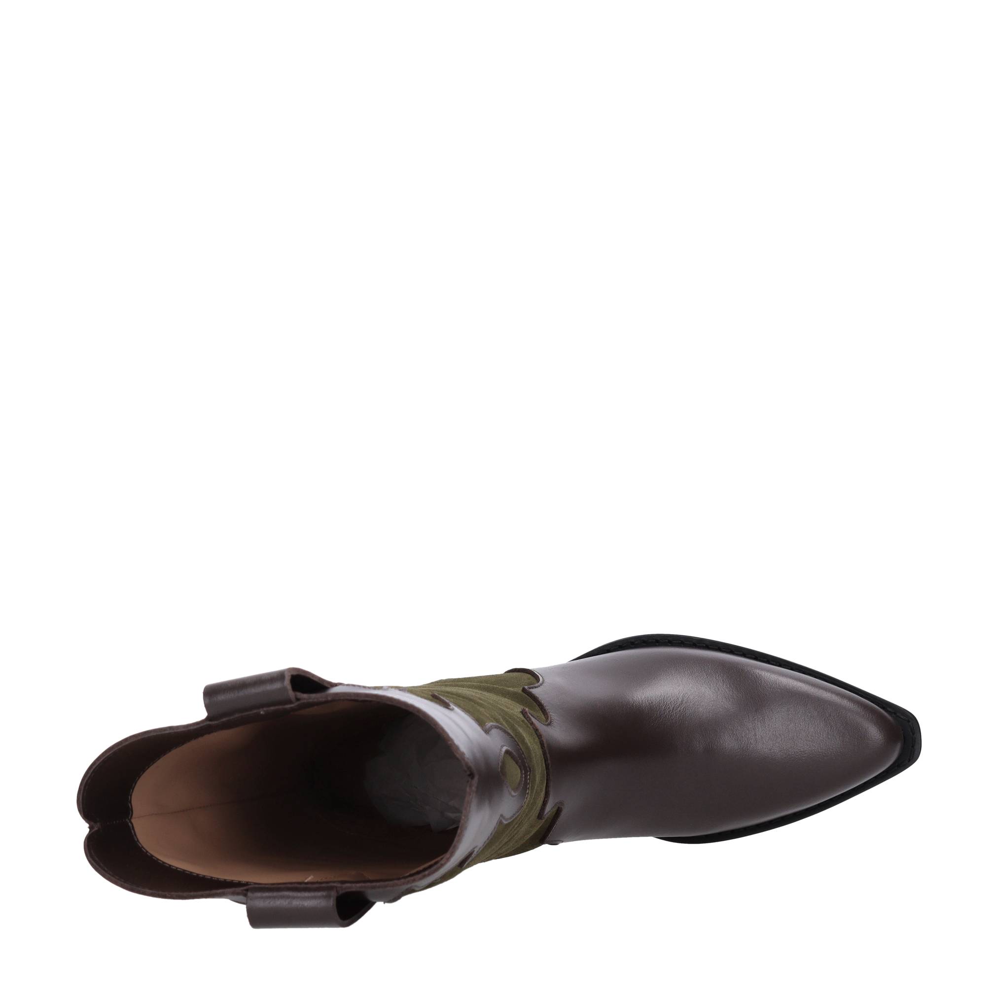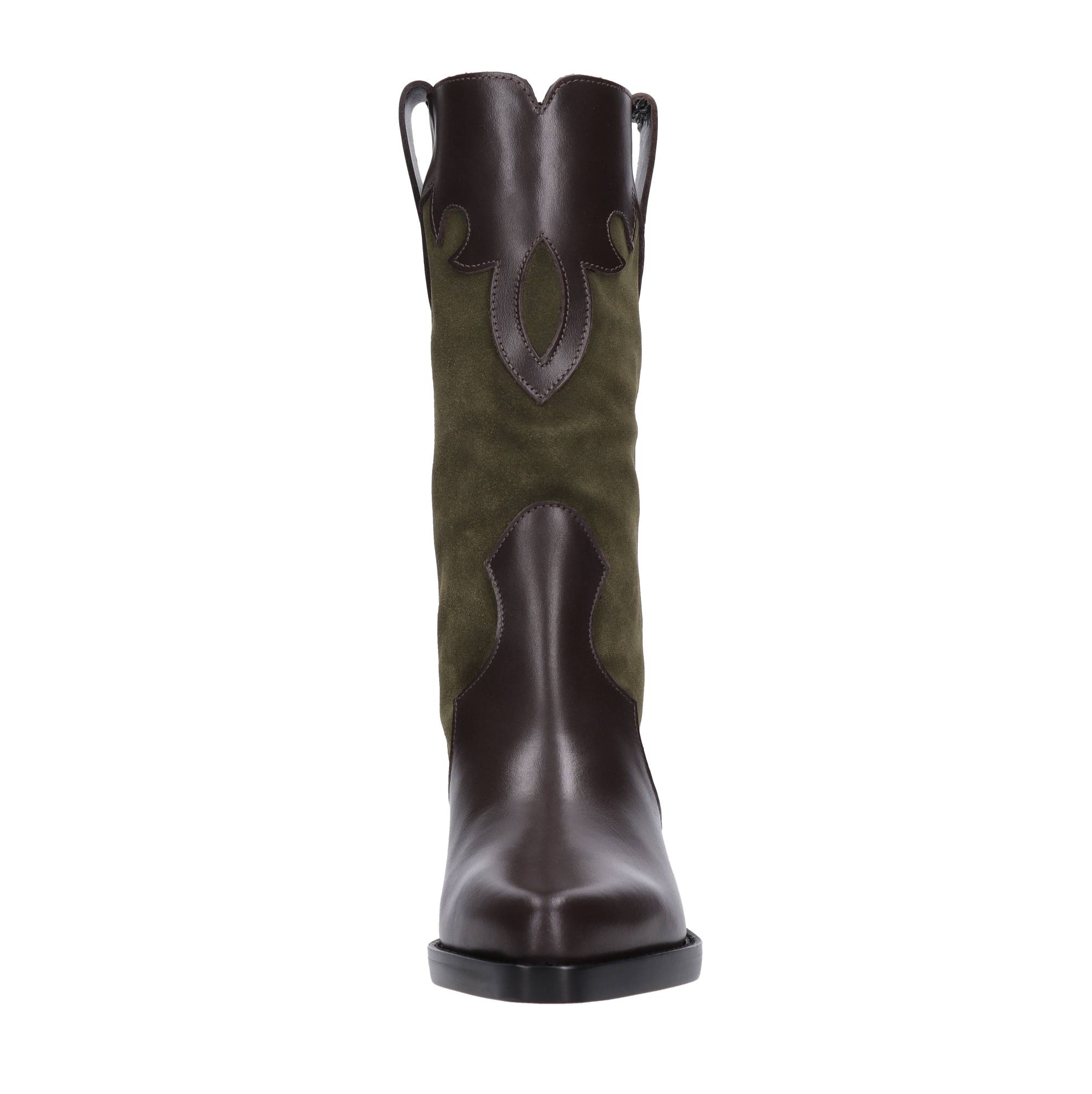 Stivali texani in pelle e camoscio. Tomaia interna in pelle. Suola esterna in cuoio.