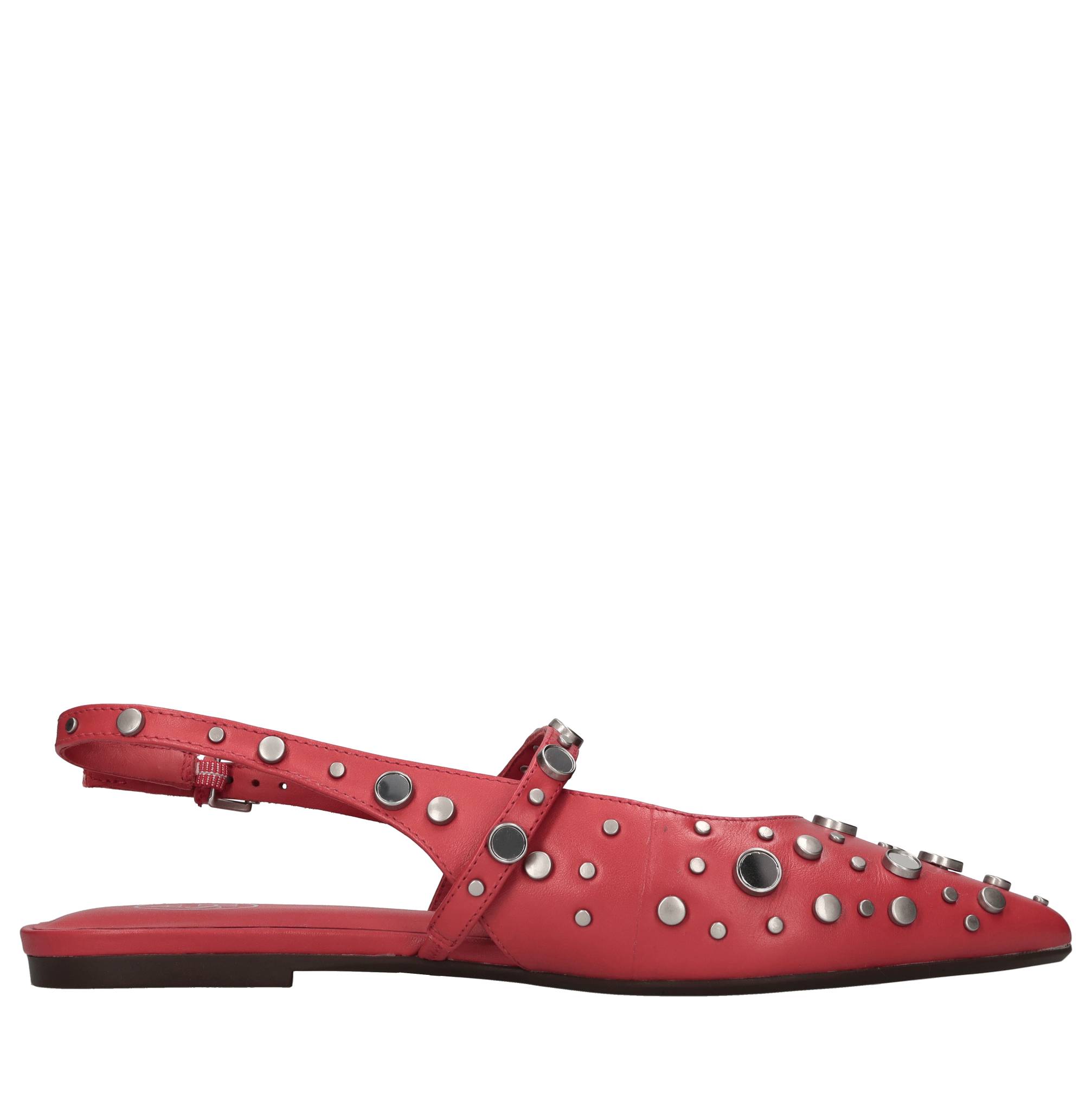 Ballerine slingback Brenda in pelle e borchie. Suola esterna in gomma logata. Tomaia interna in pelle logata.