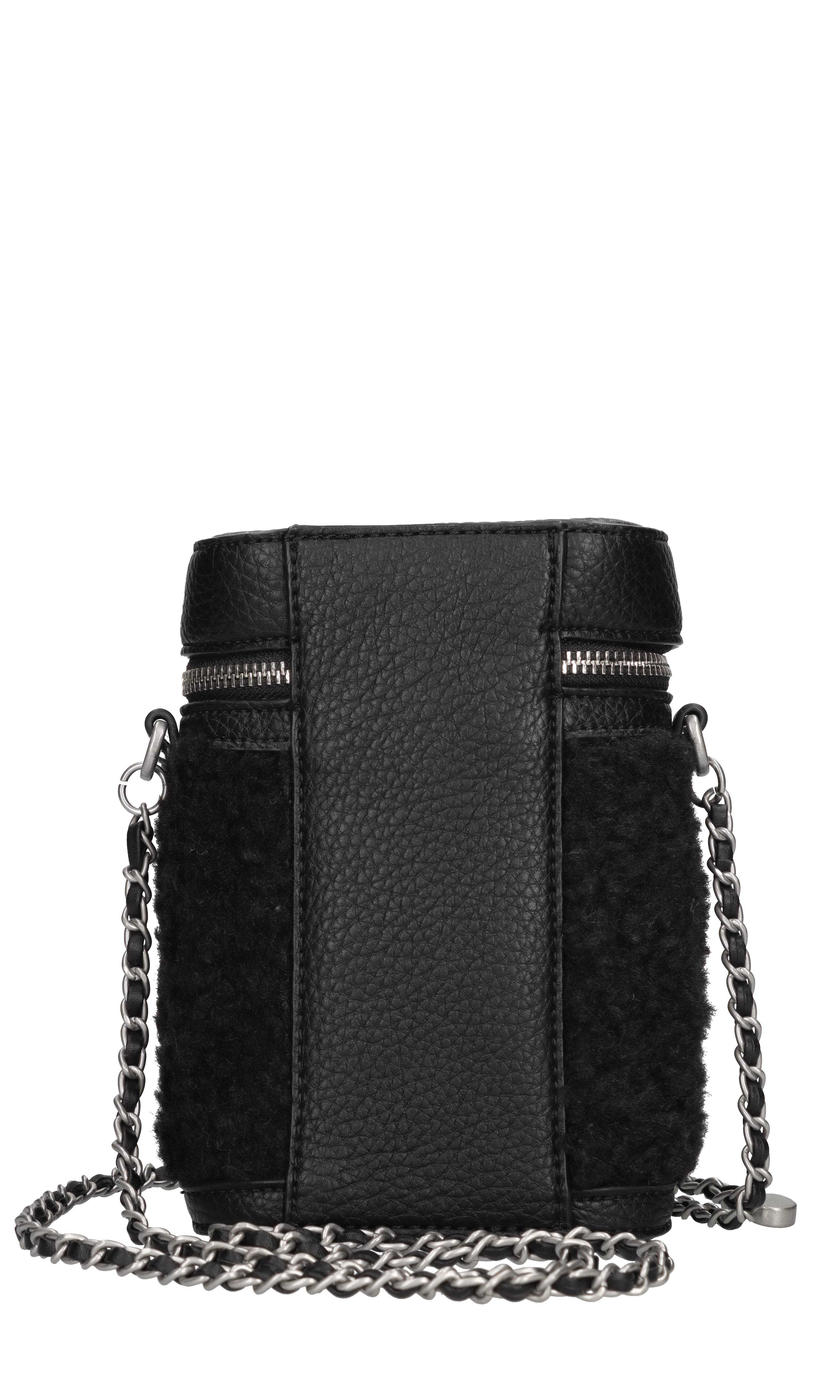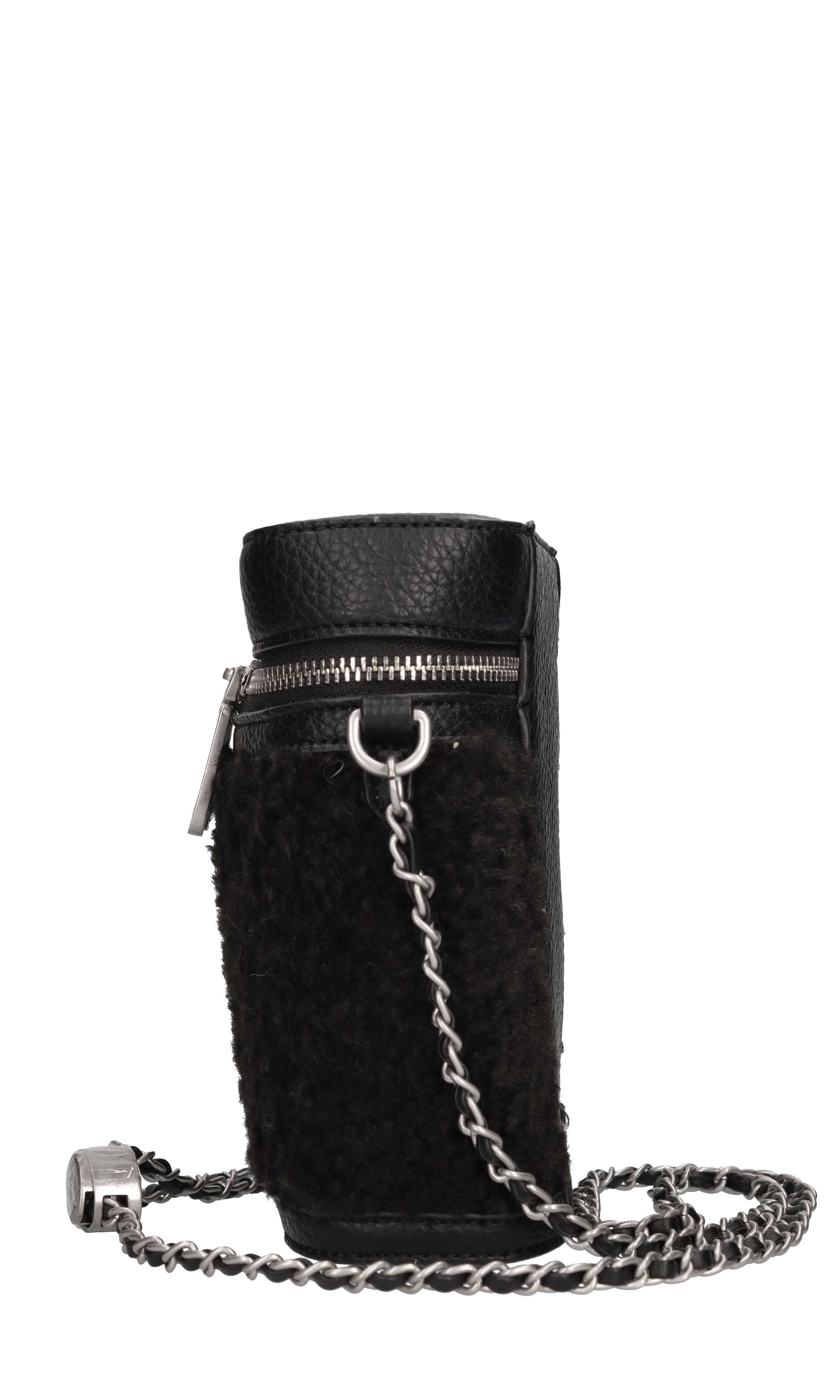 Borsa in pelle ed ecopelliccia. 1 Comparto. Chiusura con zip. Doppio cursore. Tracolla in pelle e silver chain. Senza cartellino.