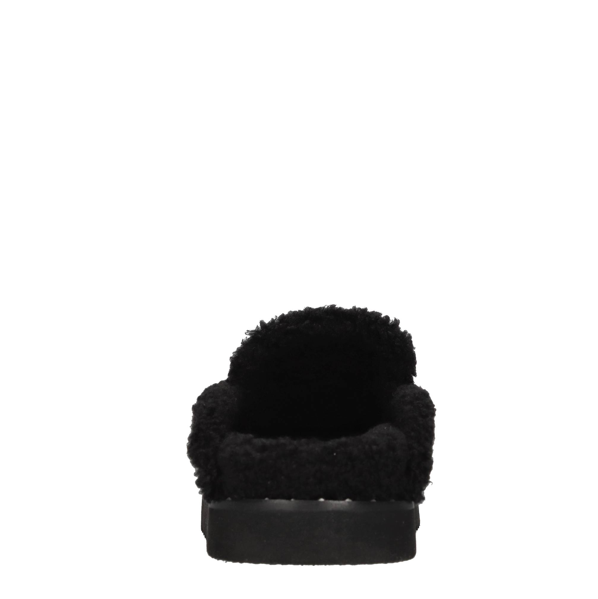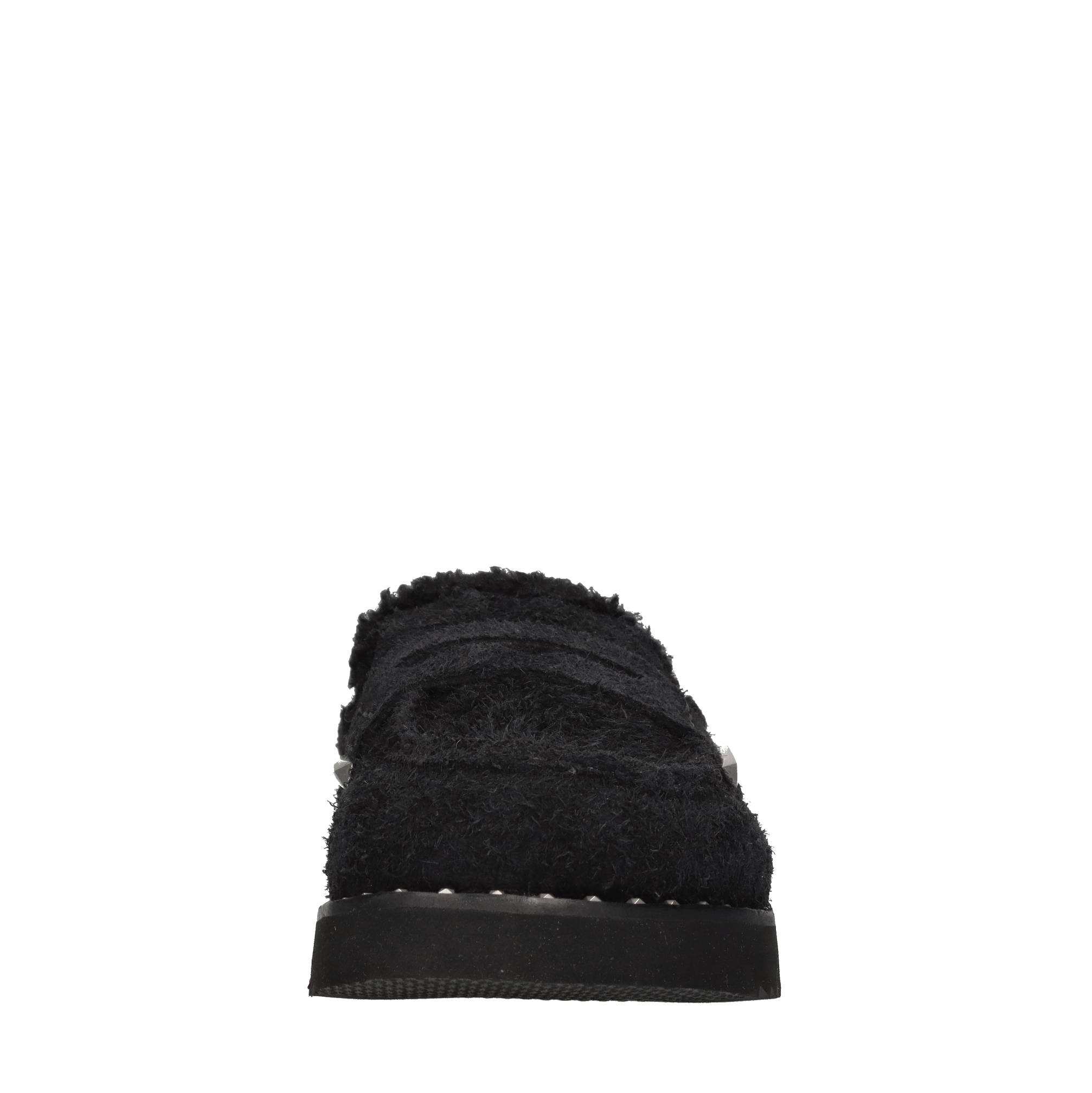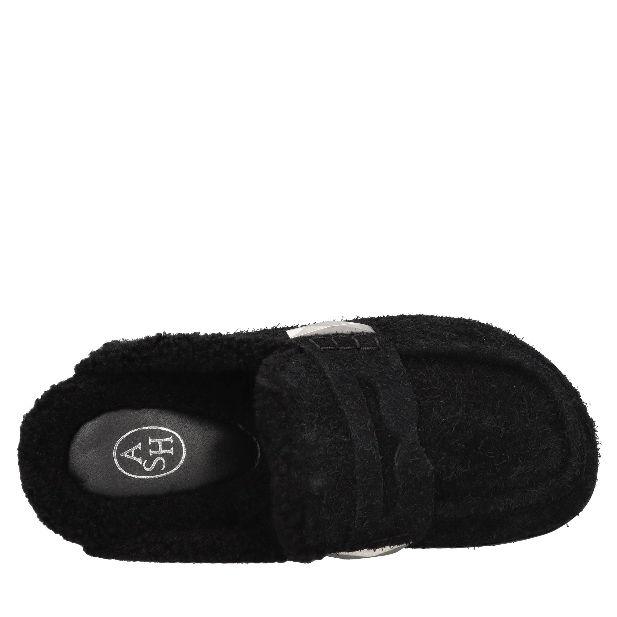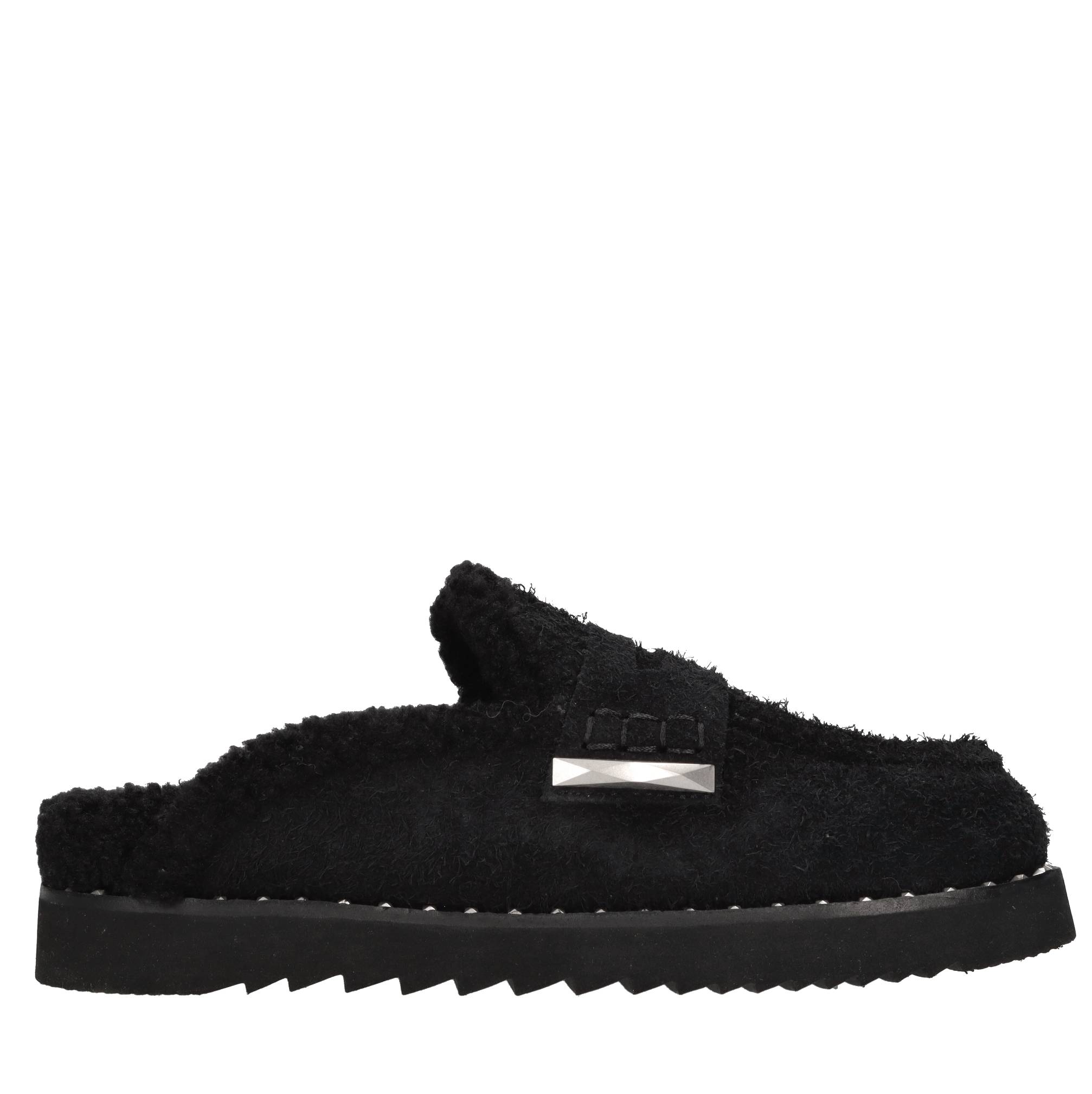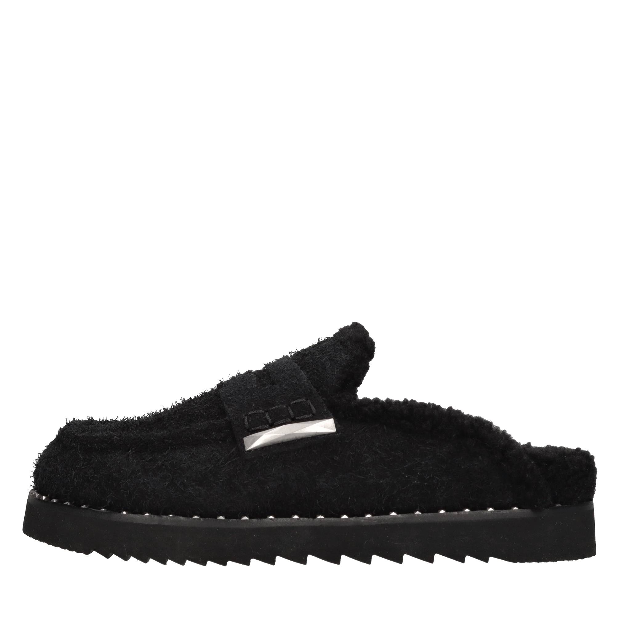Mules in pelle scamosciata. Tomaia interna in ecopelliccia. Suola esterna in gomma.
