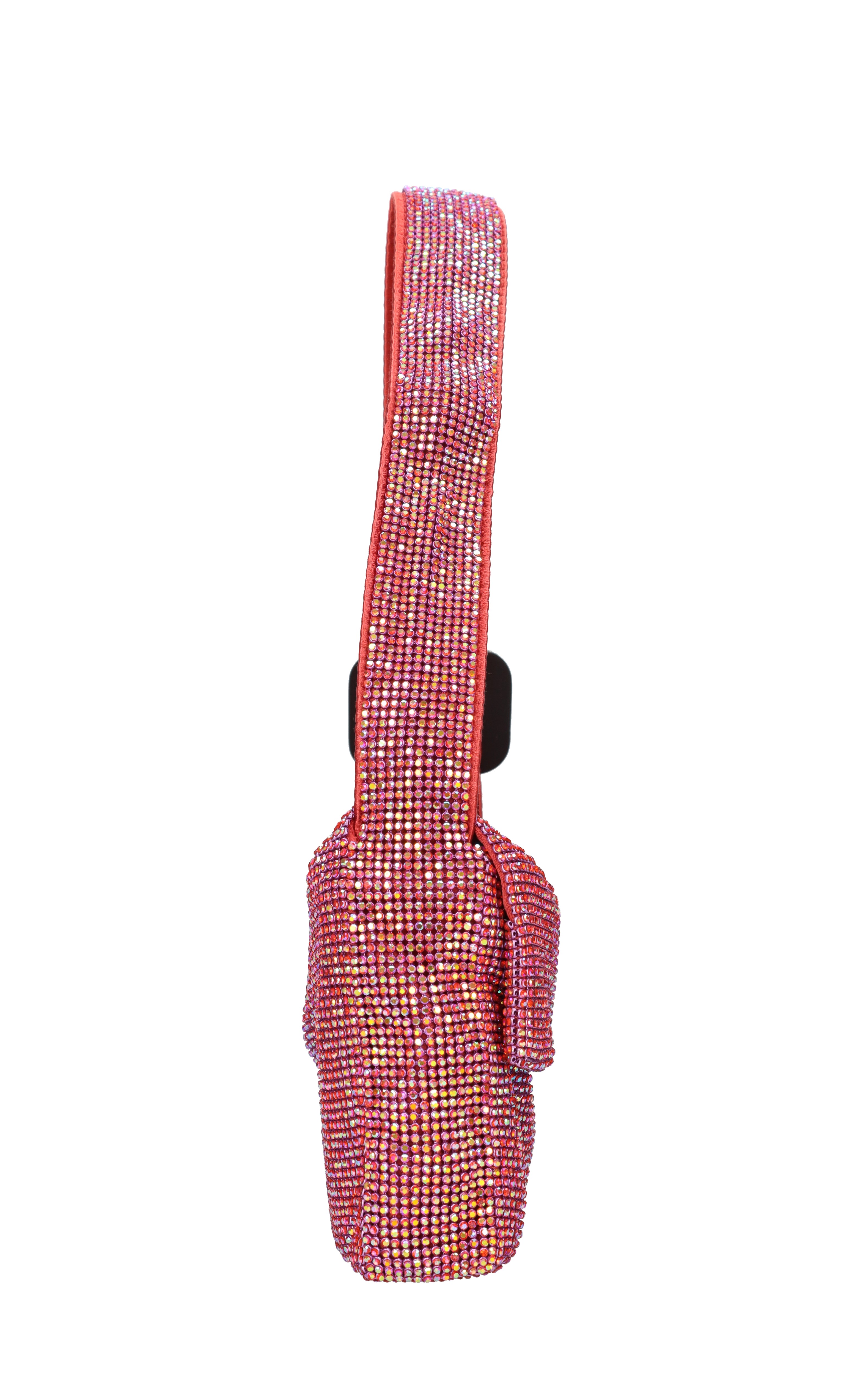 BORSA VITTY . Borsa con decorazione in cristalli, pattina nella parte superiore, chiusura superiore nascosta con zip, applicazione interna con logo e scomparto unico.