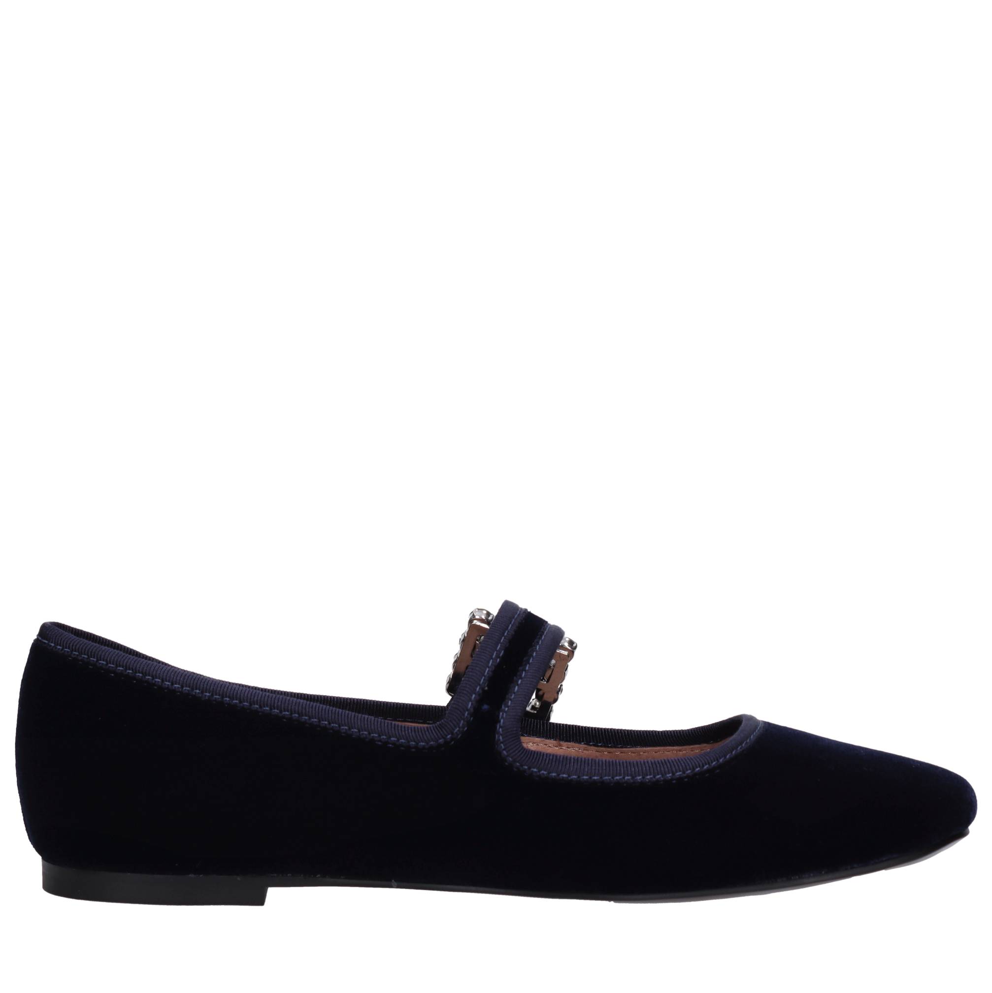 Ballerine in velluto. Tomaia interna in pelle. Suola esterna in gomma.