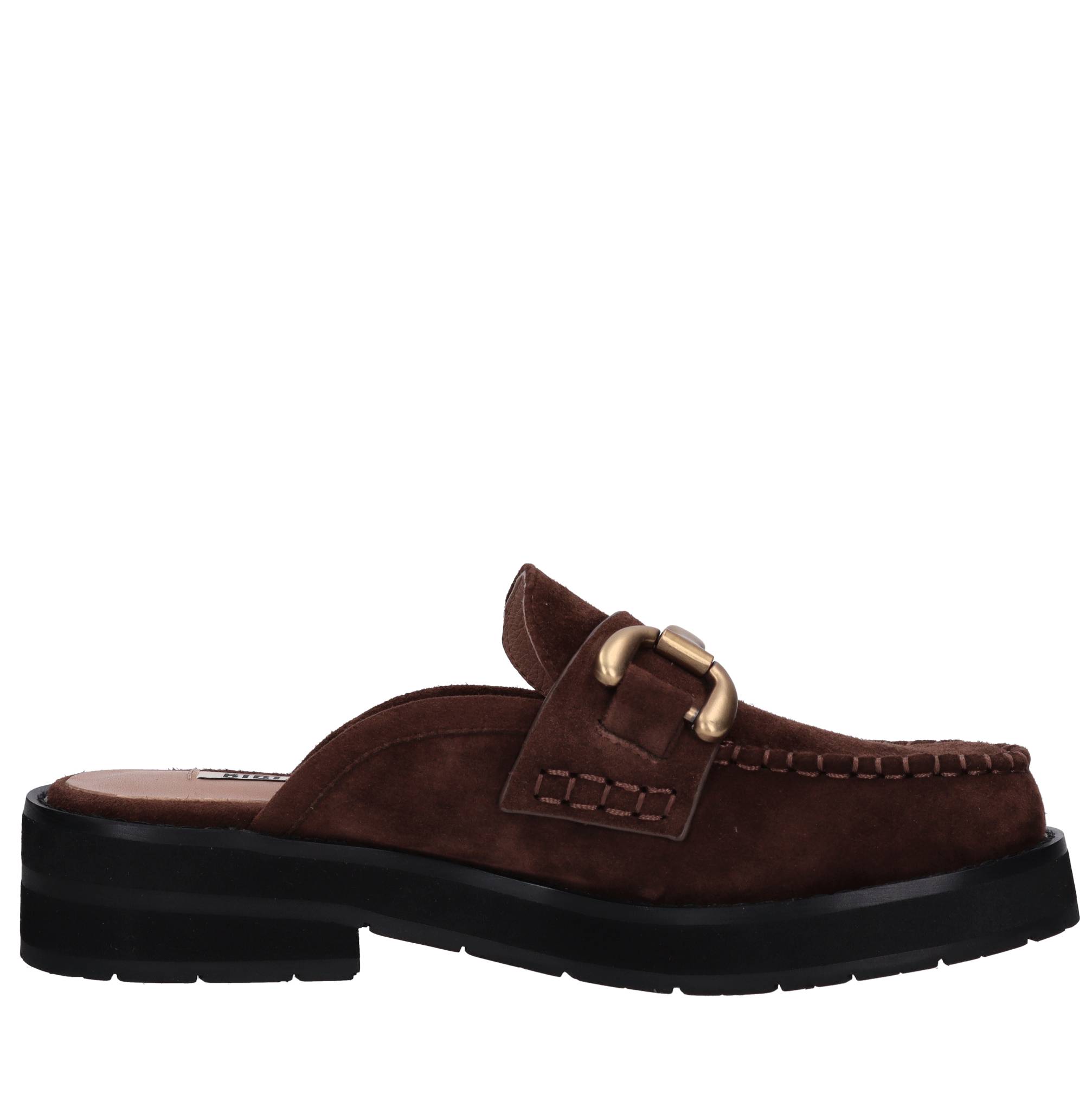 Sabot in camoscio. Tomaia interna in pelle. Suola esterna in gomma.