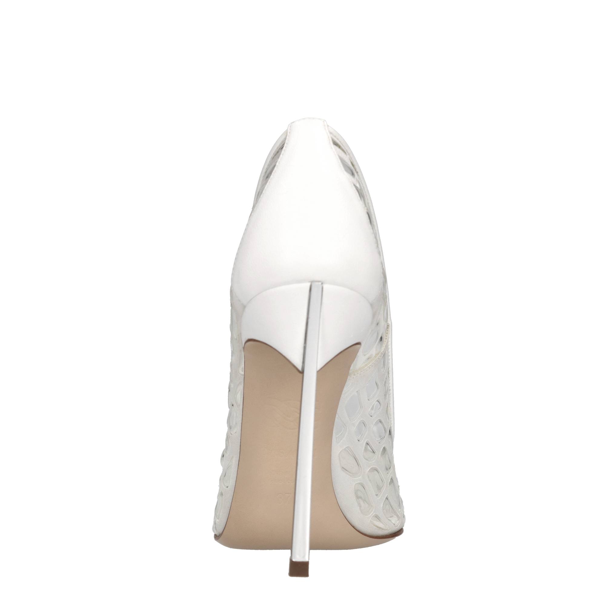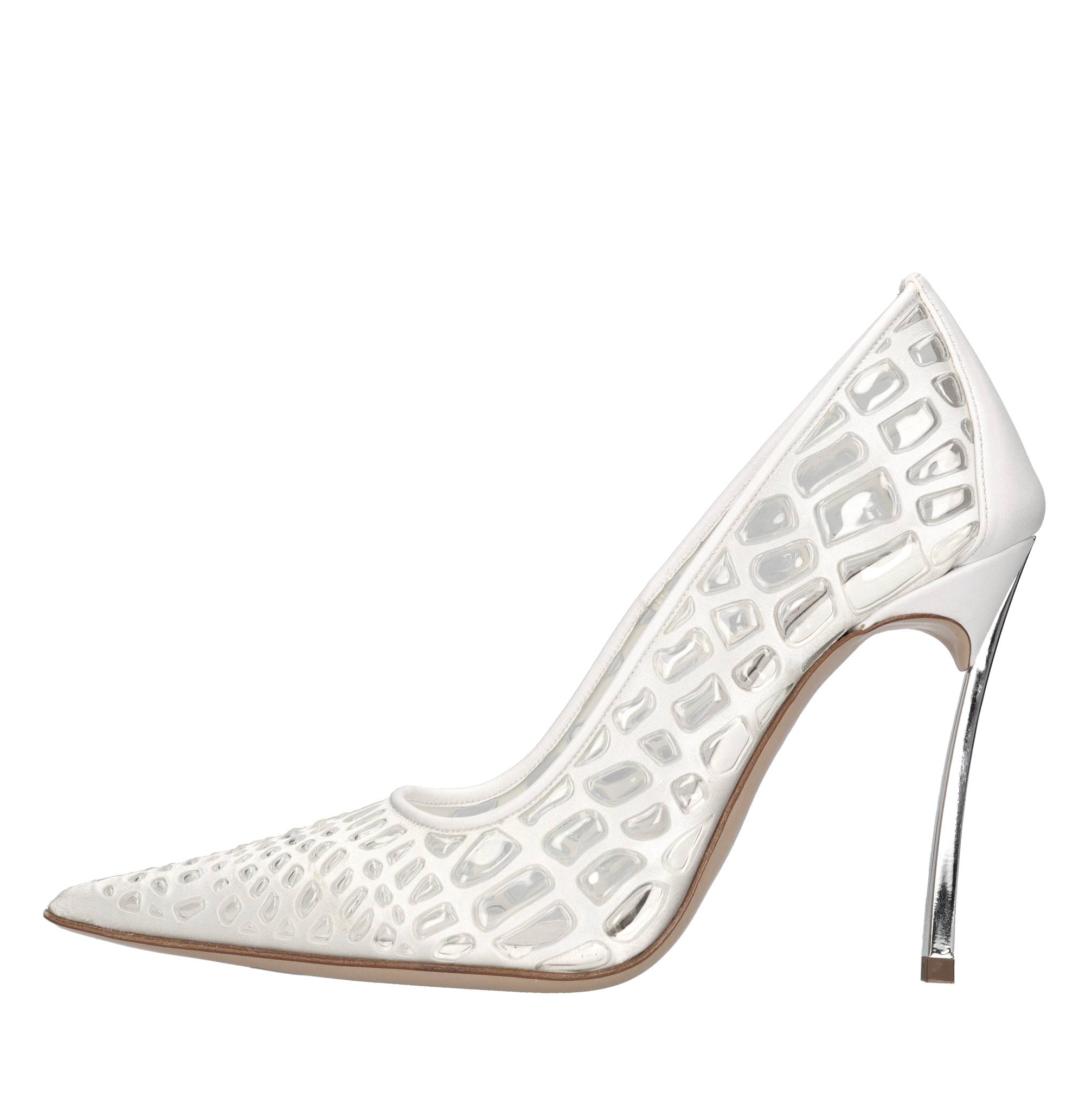 Décolleté blade in plexi e pelle. Suola esterna in cuoio. Tomaia interna in pelle. Campionario. Piccole imperfezioni. Spedito su scatola neutra. Sconsigliamo l'applicazione della gomma protettiva alla suola. Tale operazione altera l'equilibrio della scarpa e può causare la rottura del tacco. L'eventuale riparazione del danno a causa di tale modifica, qualora richiesta, sarà a carico del cliente.