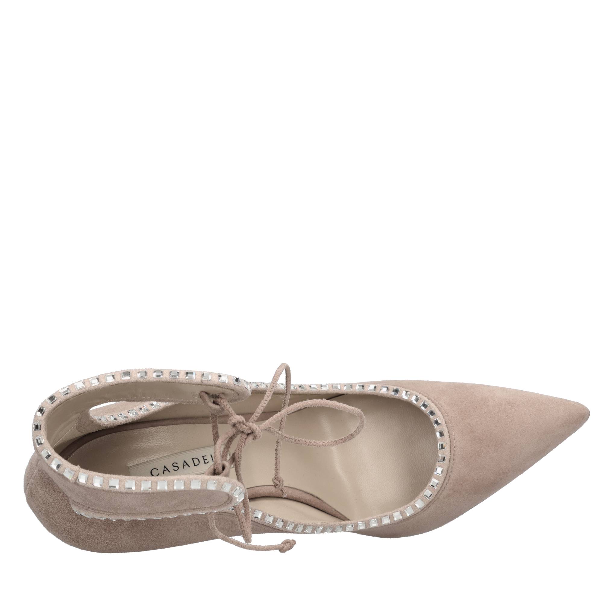 Décolleté in camoscio con profilo di strass. Tomaia interna in pelle. Suola in cuoio. Campionario,spedita su scatola neutra. Sconsigliamo l'applicazione della gomma protettiva alla suola. Tale operazione altera l'equilibrio della scarpa e può causare la rottura del tacco. L'eventuale riparazione del danno a causa di tale modifica, qualora richiesta, sarà a carico del cliente.