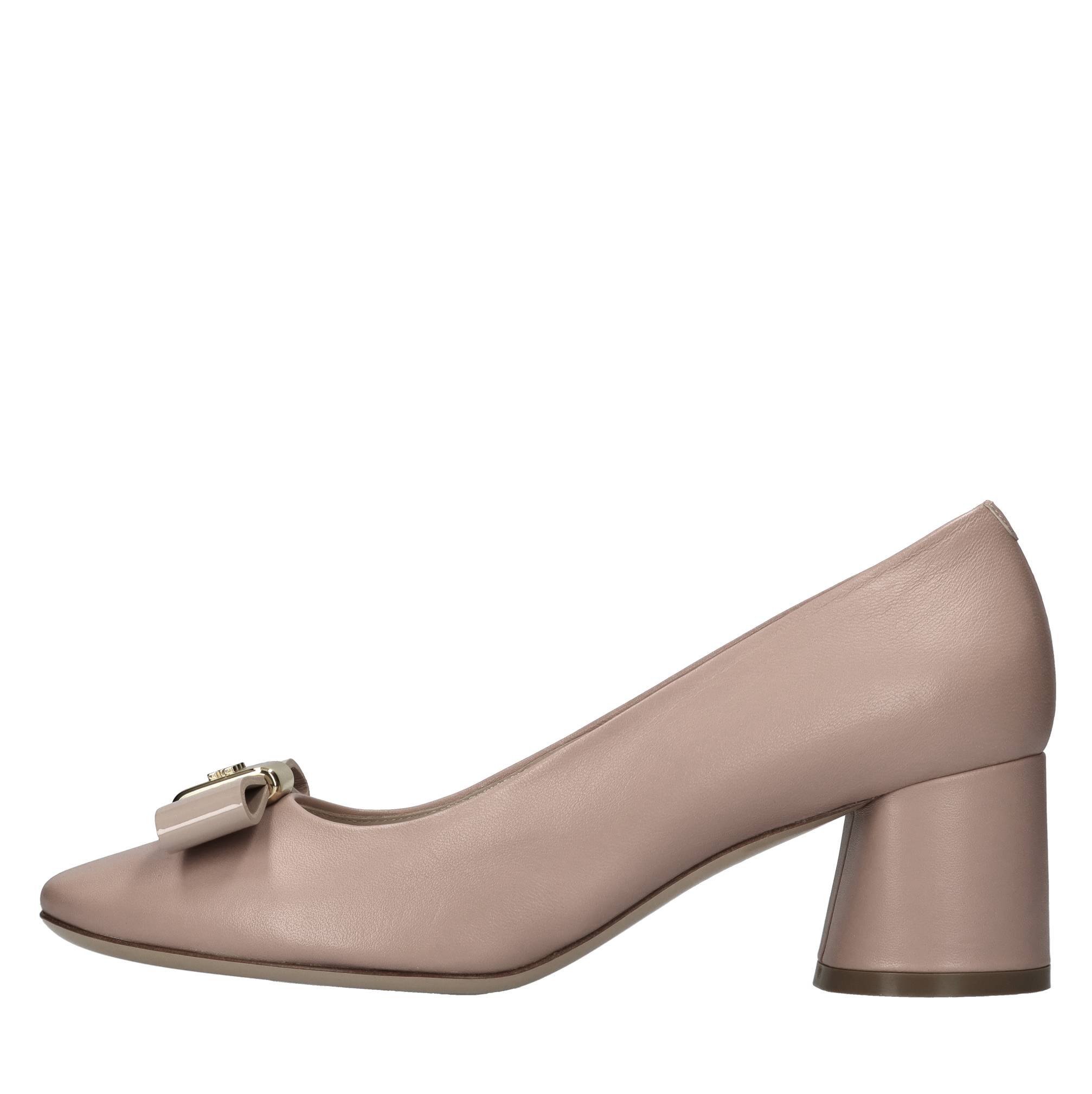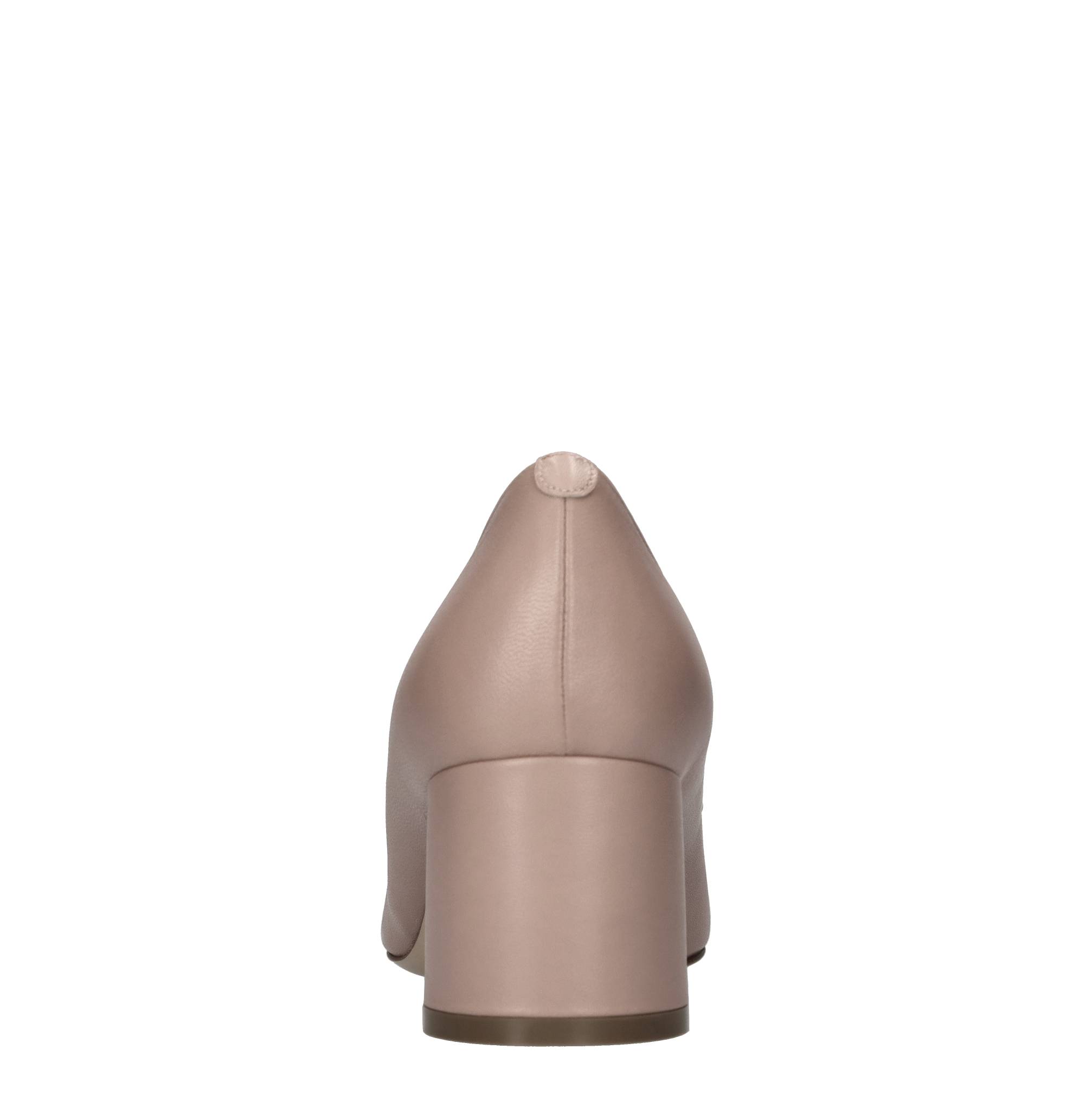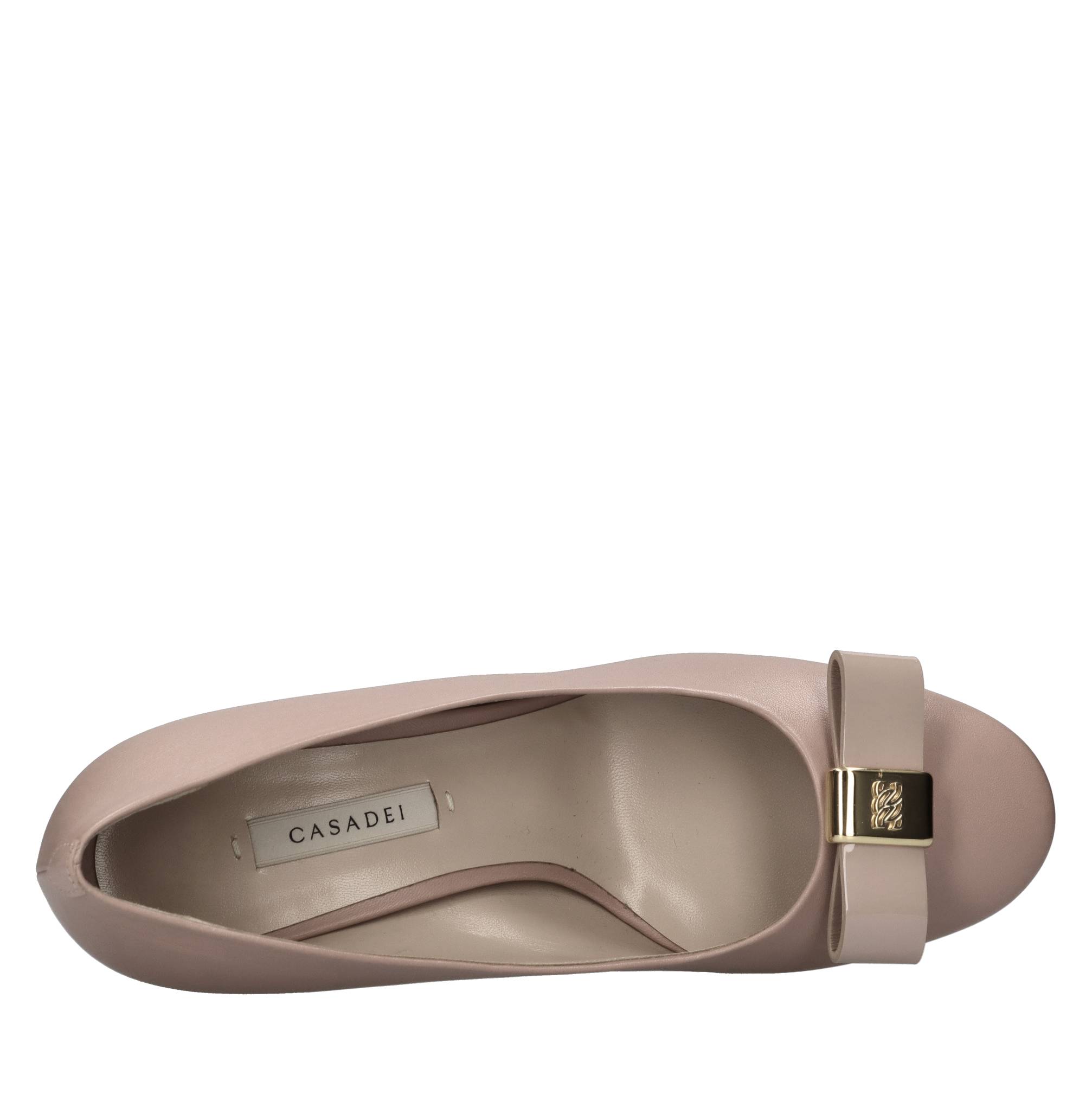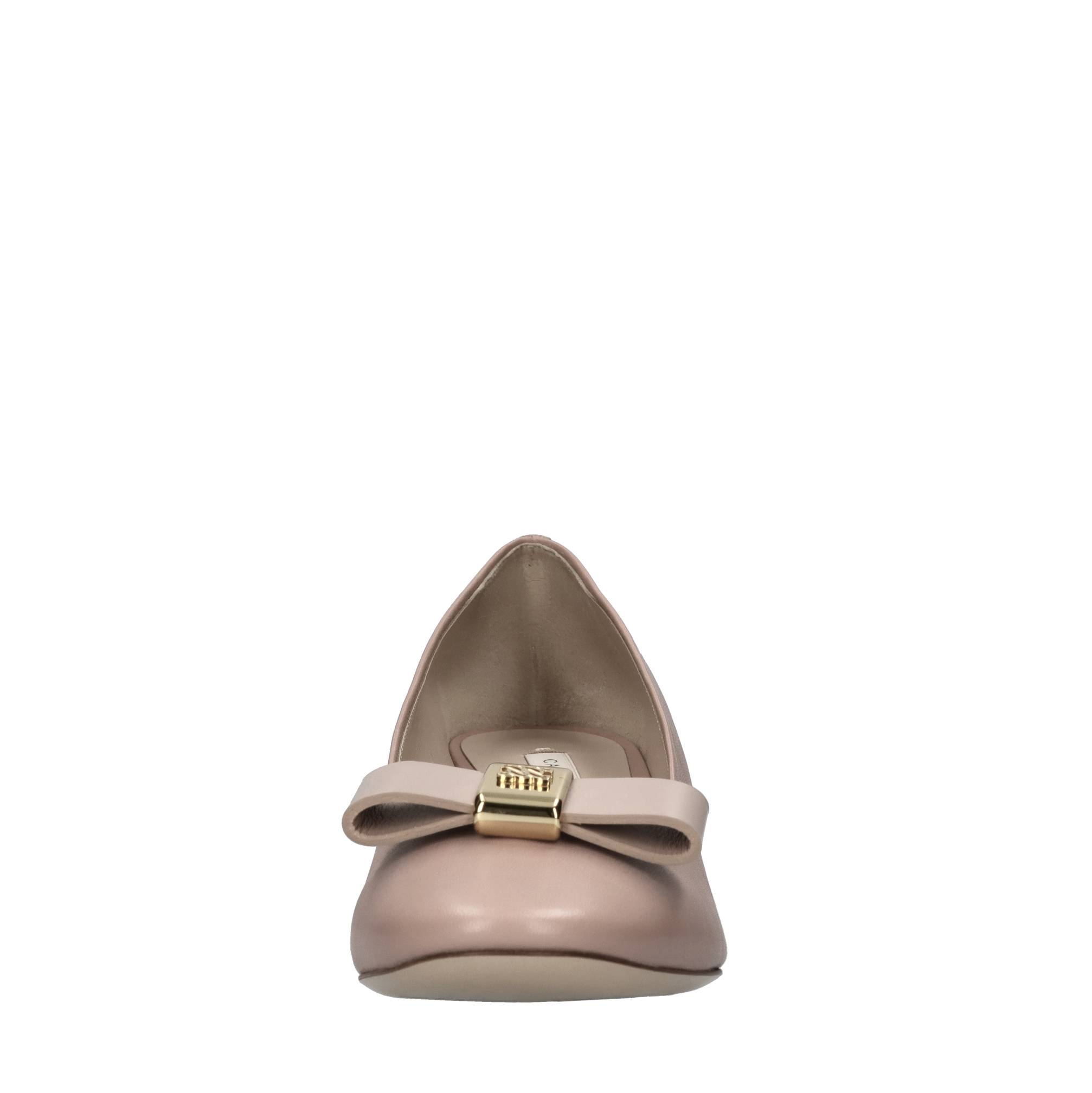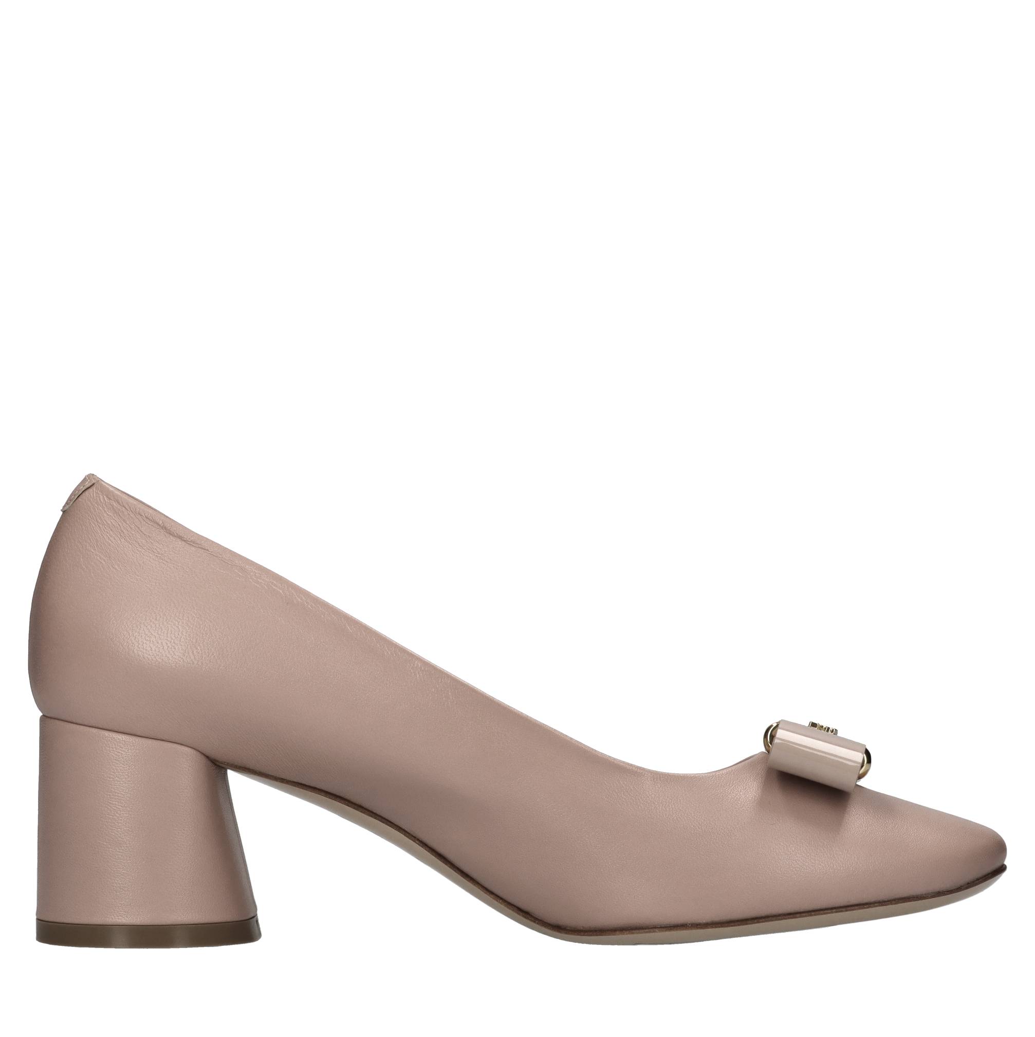 Décolleté in pelle con applicazione color oro. Tomaia interna in pelle. Suola in cuoio. Impercettibile segno sul pellame.