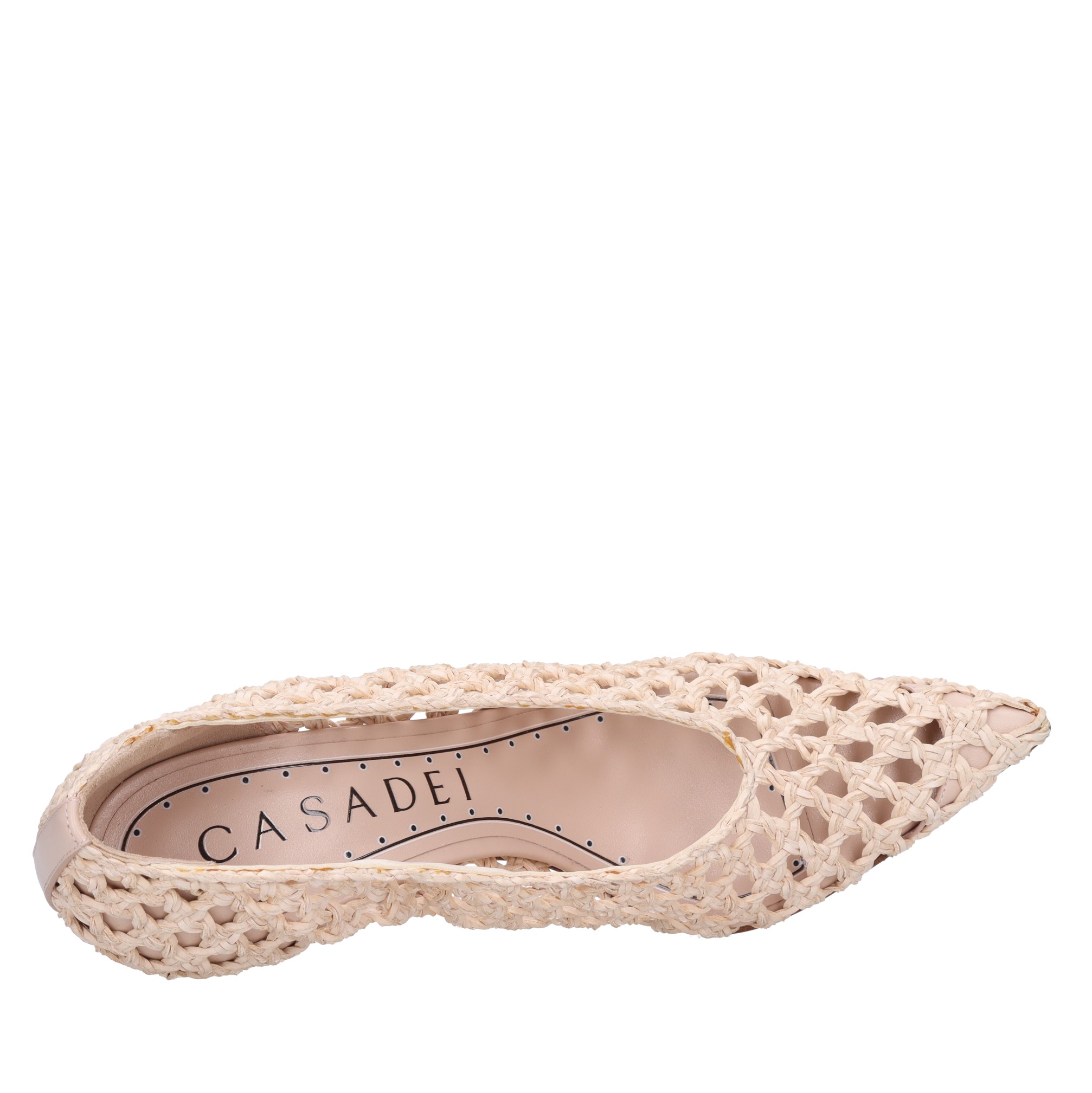 Decollete in pelle intrecciata.Tomaia interna in pelle.Suola esterna in cuoio.Spedita su scatola neutra.Campionario.Seconda scelta,metà prezzo.Impercettibili segni di mastice. Sconsigliamo l'applicazione della gomma protettiva alla suola. Tale operazione altera l'equilibrio della scarpa e può causare la rottura del tacco. L'eventuale riparazione del danno a causa di tale modifica, qualora richiesta, sarà a carico del cliente.