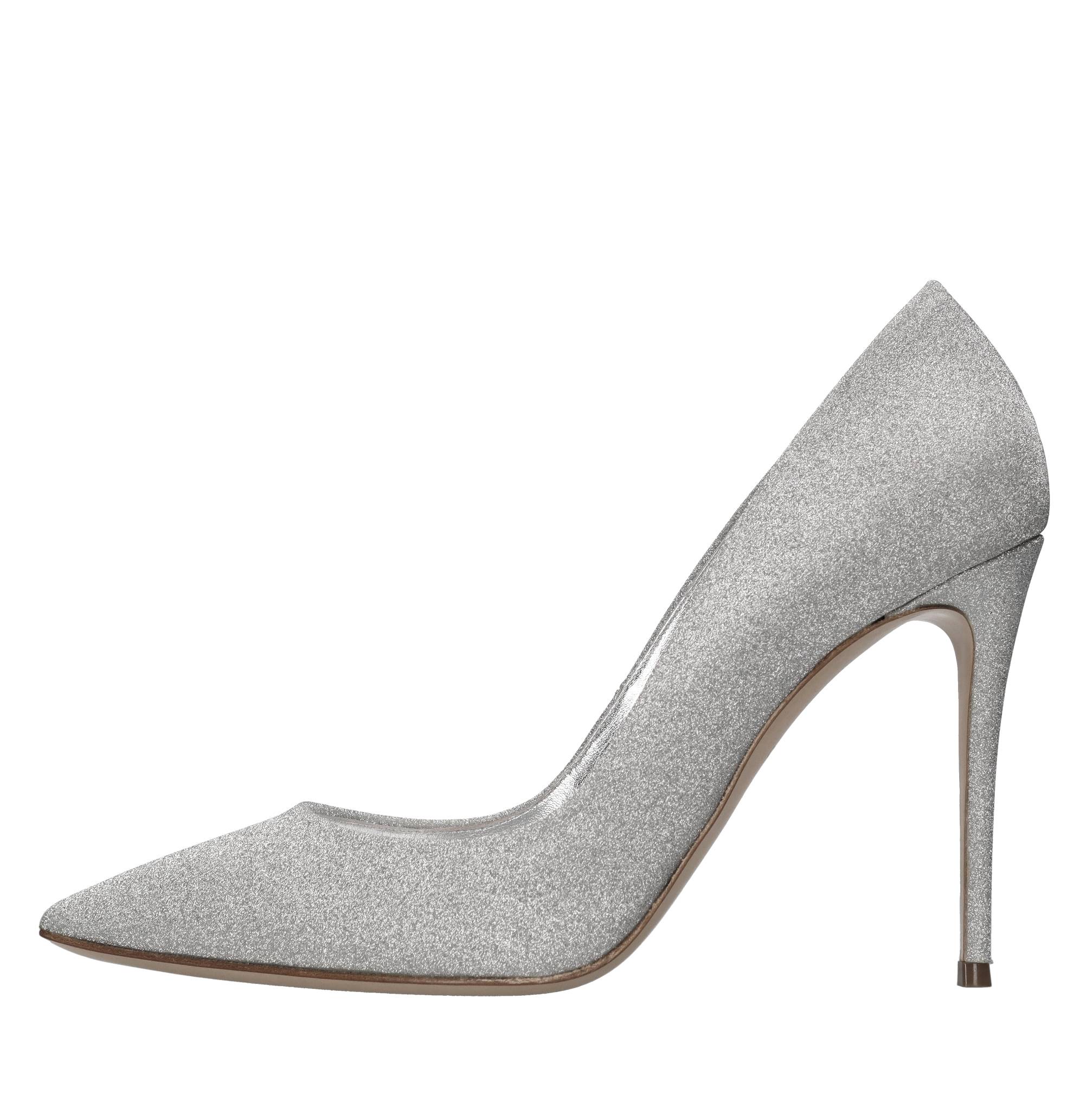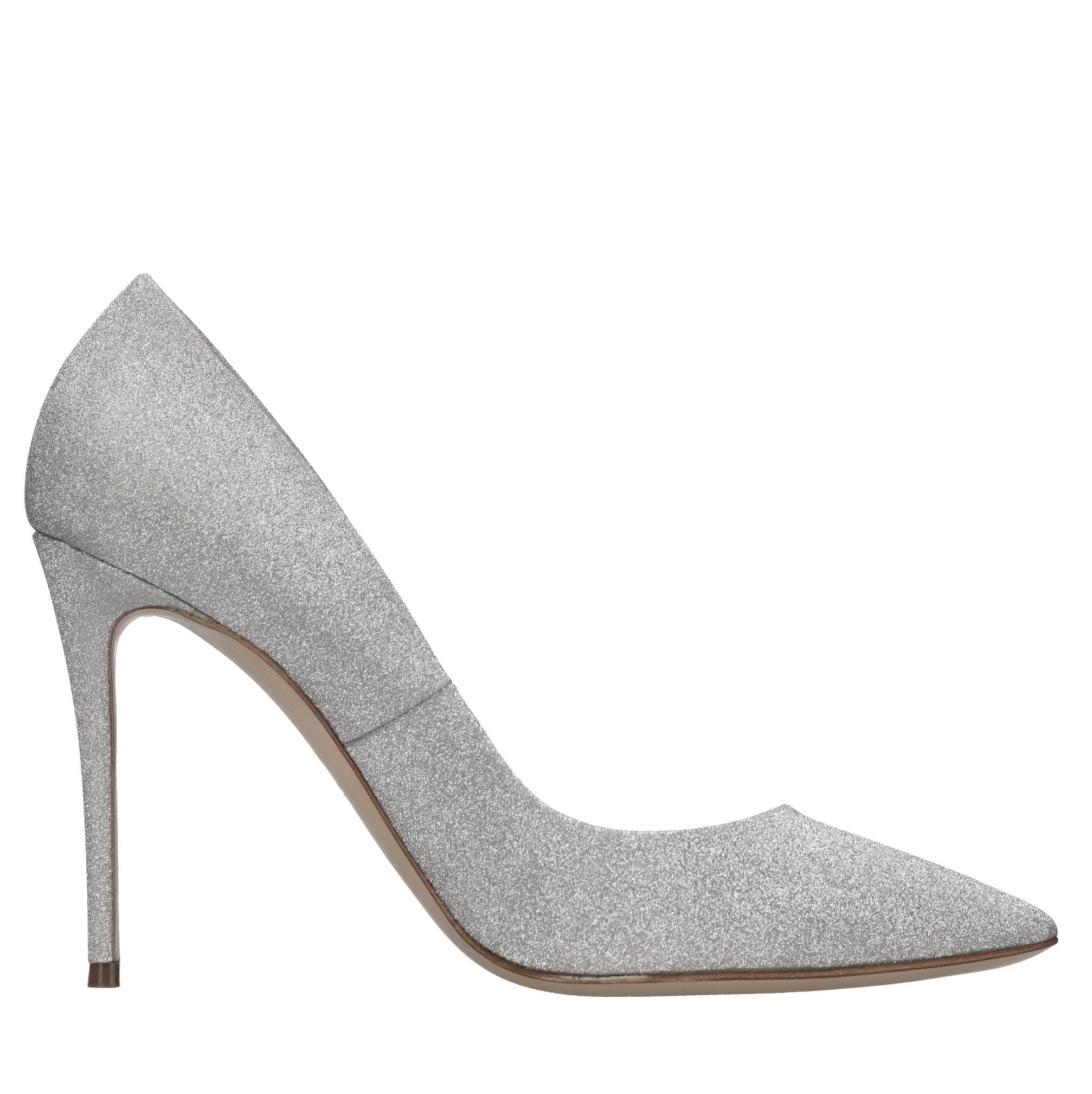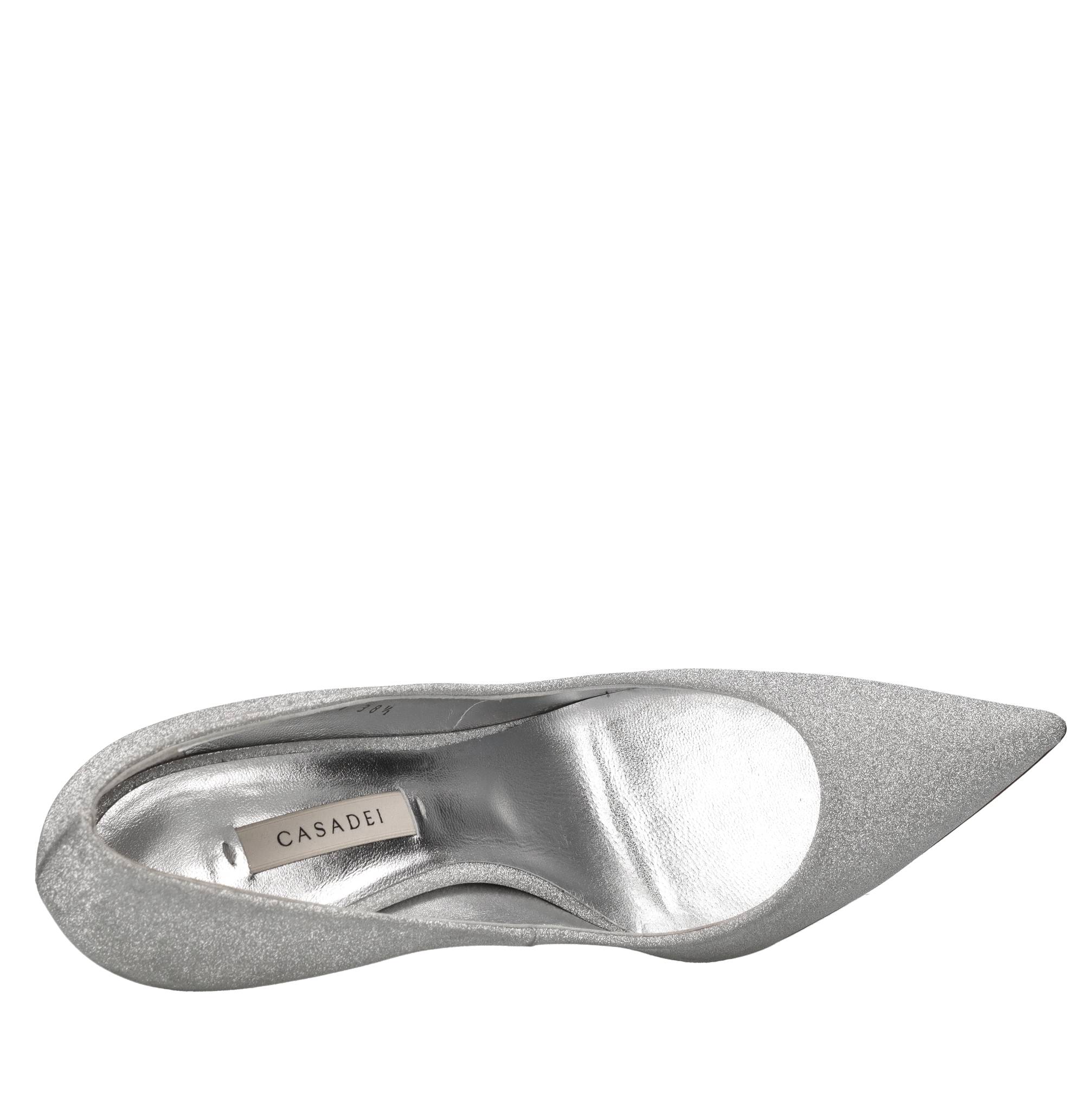 Décolleté in tessuto microglitter. Tomaia interna in pelle. Suola esterna in cuoio. Spedita su scatola neutra. Piccole imperfezioni. Sconsigliamo l'applicazione della gomma protettiva alla suola. Tale operazione altera l'equilibrio della scarpa e può causare la rottura del tacco. L'eventuale riparazione del danno a causa di tale modifica sarà a carico del cliente.