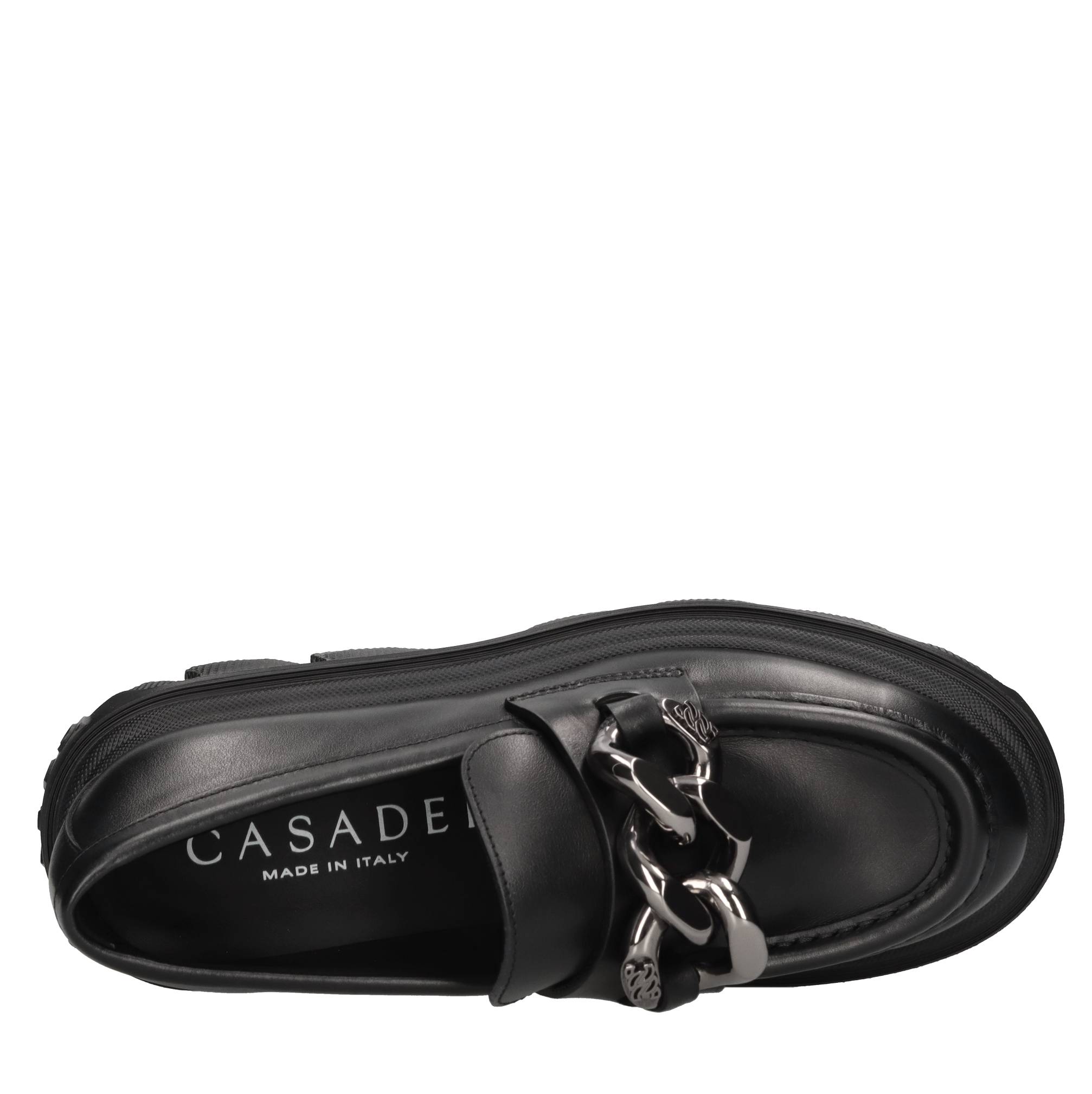 Mocassini in pelle. Dettaglio chain color antracite. Tomaia interna in pelle. Suola esterna in gomma.