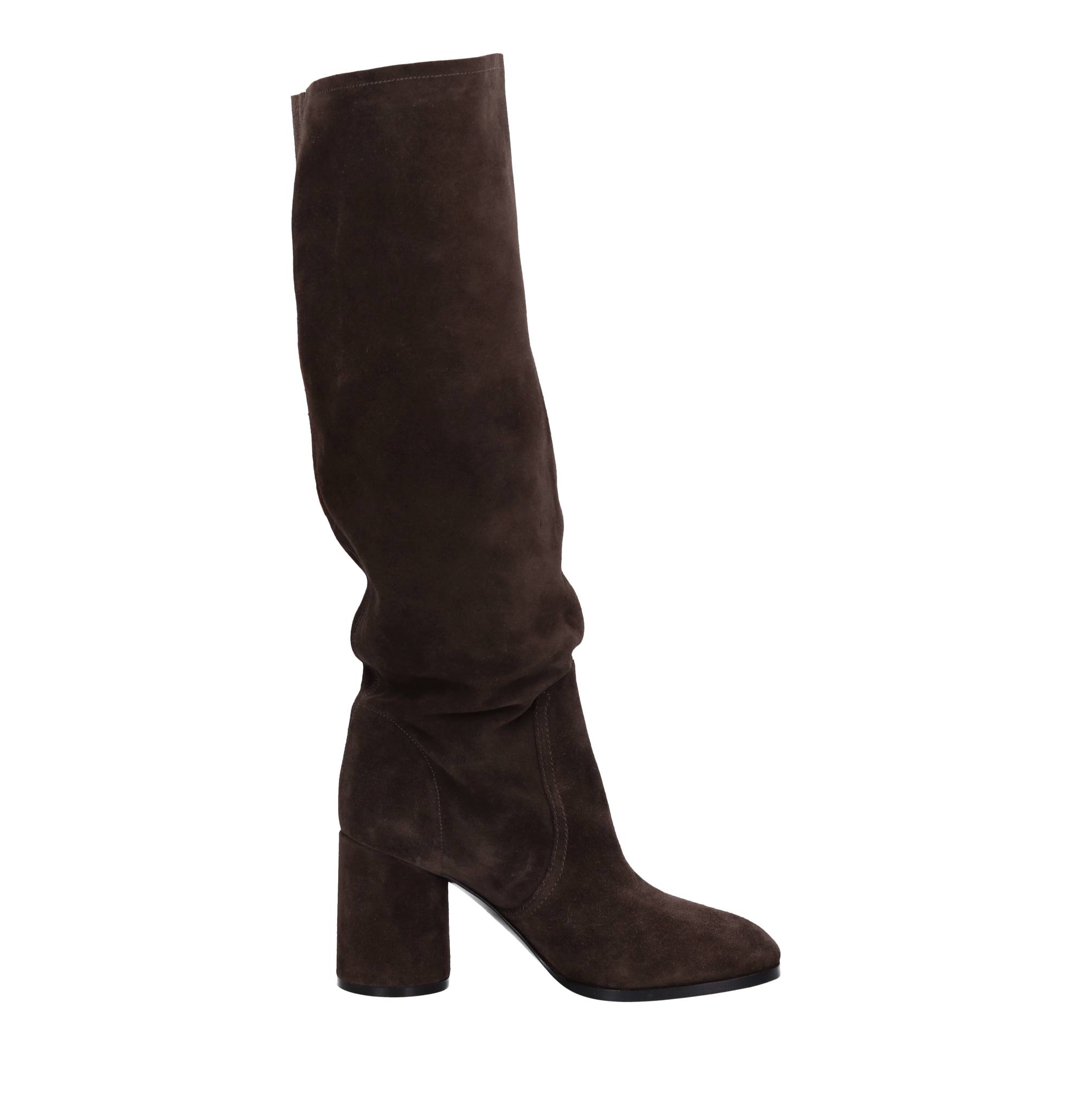 Stivali in camoscio. Tomaia interna in pelle. Suola esterna in cuoio. Fibbia laterale bronzo. Spedito su scatola neutra.