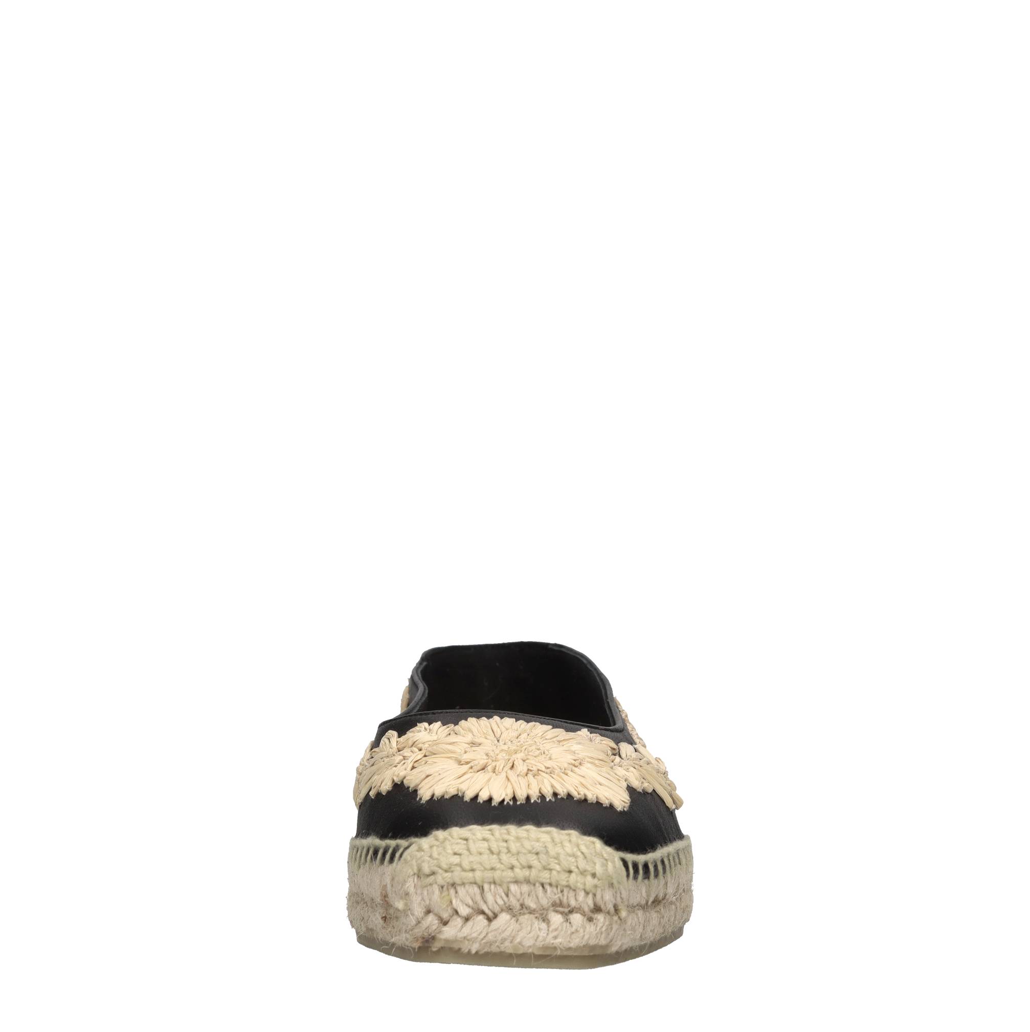 Espadrillas Paris in pelle. Applicazioni fiori in rafia. Tomaia interna in tessuto: corda. Suola esterna in gomma.