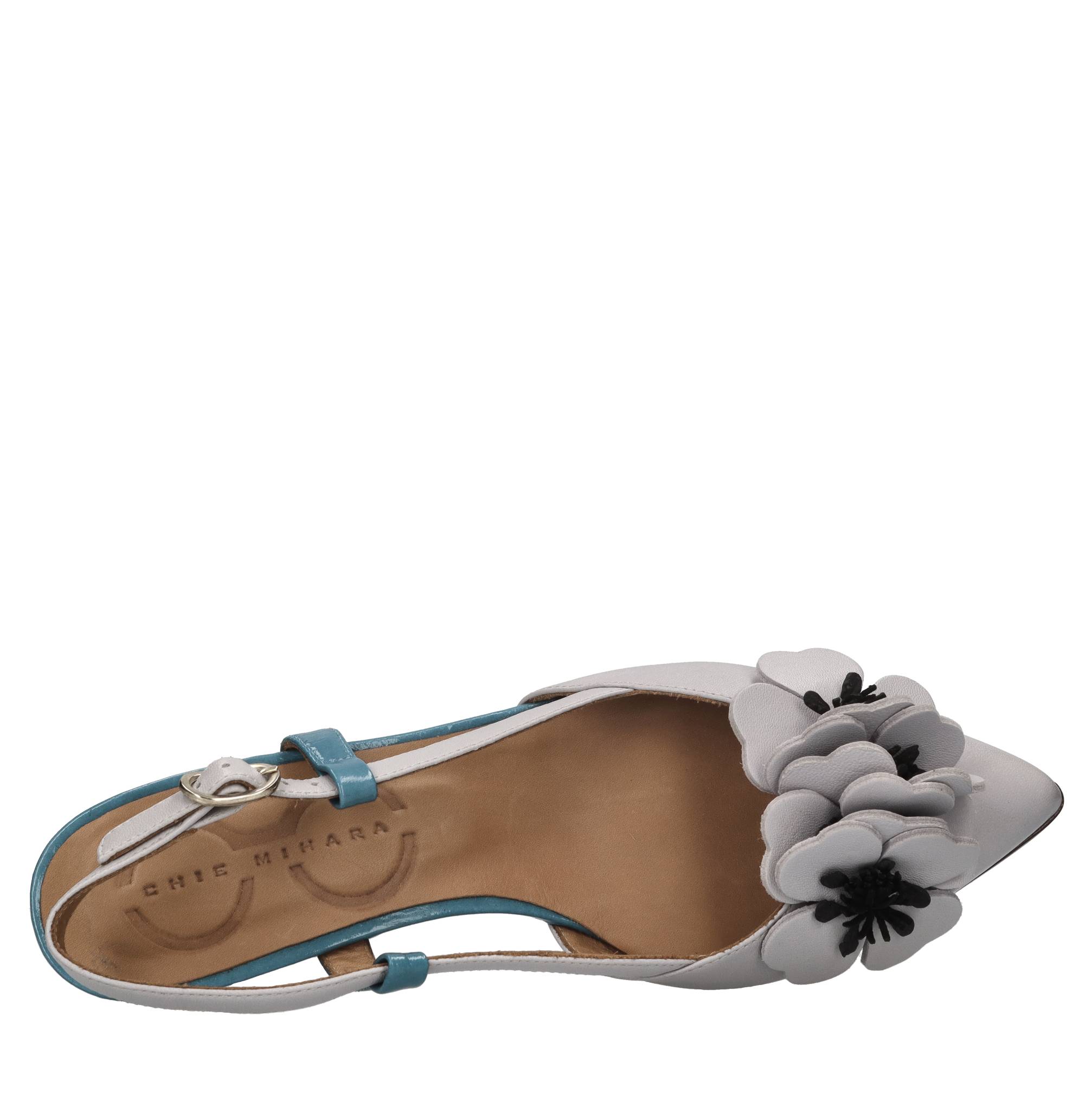 Décolleté slingback Hazel in pelle. Tomaia interna in pelle. Suola esterna in cuoio con inserto centrale in gomma. Applicazione fiori in pelle.