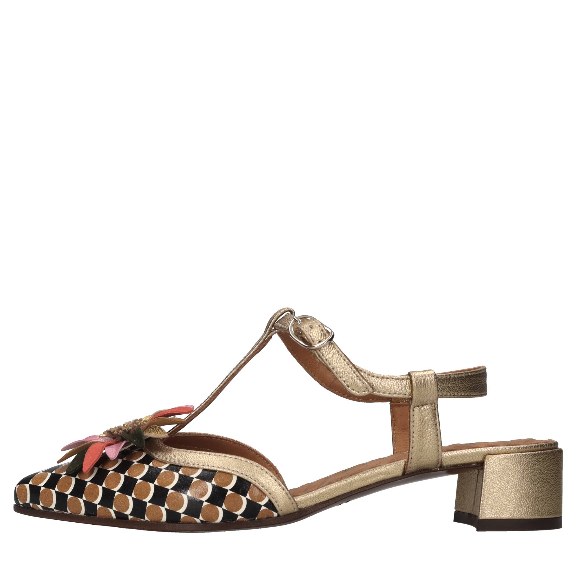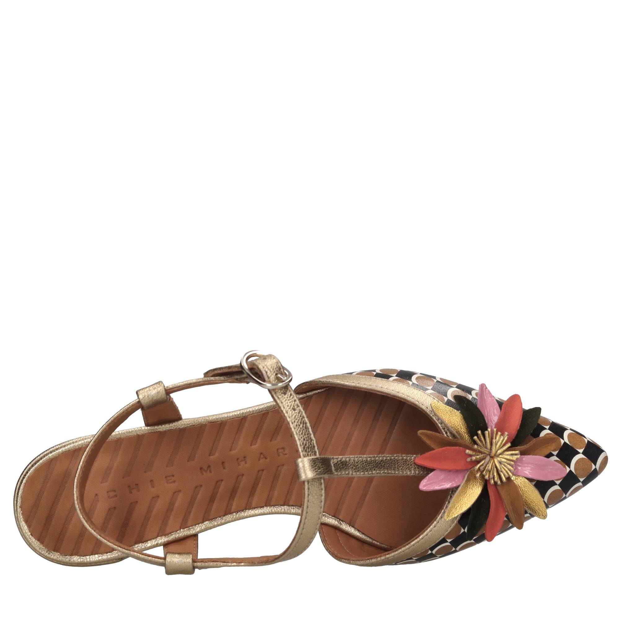 Décolleté slingback Heleni in pelle. Applicazione fiore in pelle multicolor. Tomaia interna in pelle. Suola esterna in cuoio con inserto in gomma.
