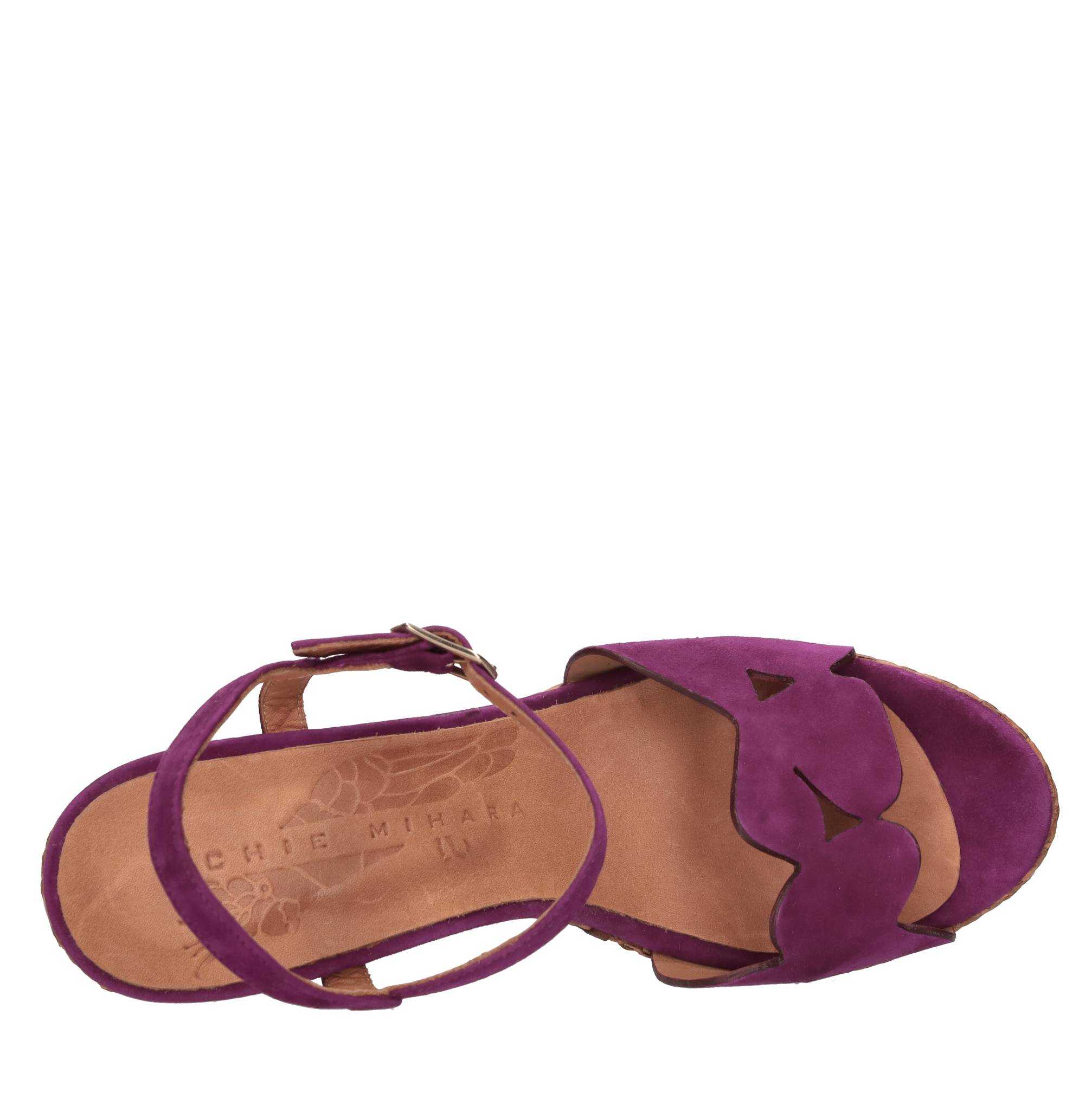 Sandali in camoscio e rafia.Tomaia interna in pelle.Suola esterna in gomma.Plateau 4 cm.