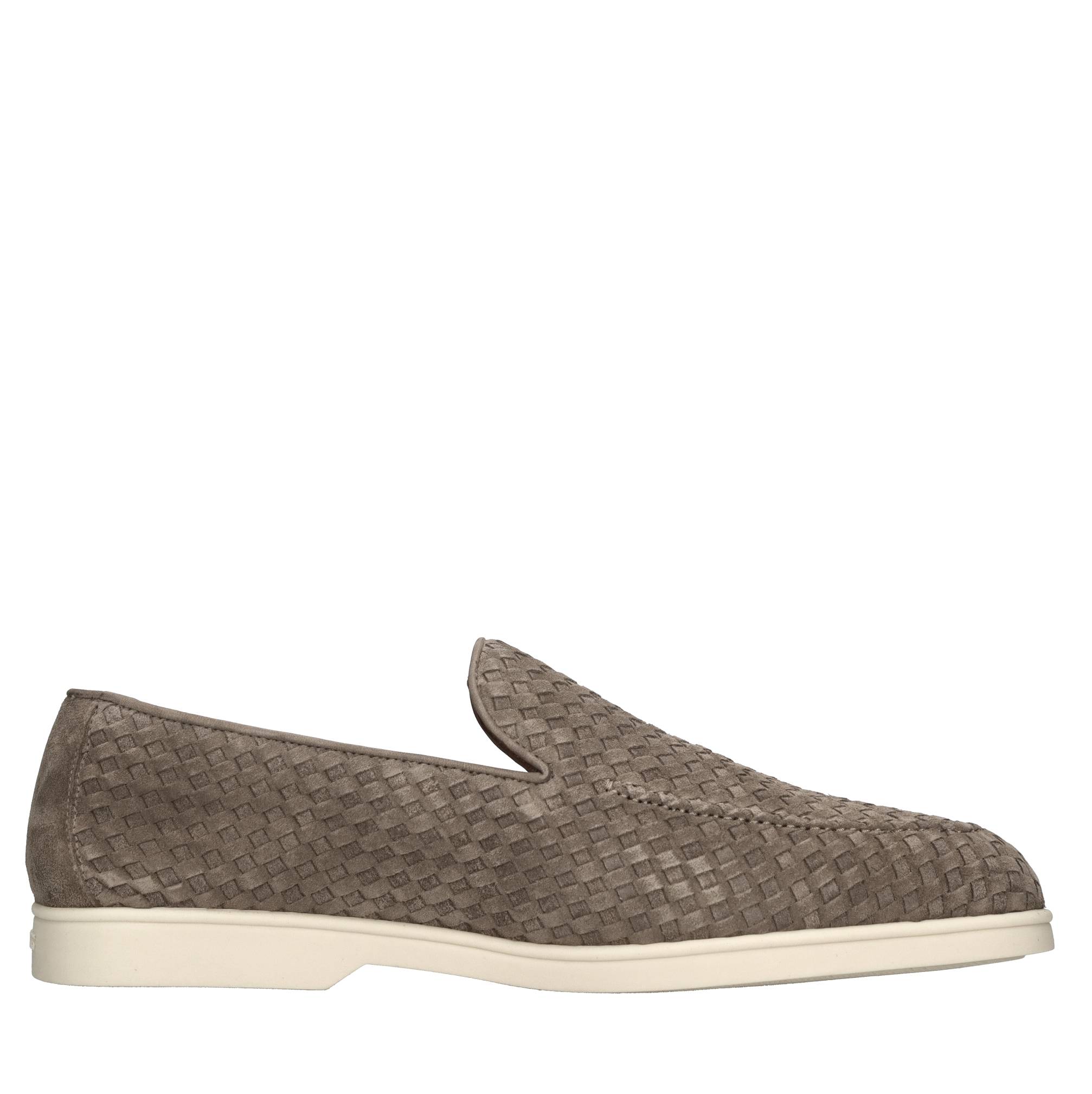 Mocassini in camoscio intrecciato. Tomaia interna in pelle. Suola esterna in gomma.