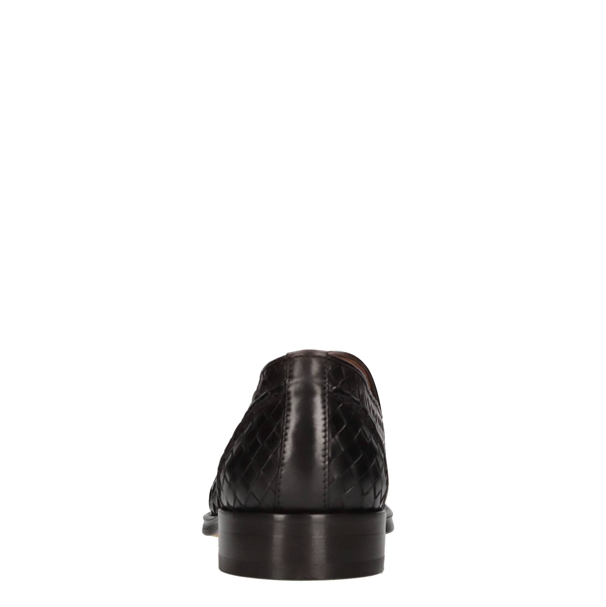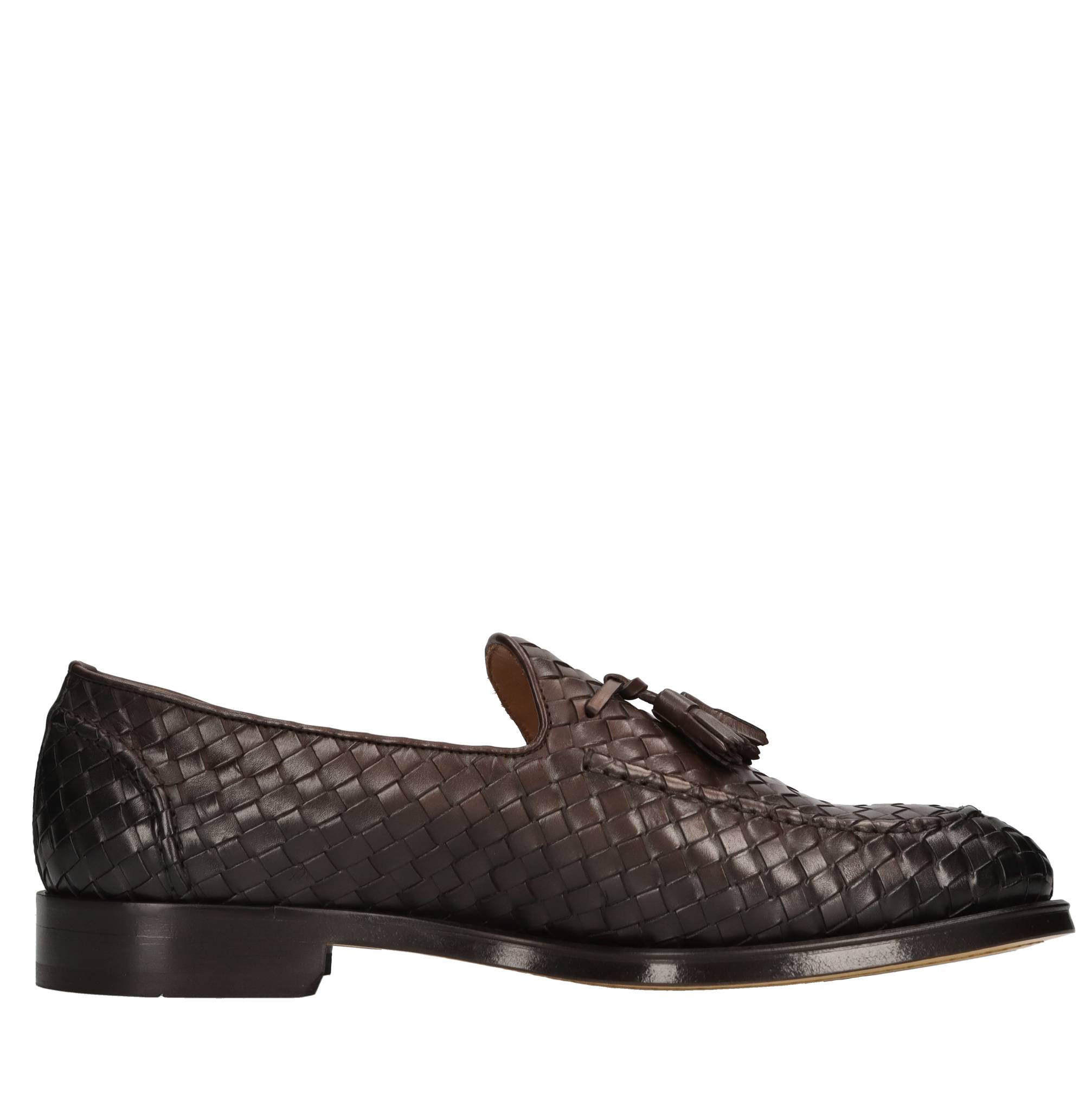 Mocassini in pelle intrecciata. Suola esterna in cuoio e gomma logata. Tomaia interna in pelle logata.