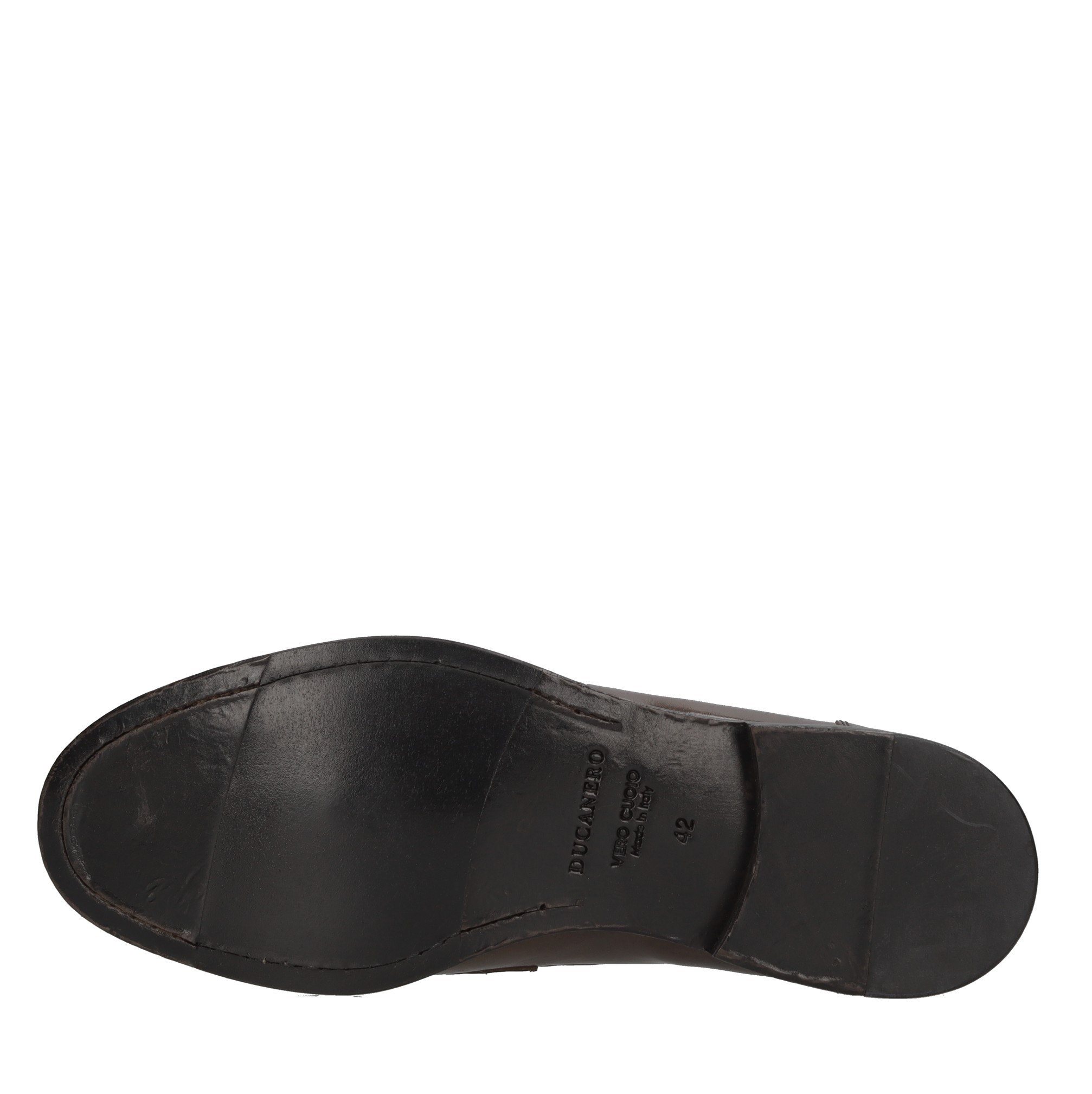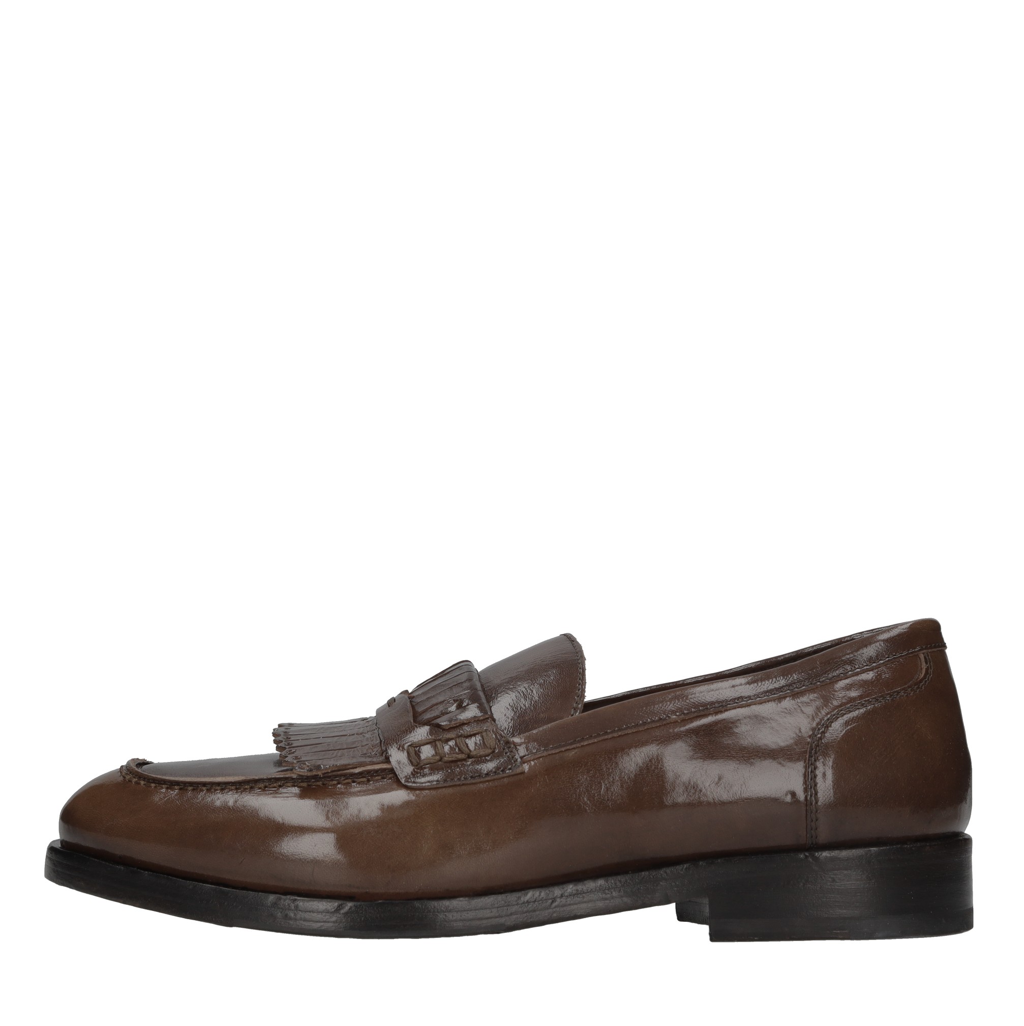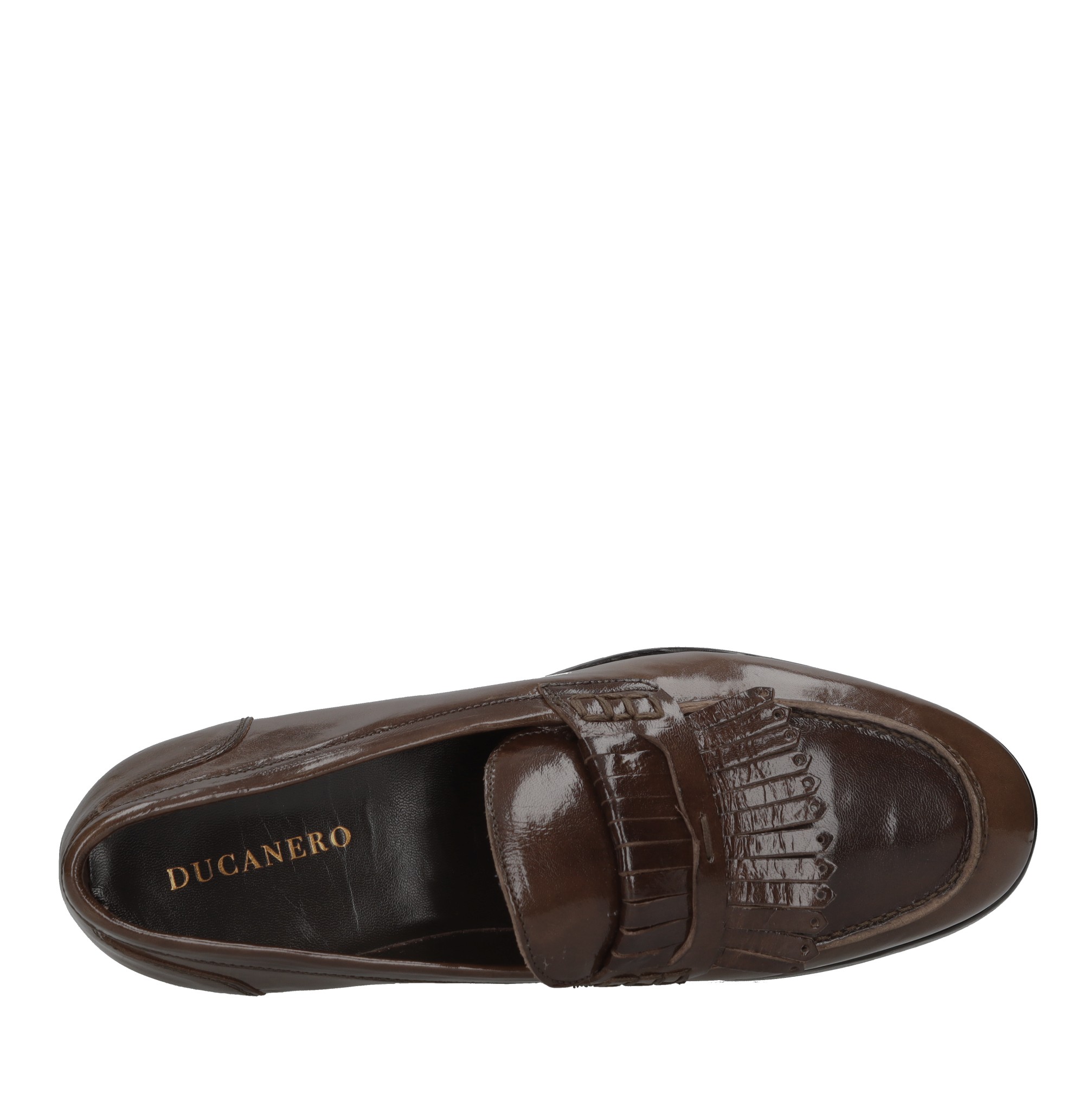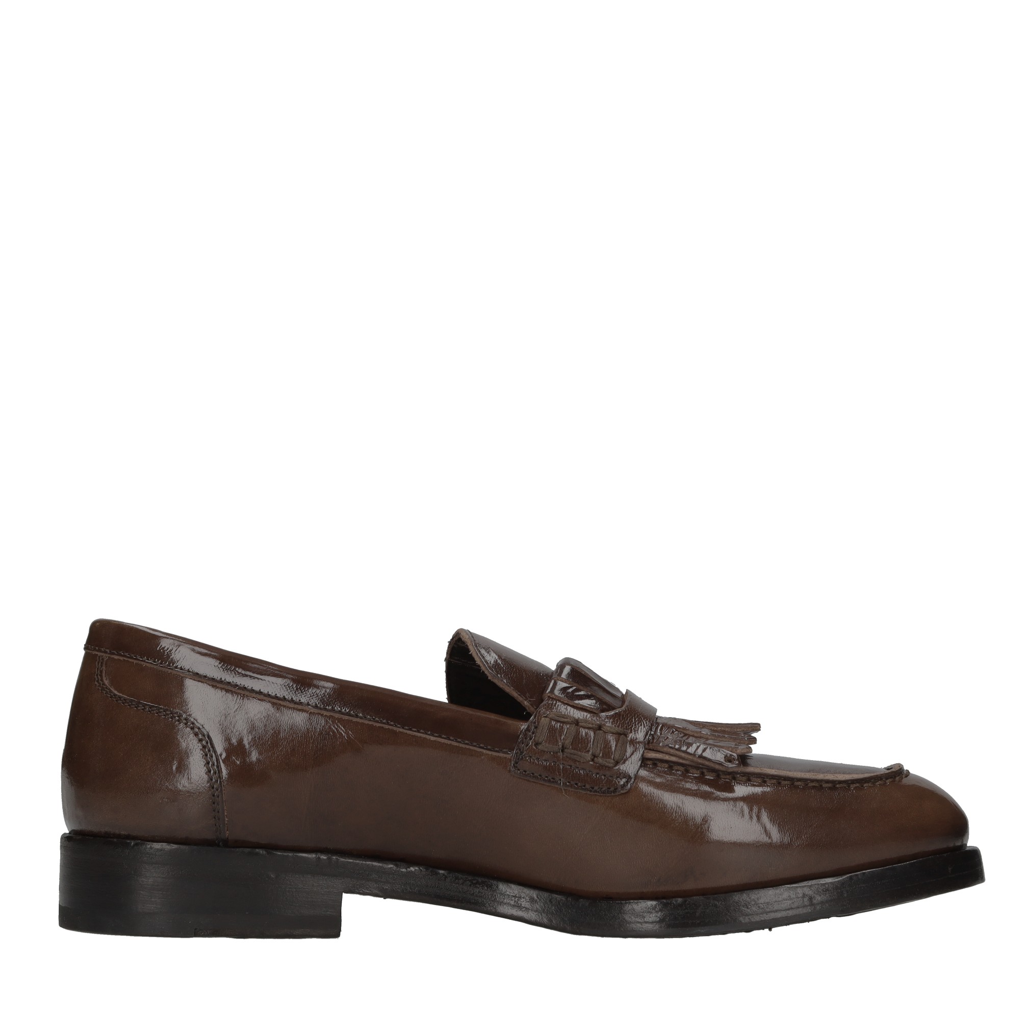 Mocassini in vernice. Tomaia interna in pelle. Suola esterna in cuoio e gomma.