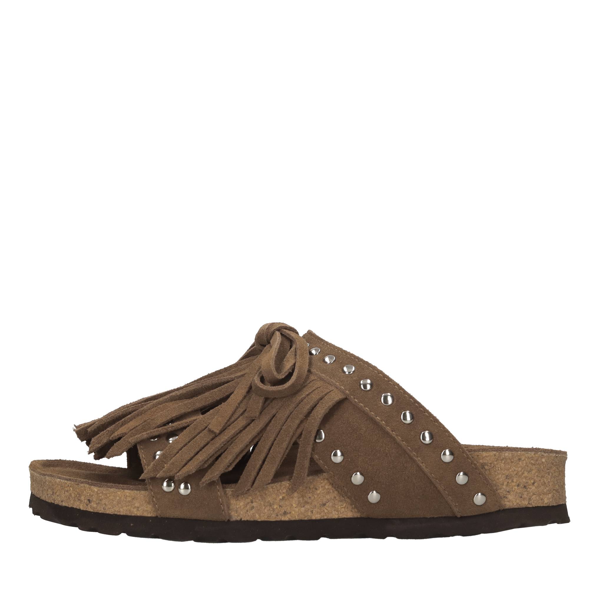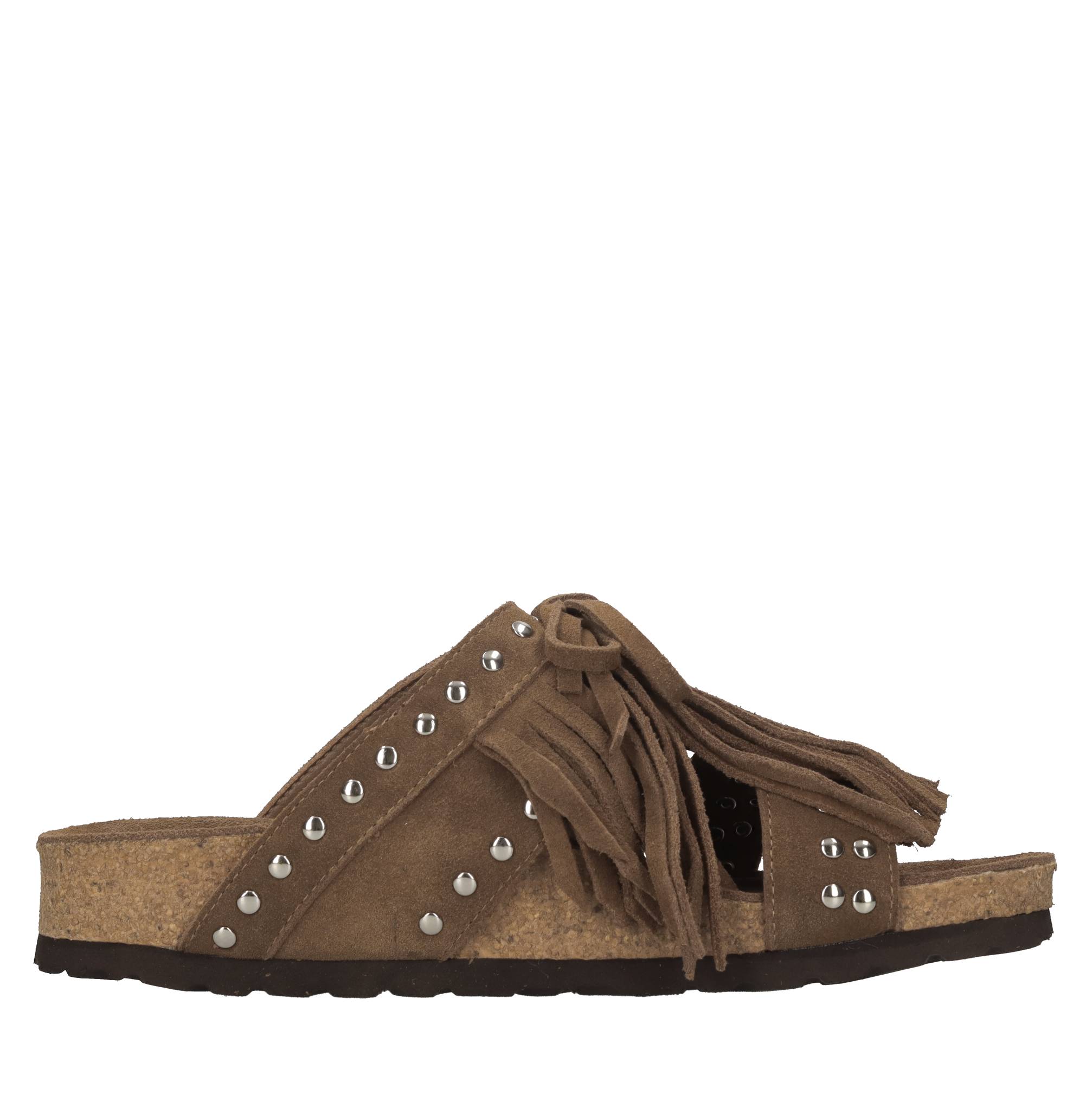 Mules in camoscio. Tomaia interna in pelle e camoscio. Suola esterna in gomma.