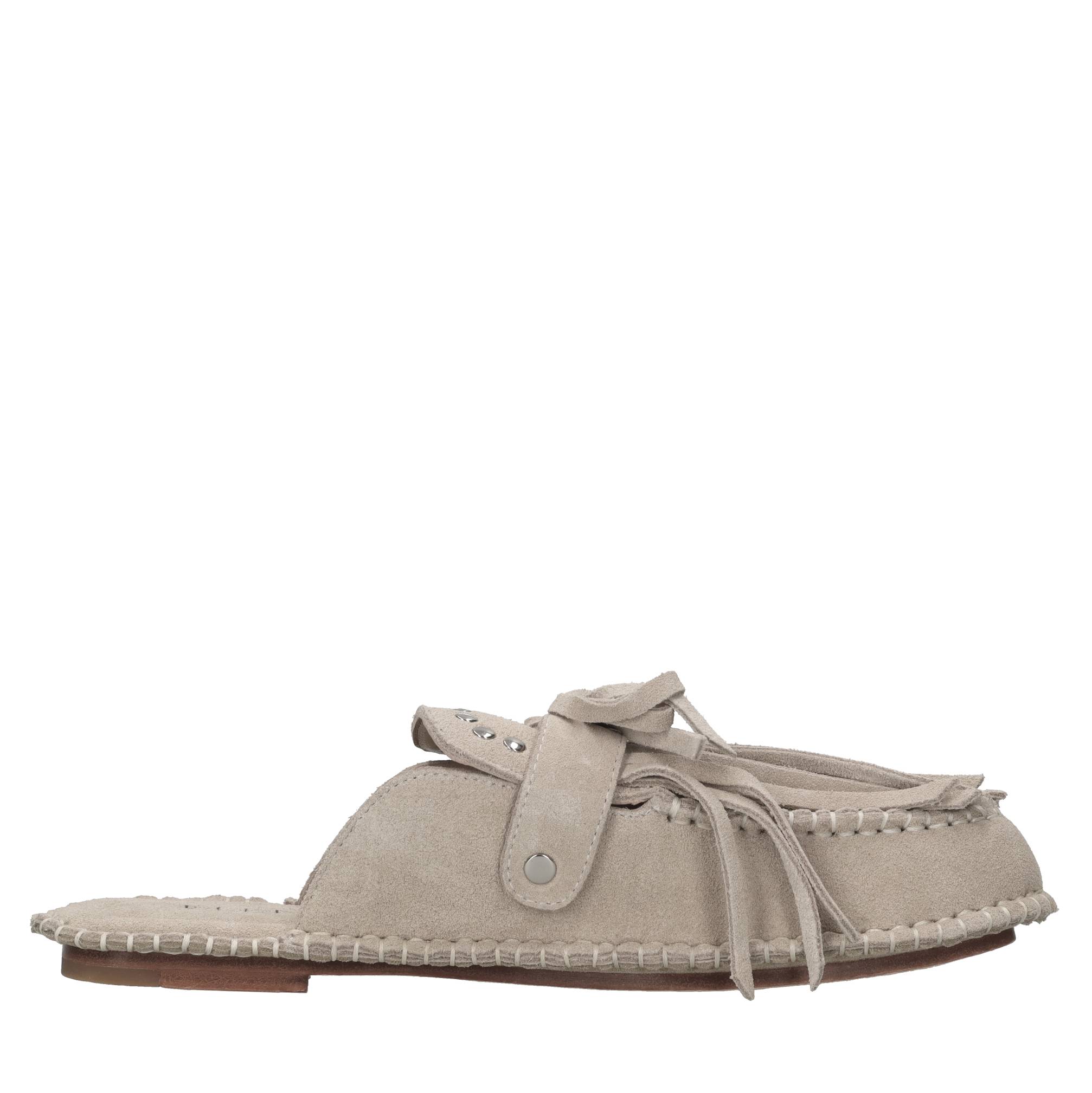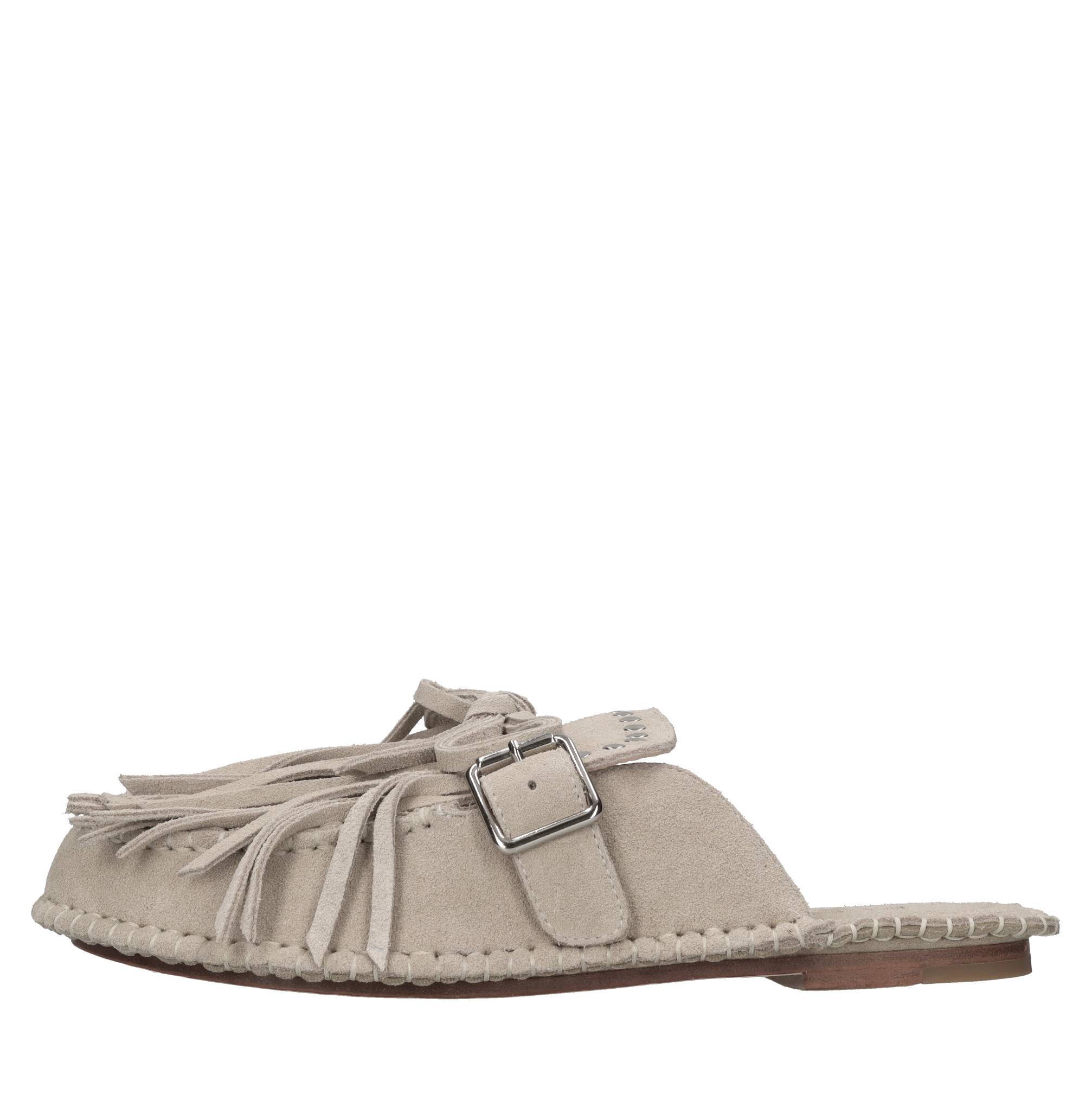 Sabot in camoscio. Tomaia interna in pelle e camoscio. Suola esterna in cuoio.