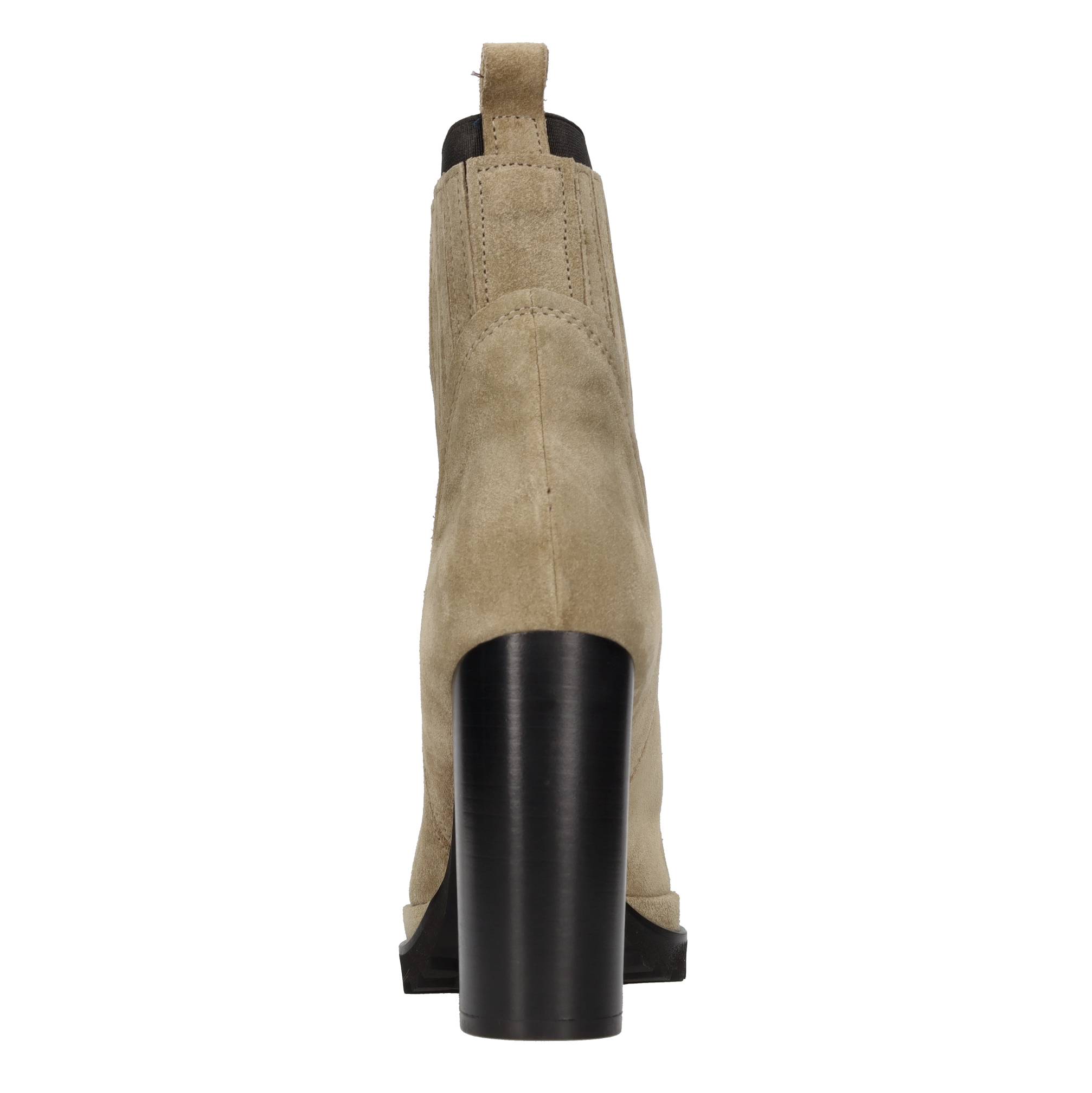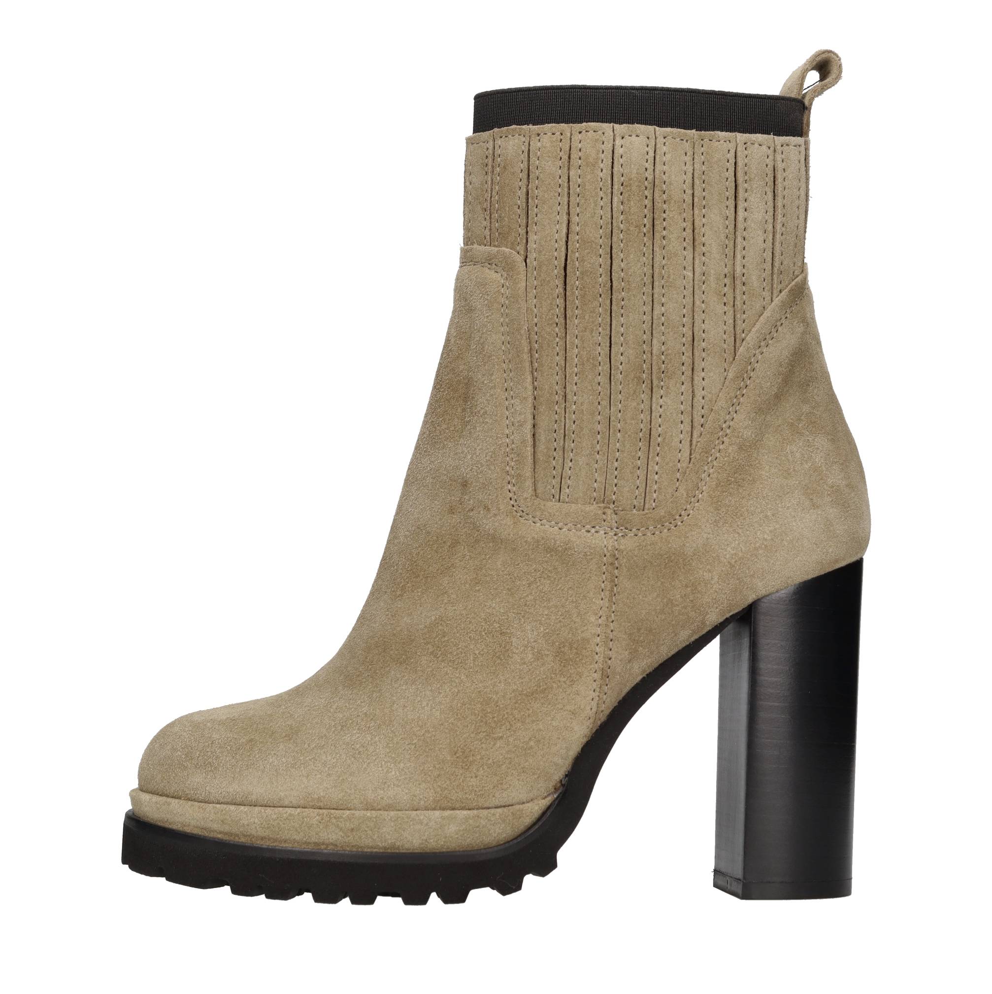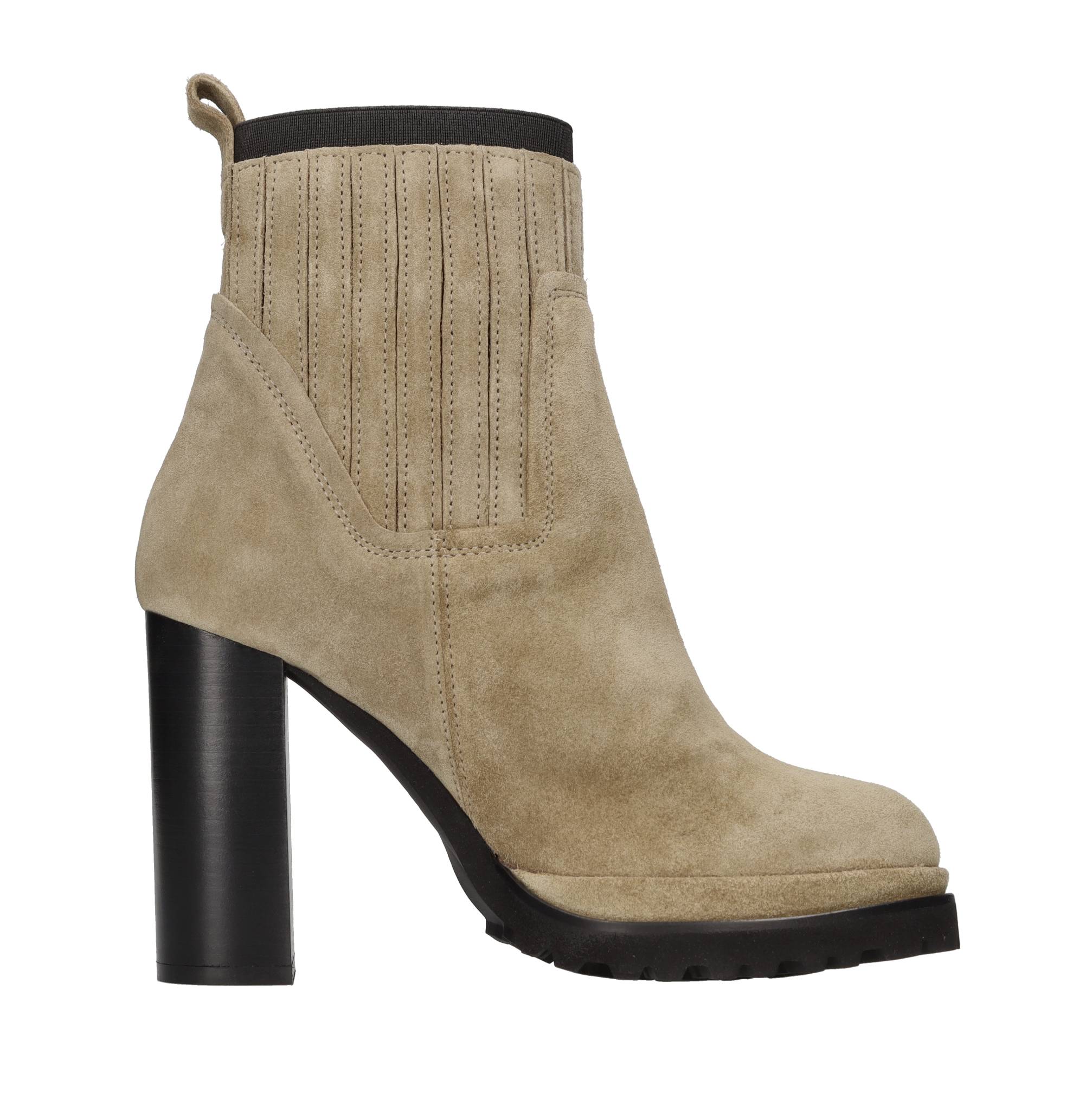 Tronchetti in camoscio. Plateau 2.5cm. Suola esterna in gomma. Tomaia interna in pelle e tessuto.
