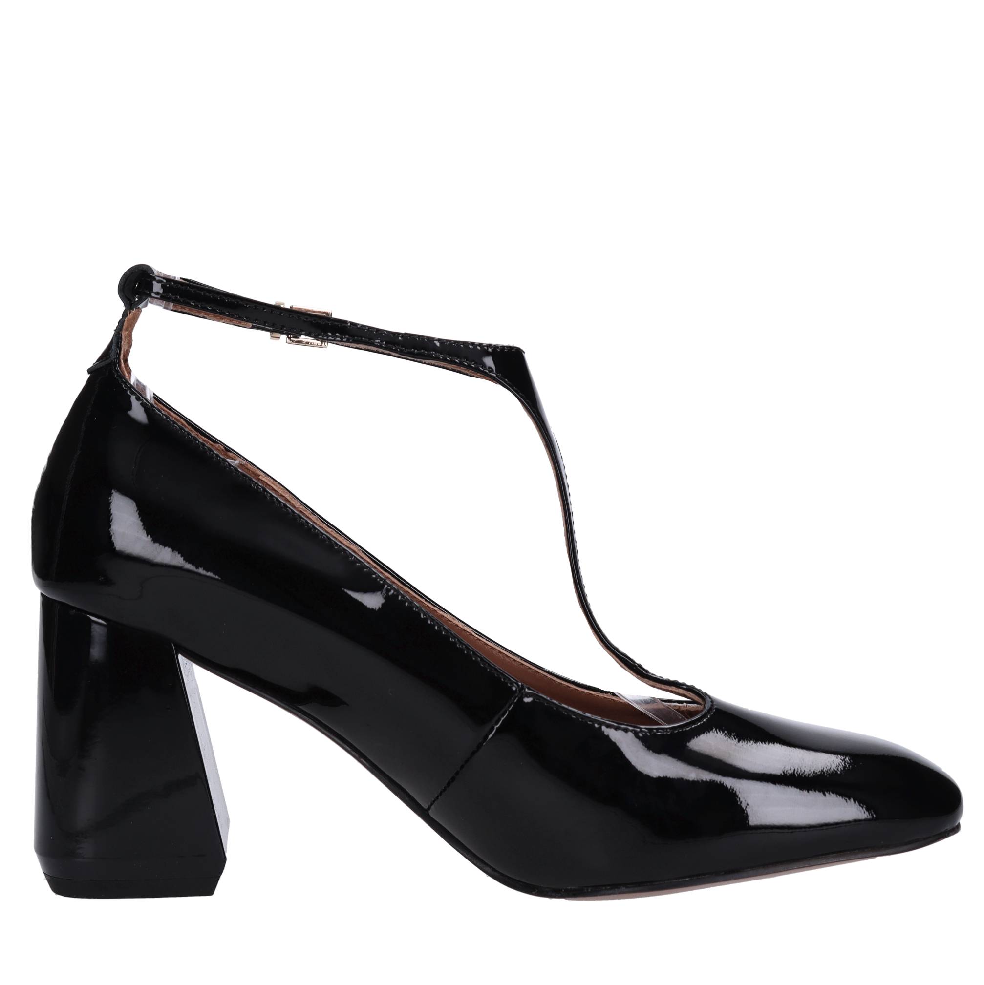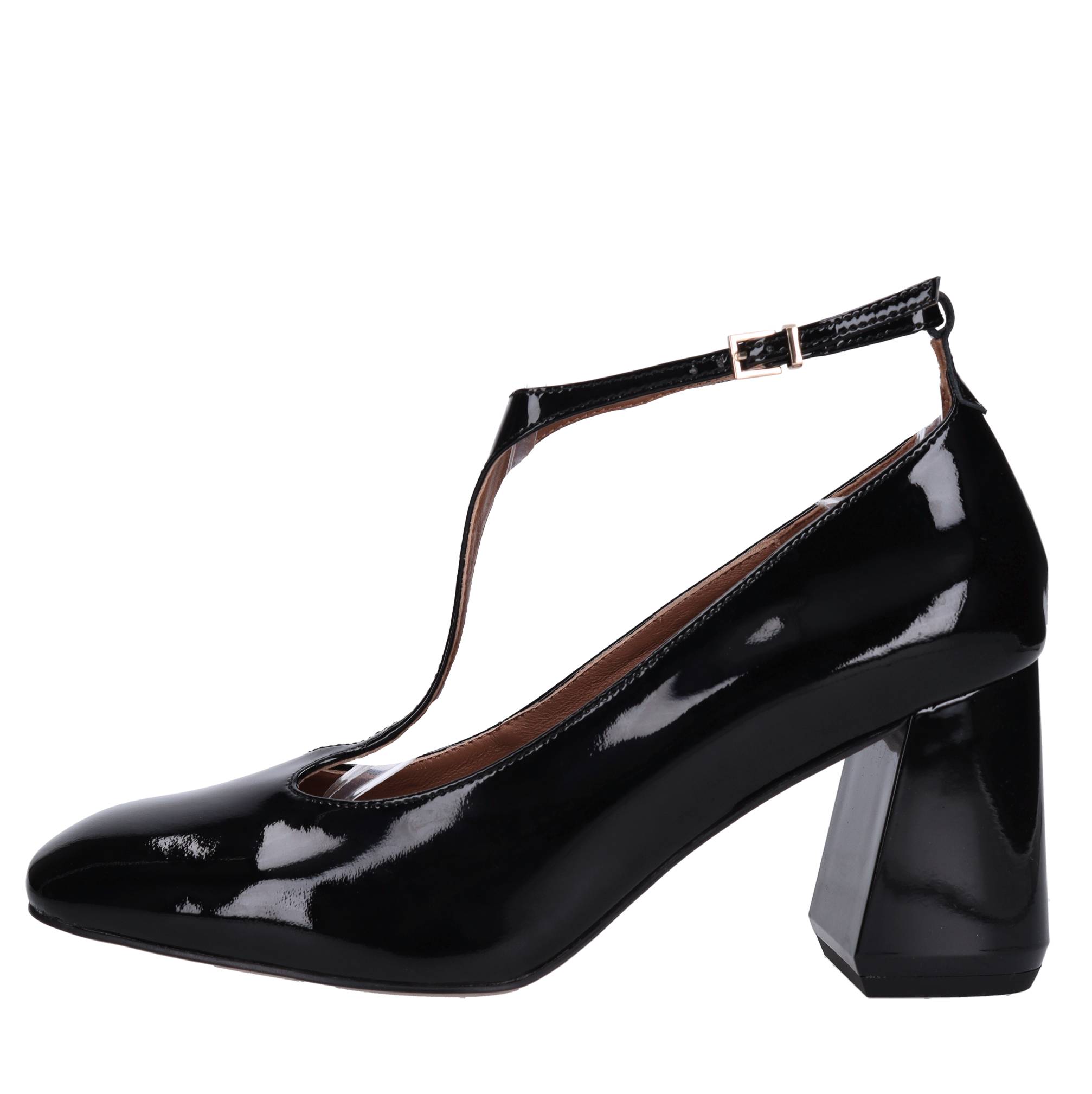 Décolleté in vernice. Tomaia interna in pelle. Suola esterna in ecopelle e gomma.