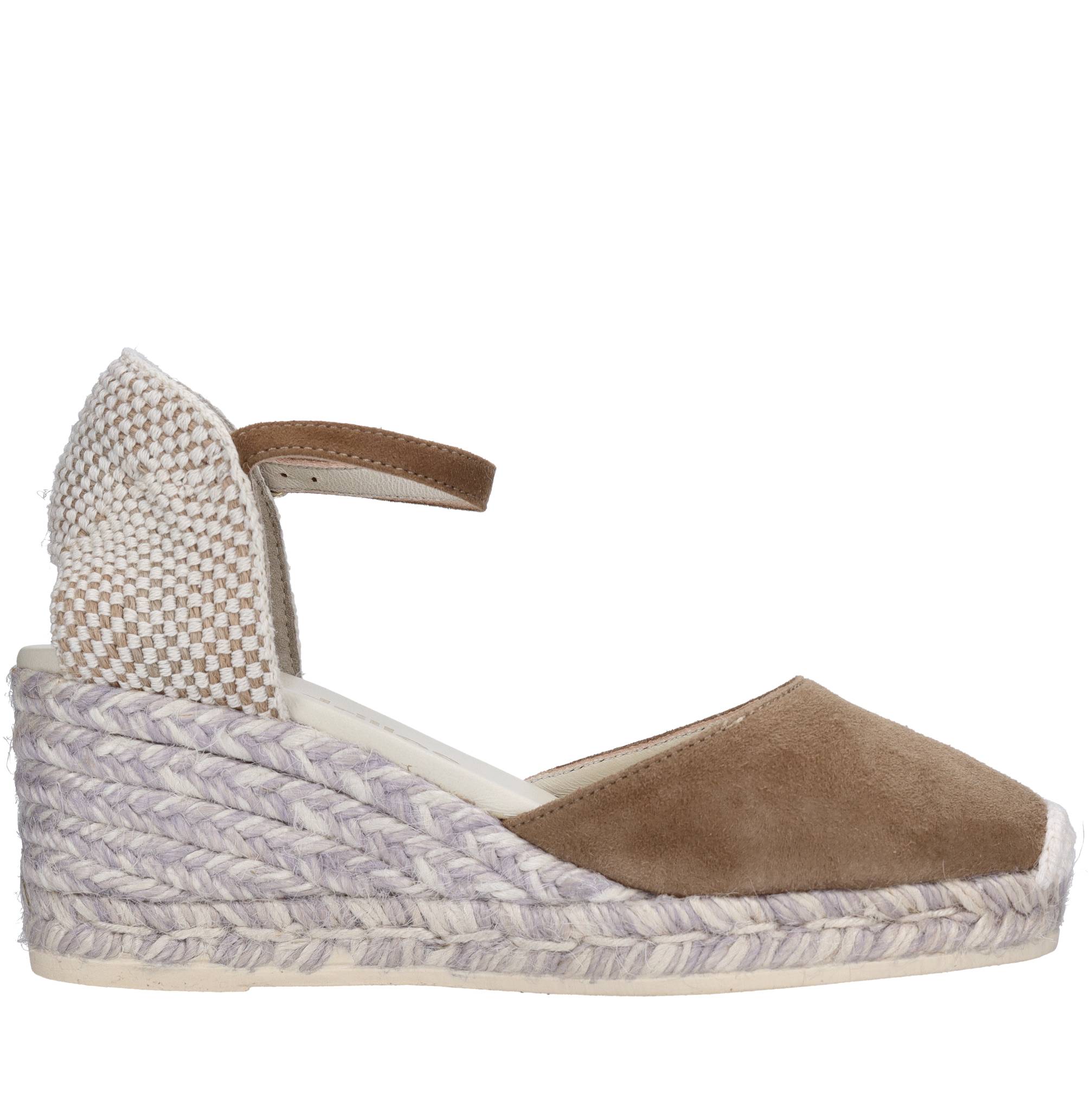 Zeppe in camoscio. Suola esterna in gomma. Tomaia interna in pelle.