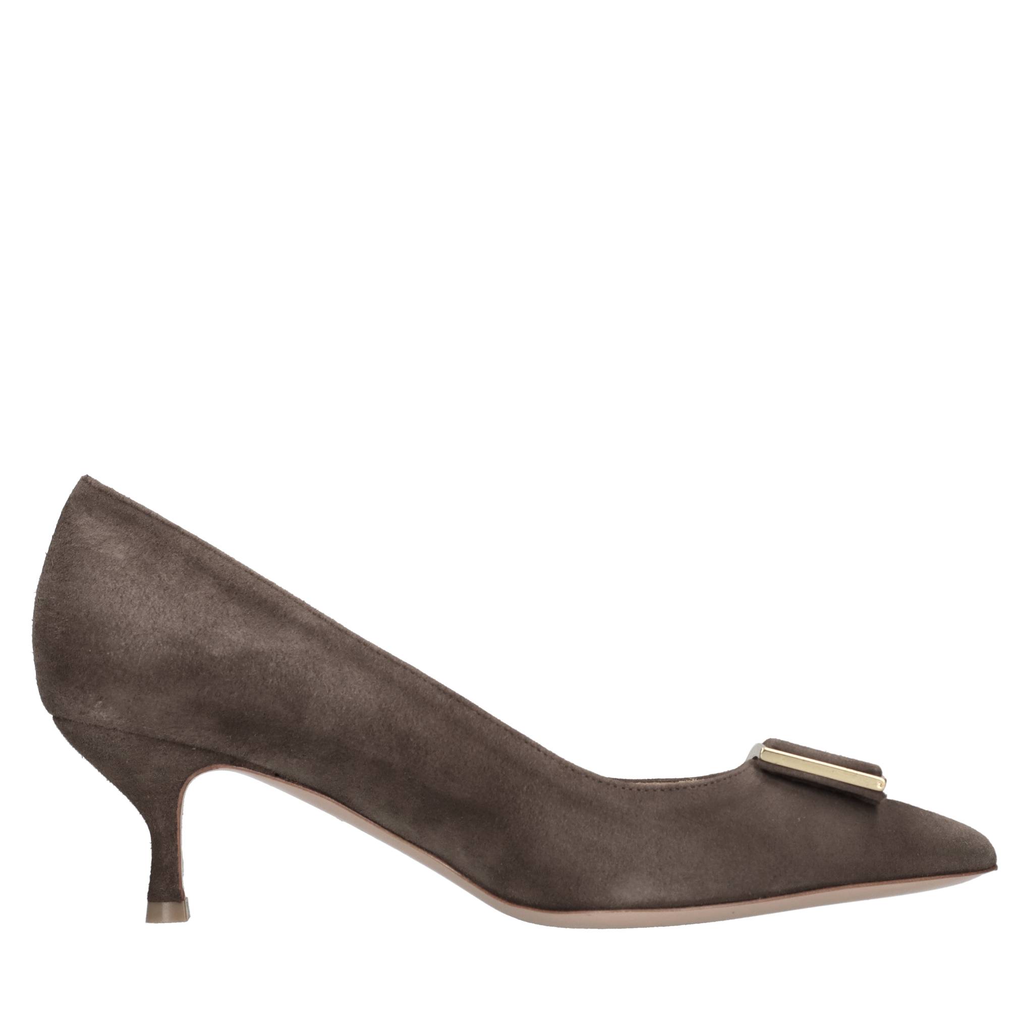 Décolleté in camoscio. Tomaia interna in pelle. Suola esterna in cuoio.
