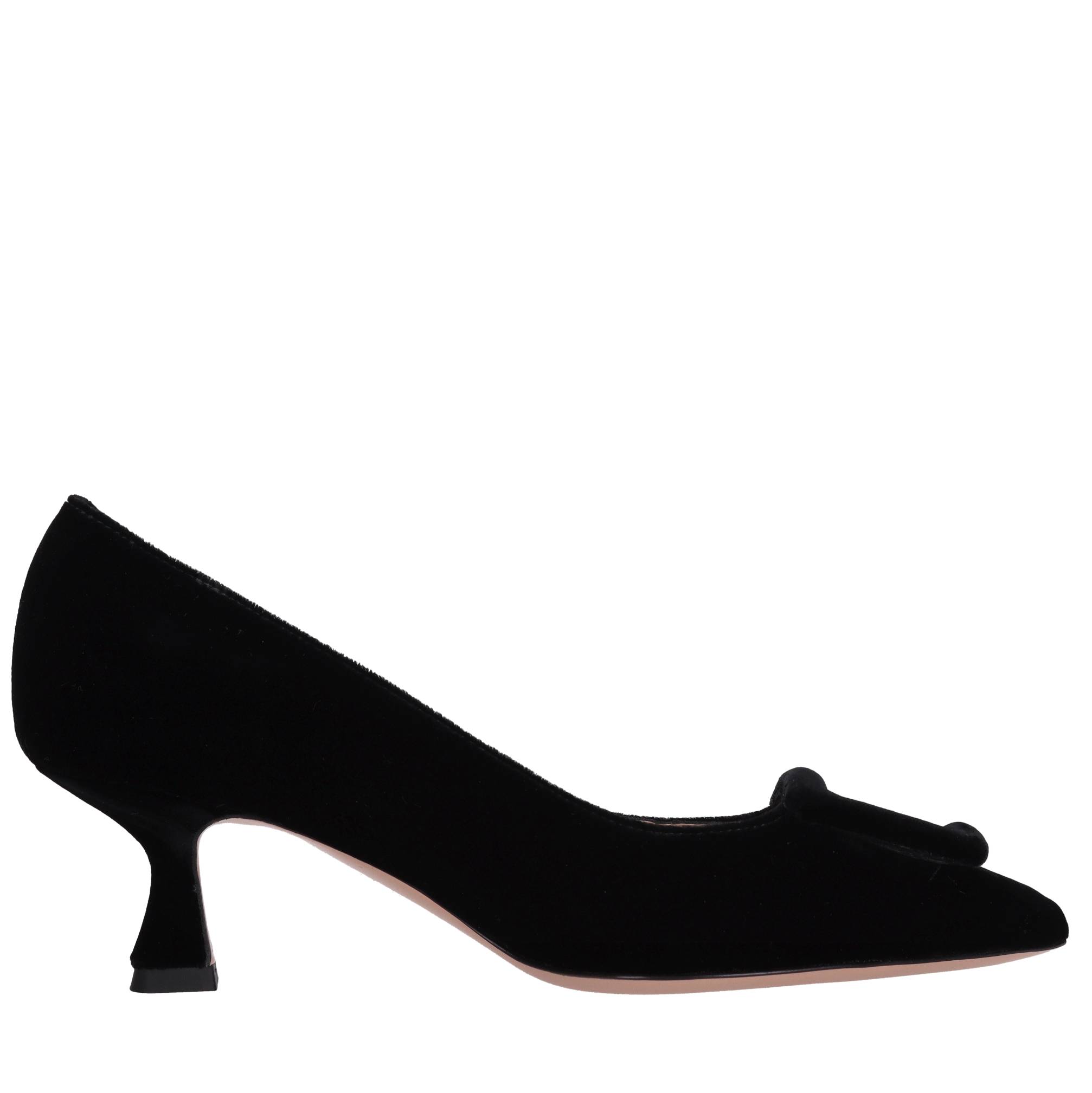 Décolleté in velluto. Tomaia interna in pelle. Suola esterna in cuoio.