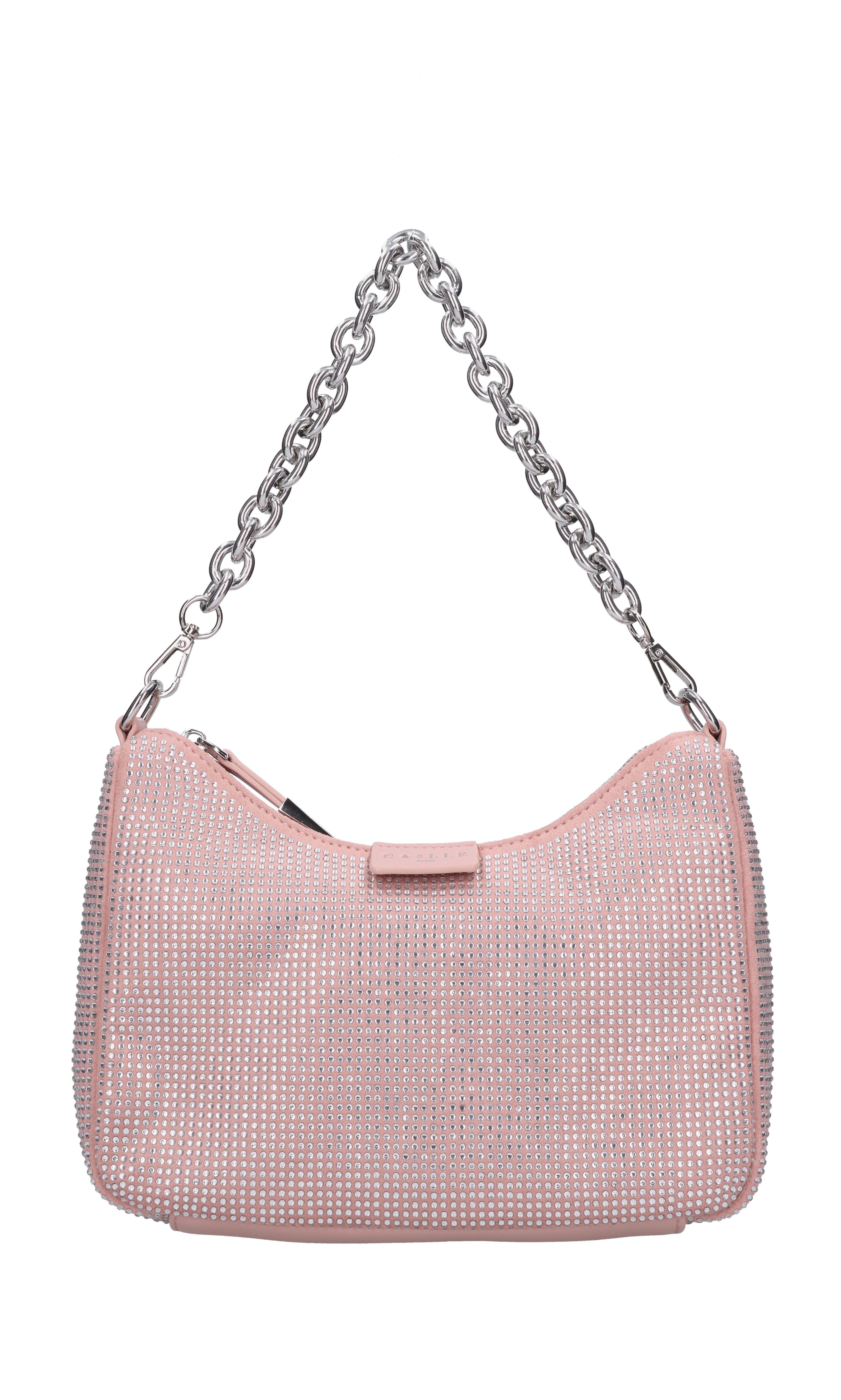 Beauty in tessuto con strass. Chiusura con Zip. 1 comparto. Tracolla regolabile e rimovibile.