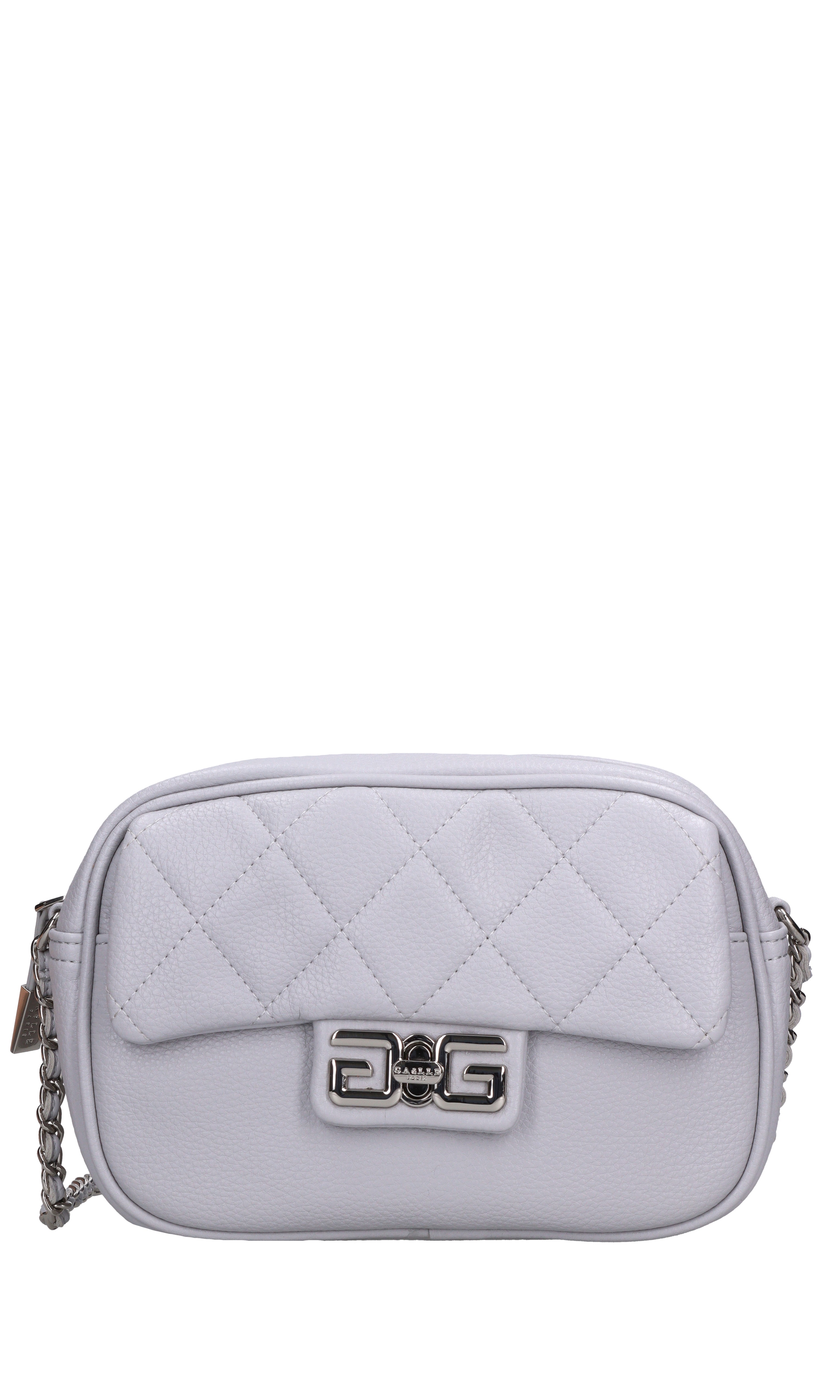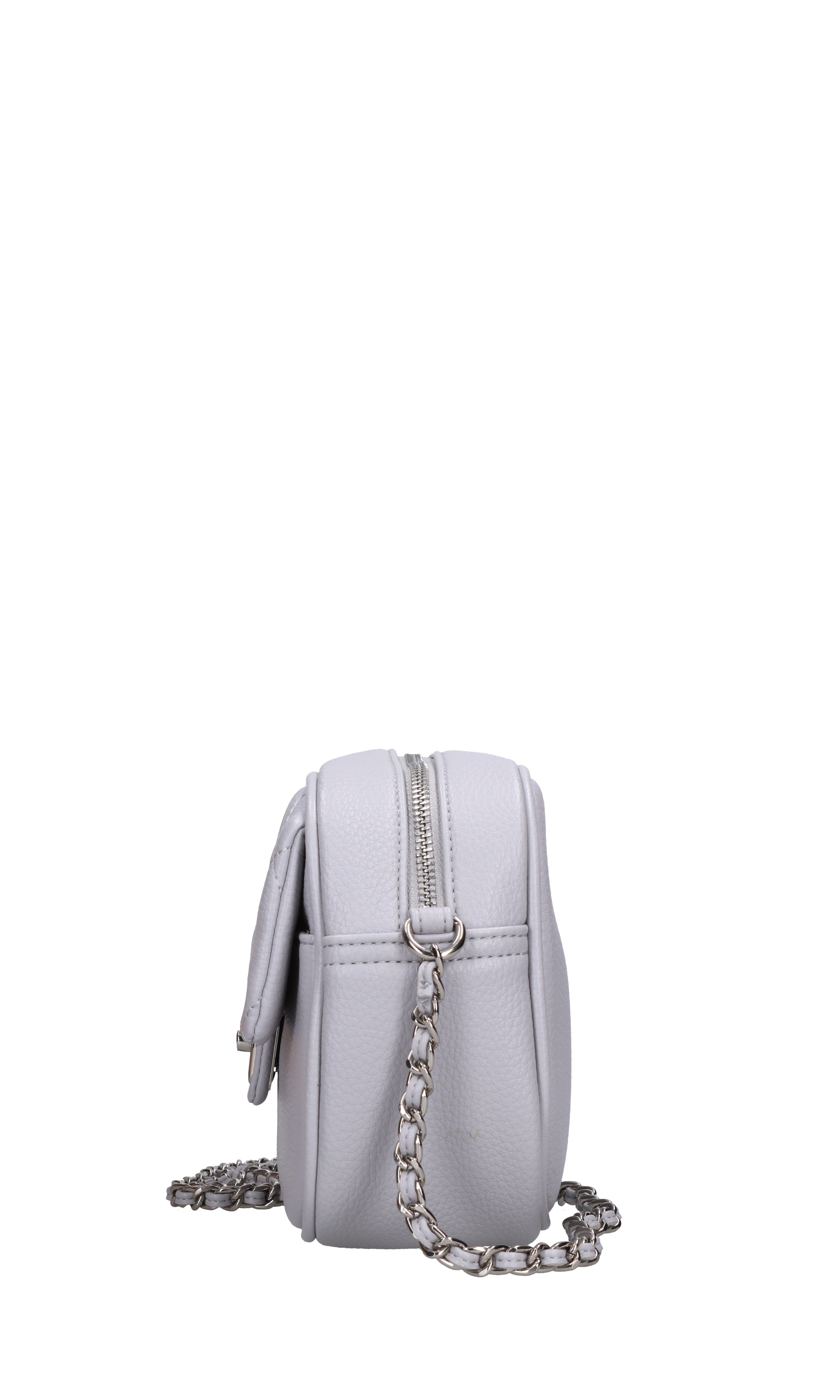 Borsa in ecopelle. 2 Comparti. 1 Chiusura con patta con girello - 1 con zip. Tracolla silver chain ed ecopelle.