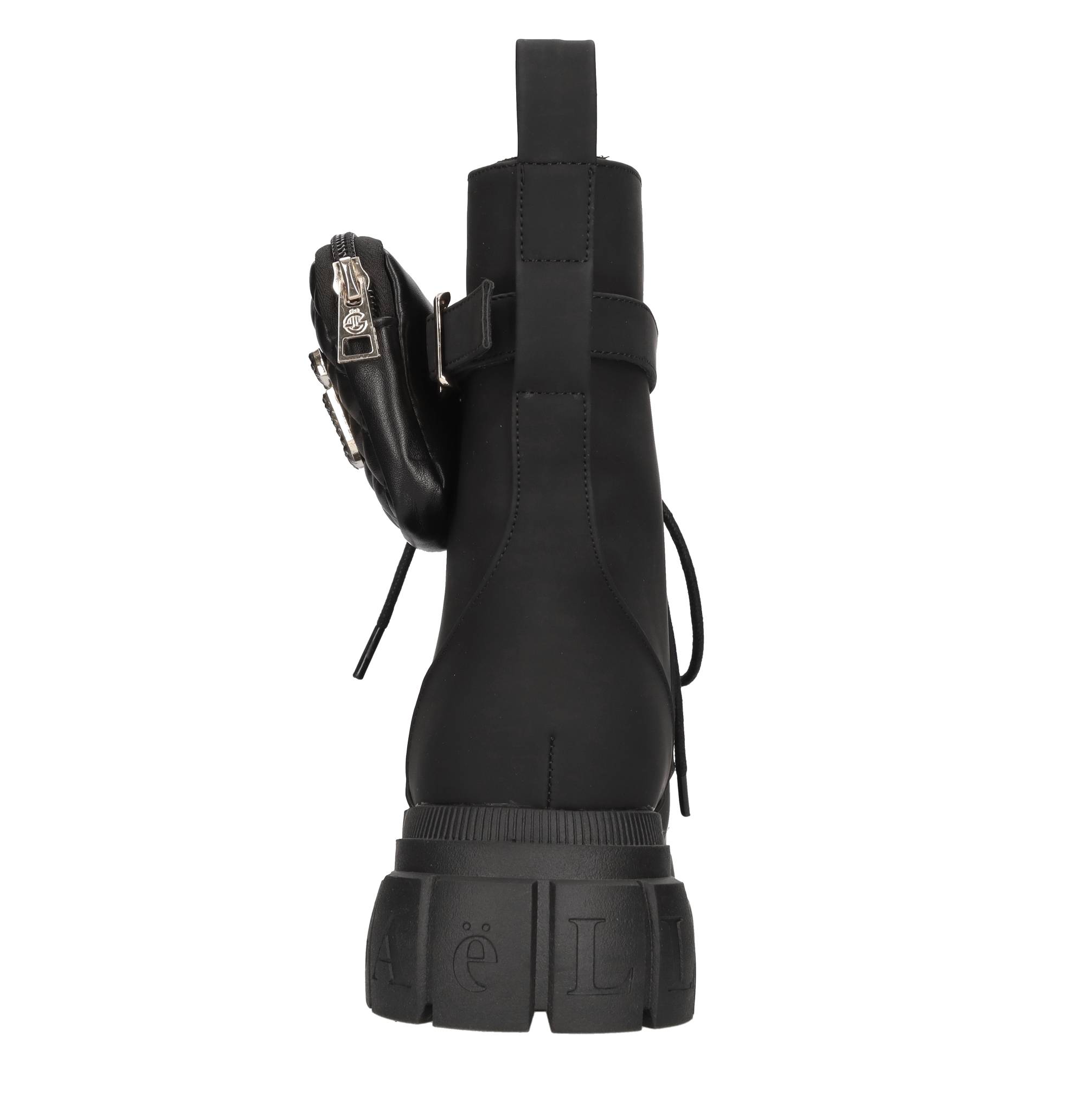 Stivaletti anfibi in ecopelle. Accessorio rimovibile portamonete con strass. Tomaia interna in ecopelle e tessuto. Suola esterna in gomma.