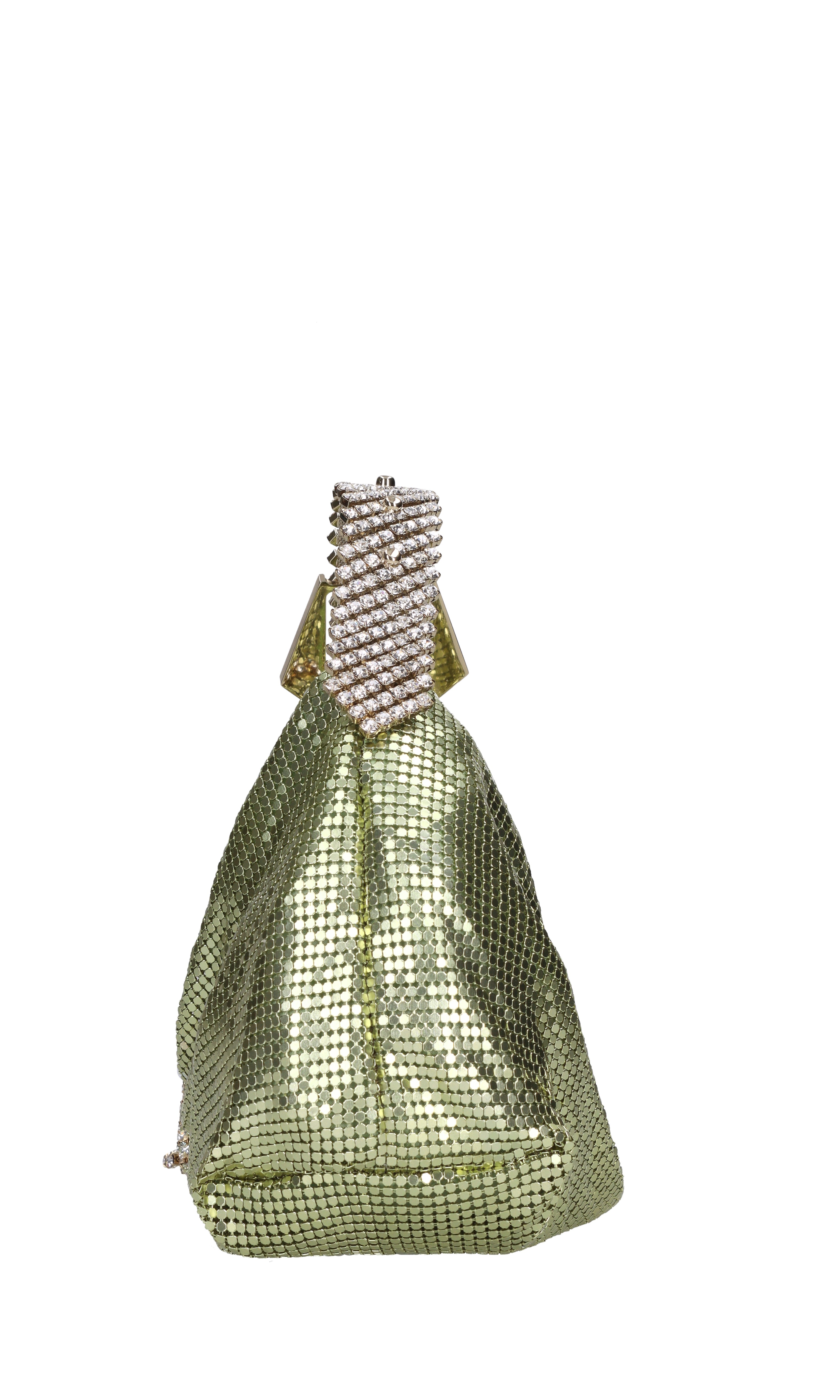 Borsa mini modello jill in maglia metallica. 1 Comparto. Chiusura con zip. Tracolla con strass rimovibile. Spedito su busta trasparente.