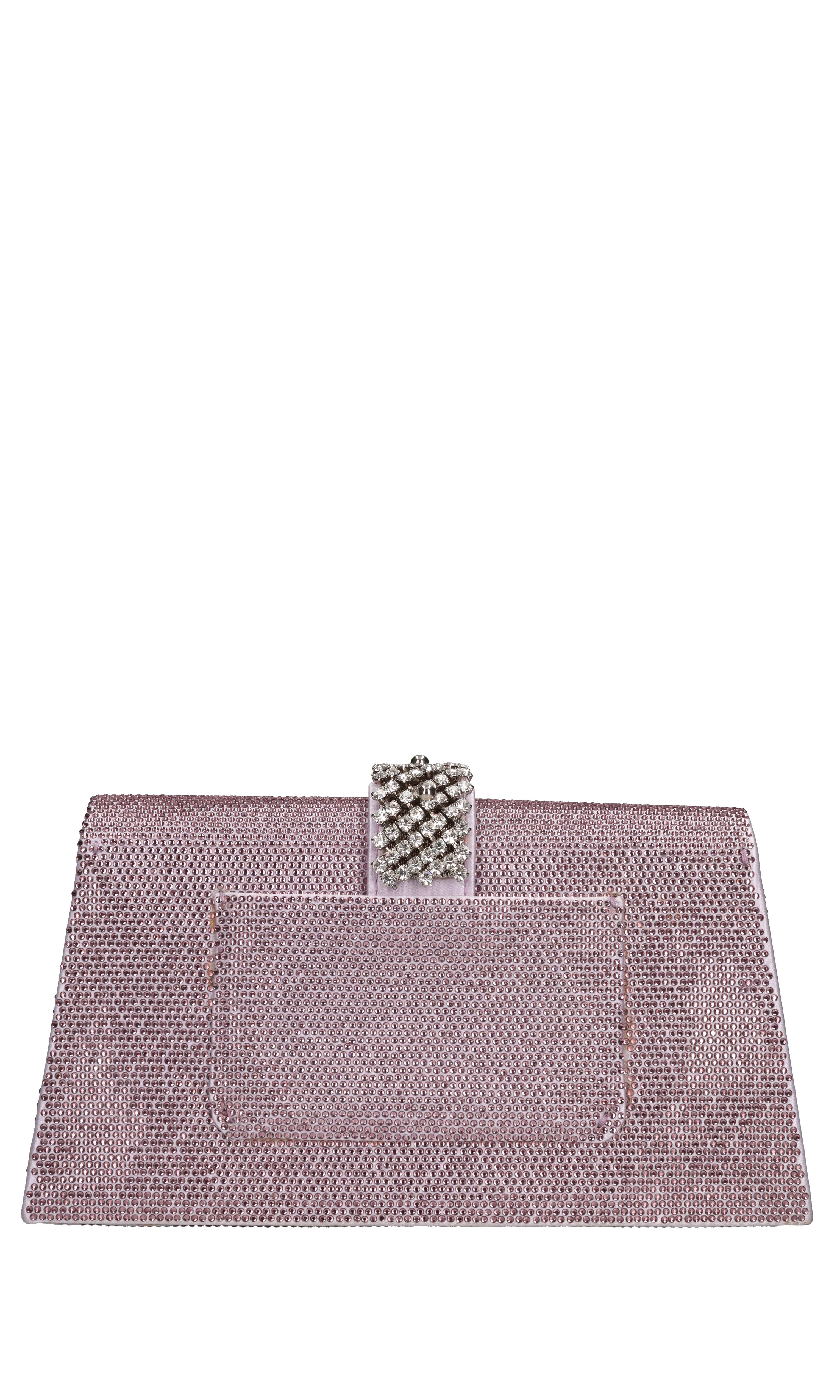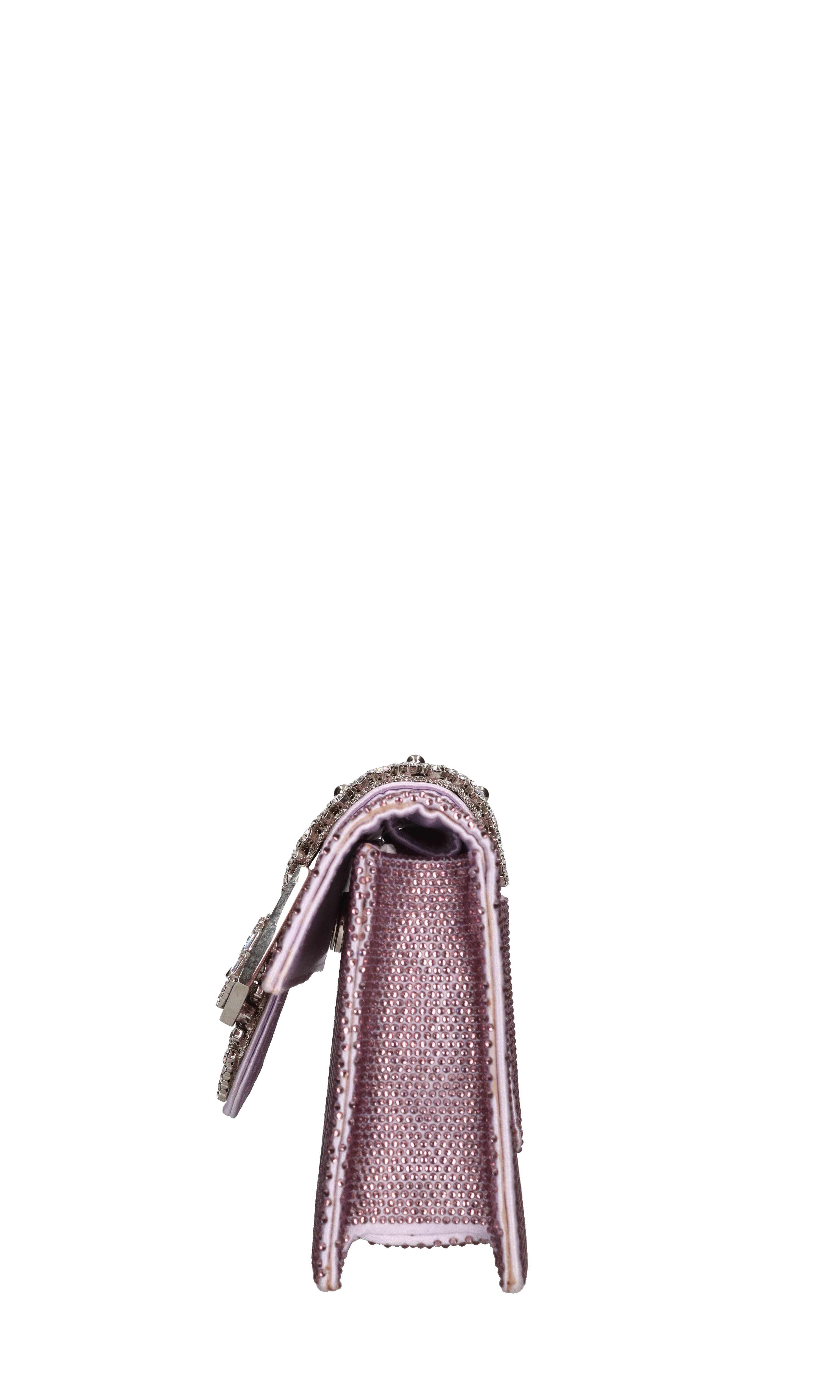Borsa modello JADE in tessuto e strass. Chiusura con patta con bottone magnetico. Fibbia gioiello con strass. 1 Comparto. Tracolla in tessuto regolabile e removibile. Tasca posteriore esterna. Campionario.