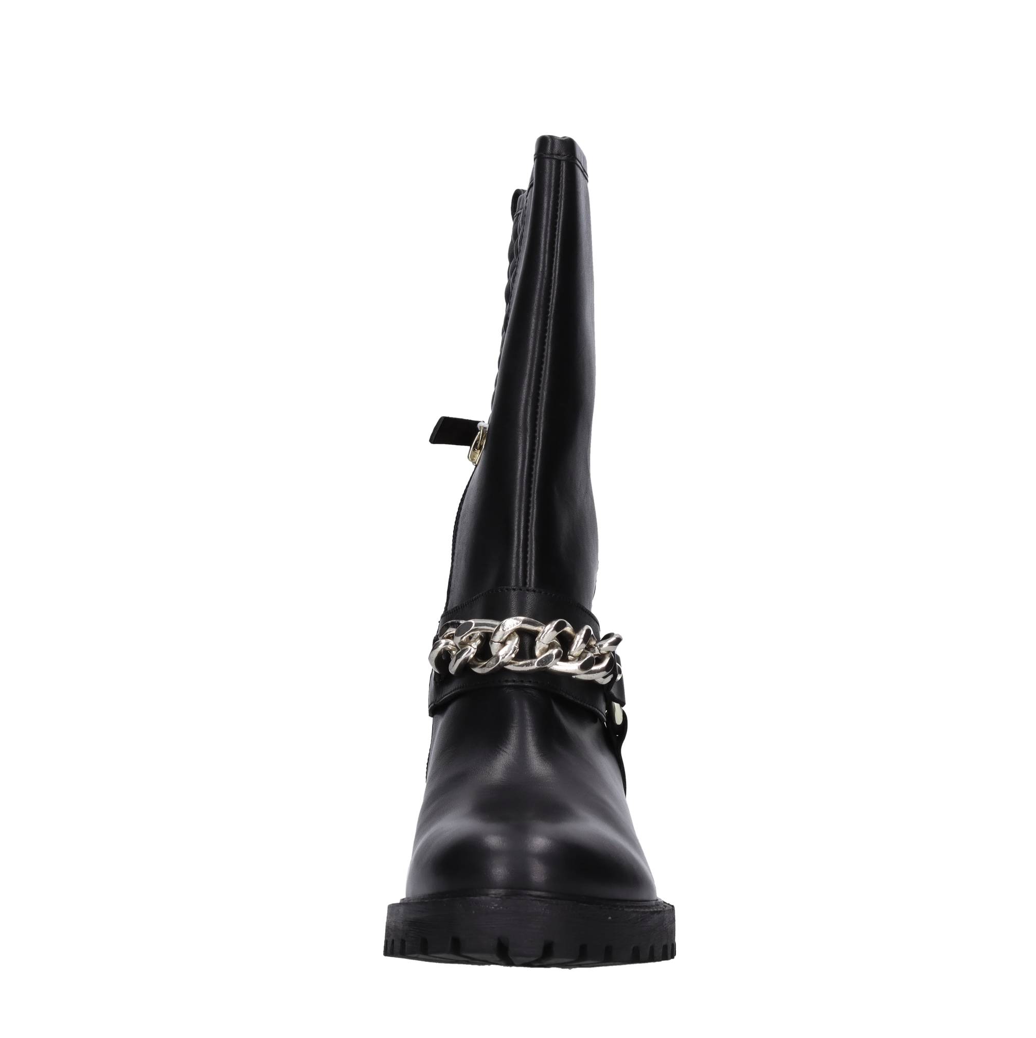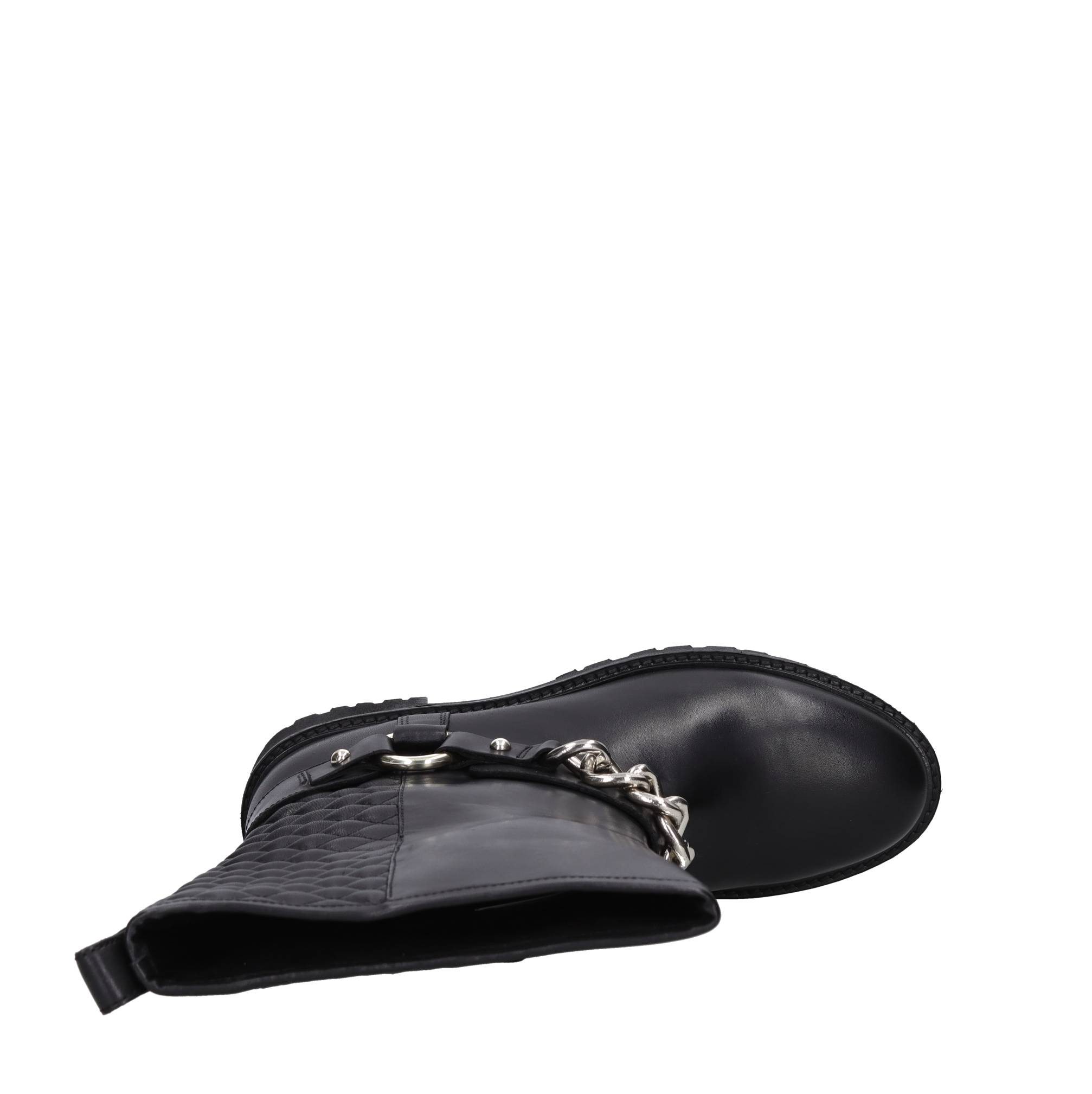 Stivaletti in pelle. Suola esterne in gomma. Tomaia intern in tessuto e materiale sintetico. Zip laterle interna. Silver chain.