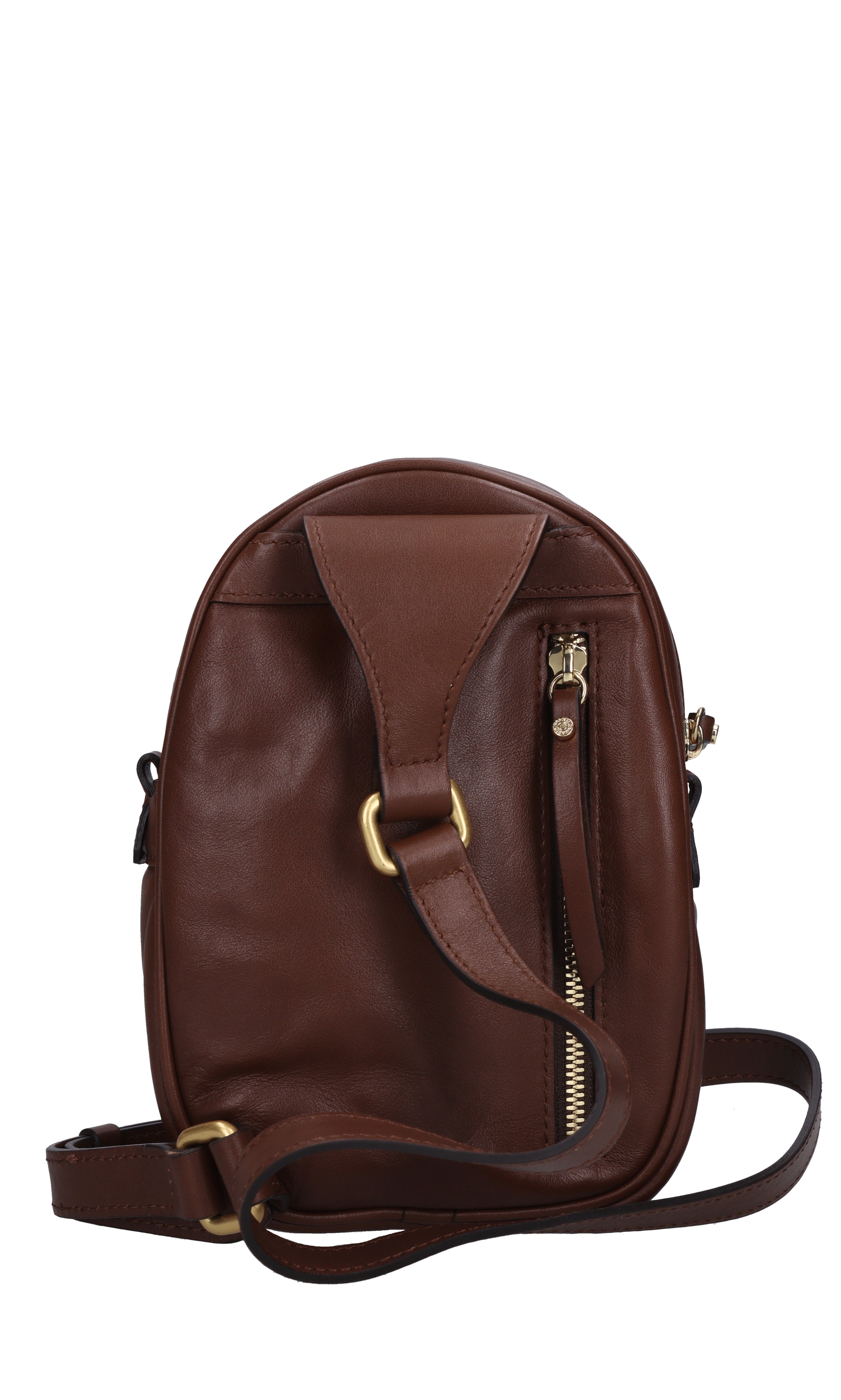 Zaino mini in pelle. Monospalla. 1 Comparto. Chiusura con zip. 1 Tasca posteriore esterne. Regolabile.
