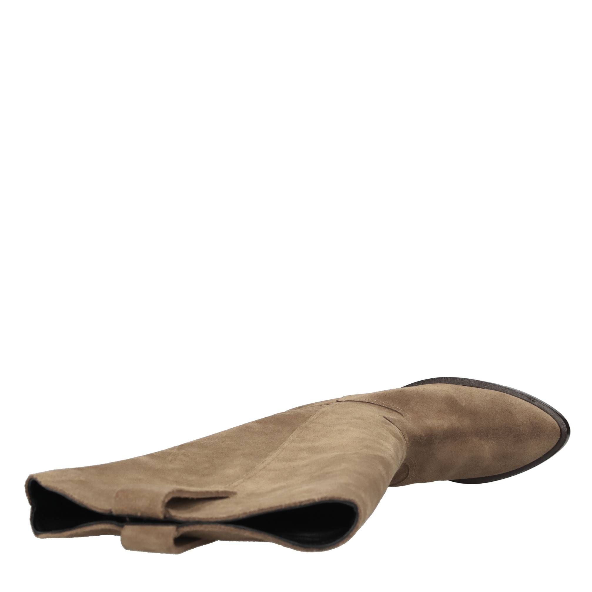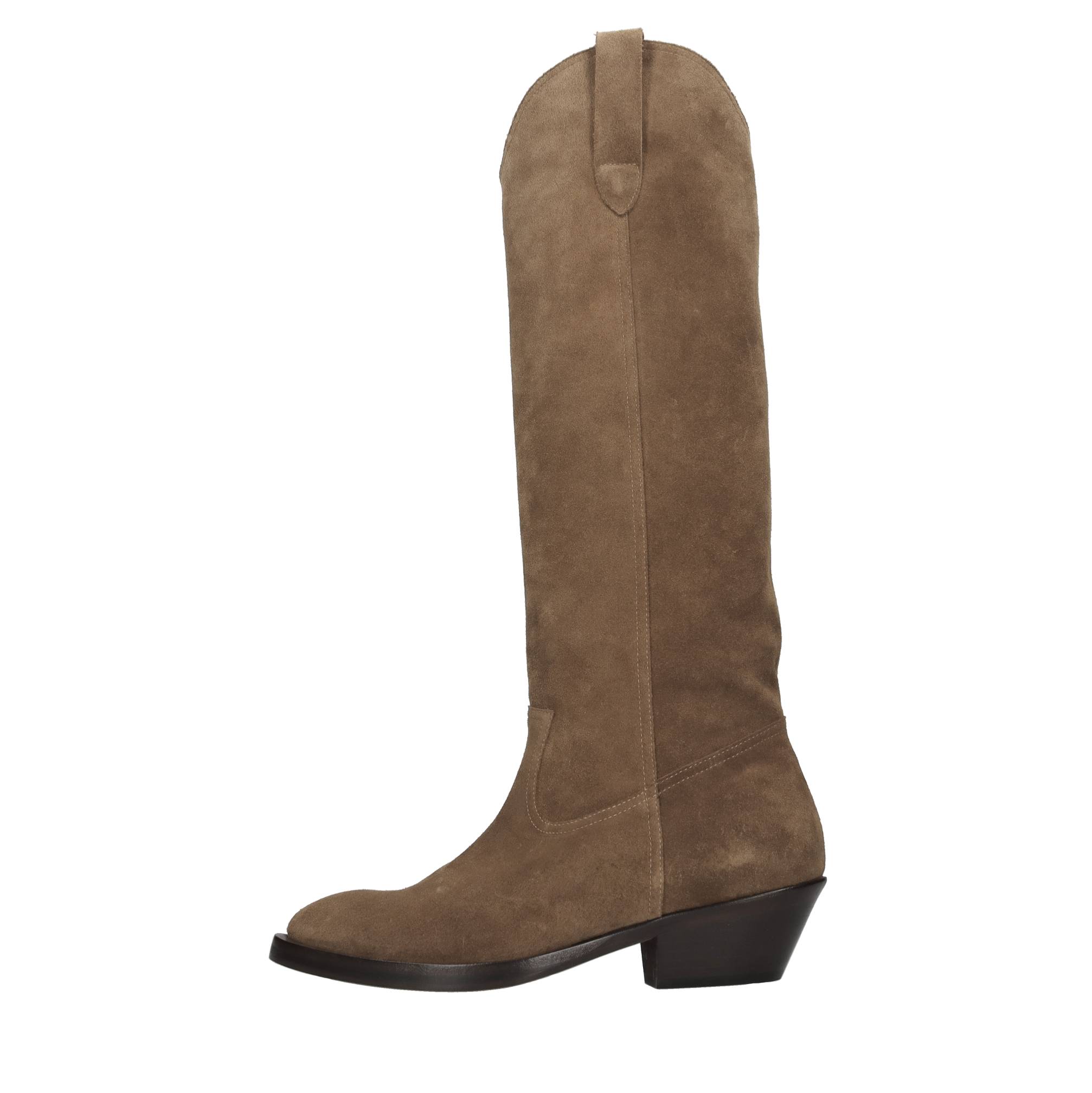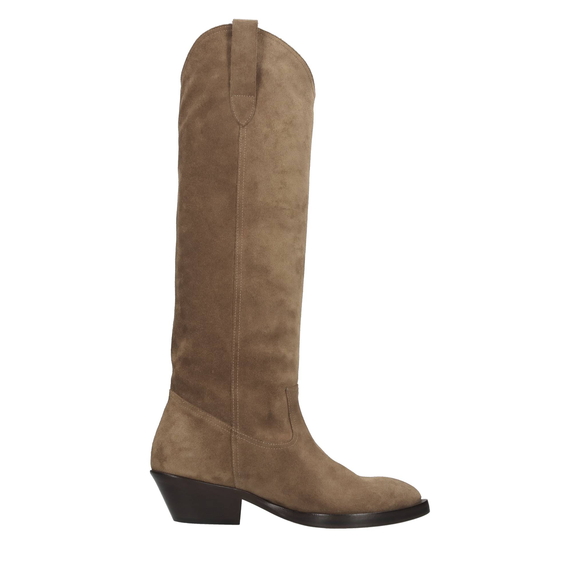 Stivali texani in camoscio. Tomaia interna in pelle. Suola esterna in cuoio.