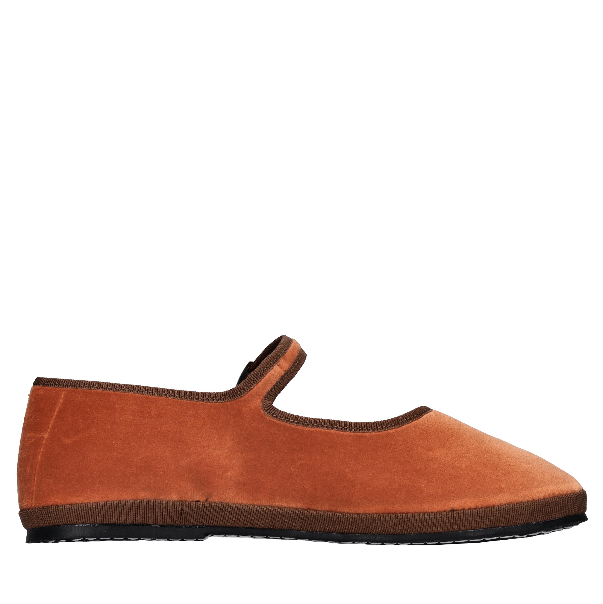 Ballerine Friulane in velluto. Tomaia interna in tessuto. Suola esterna in gomma. Made in Friuli.