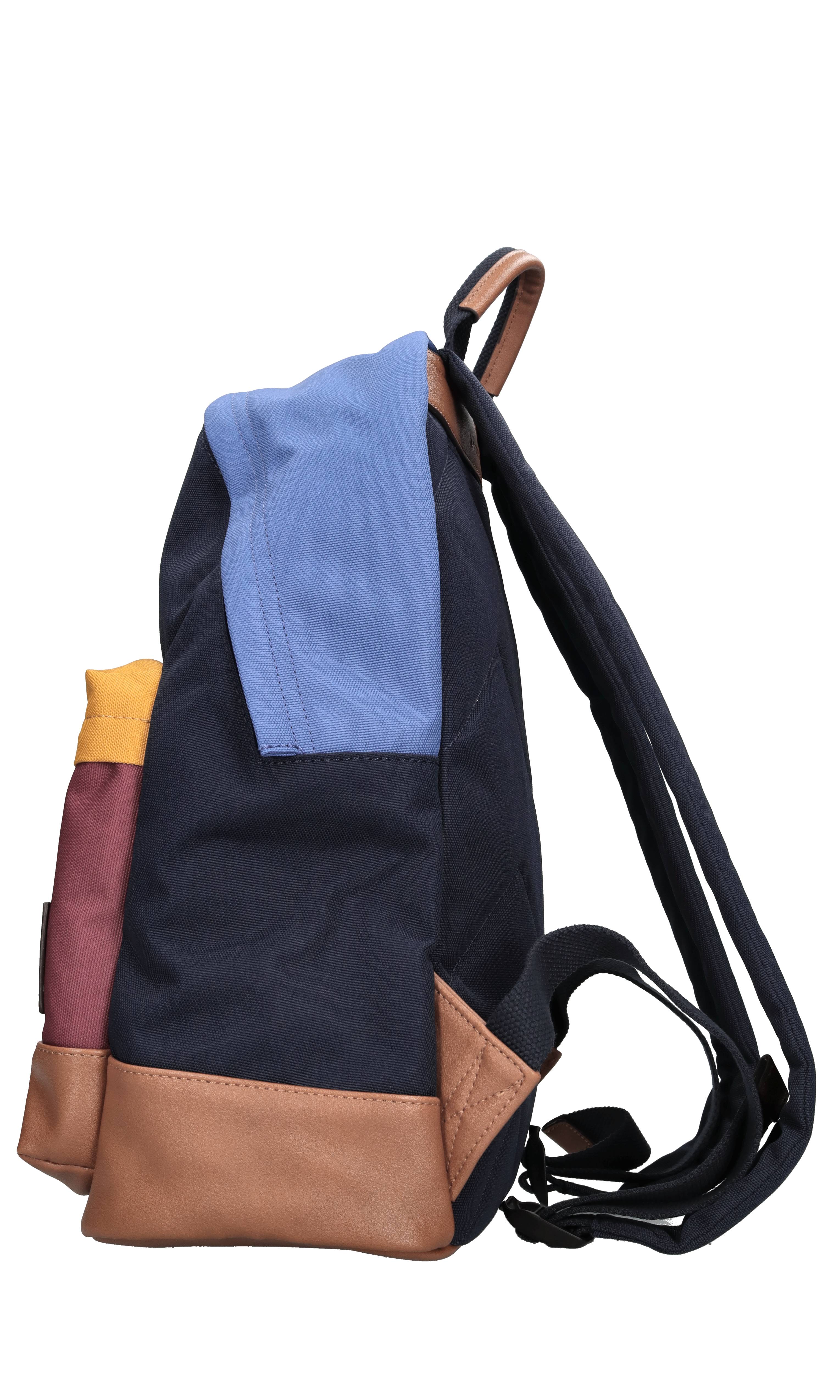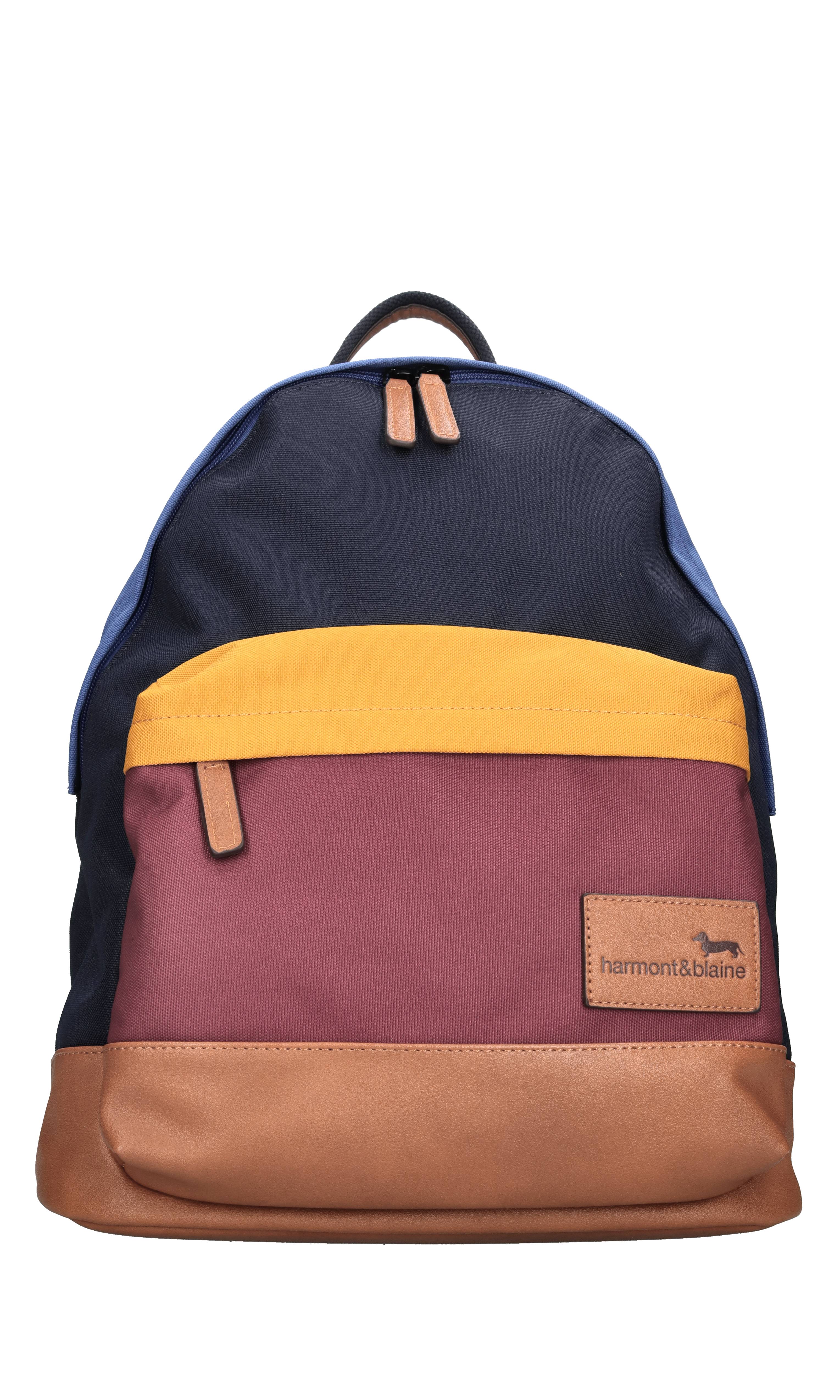 Zaino in pelle e tessuto. 1 Comparto. 1 Tasca. Sistema d'ancoraggio al trolley. Chiusura con zip. Porta PC. Spedito su bustina trasparente.