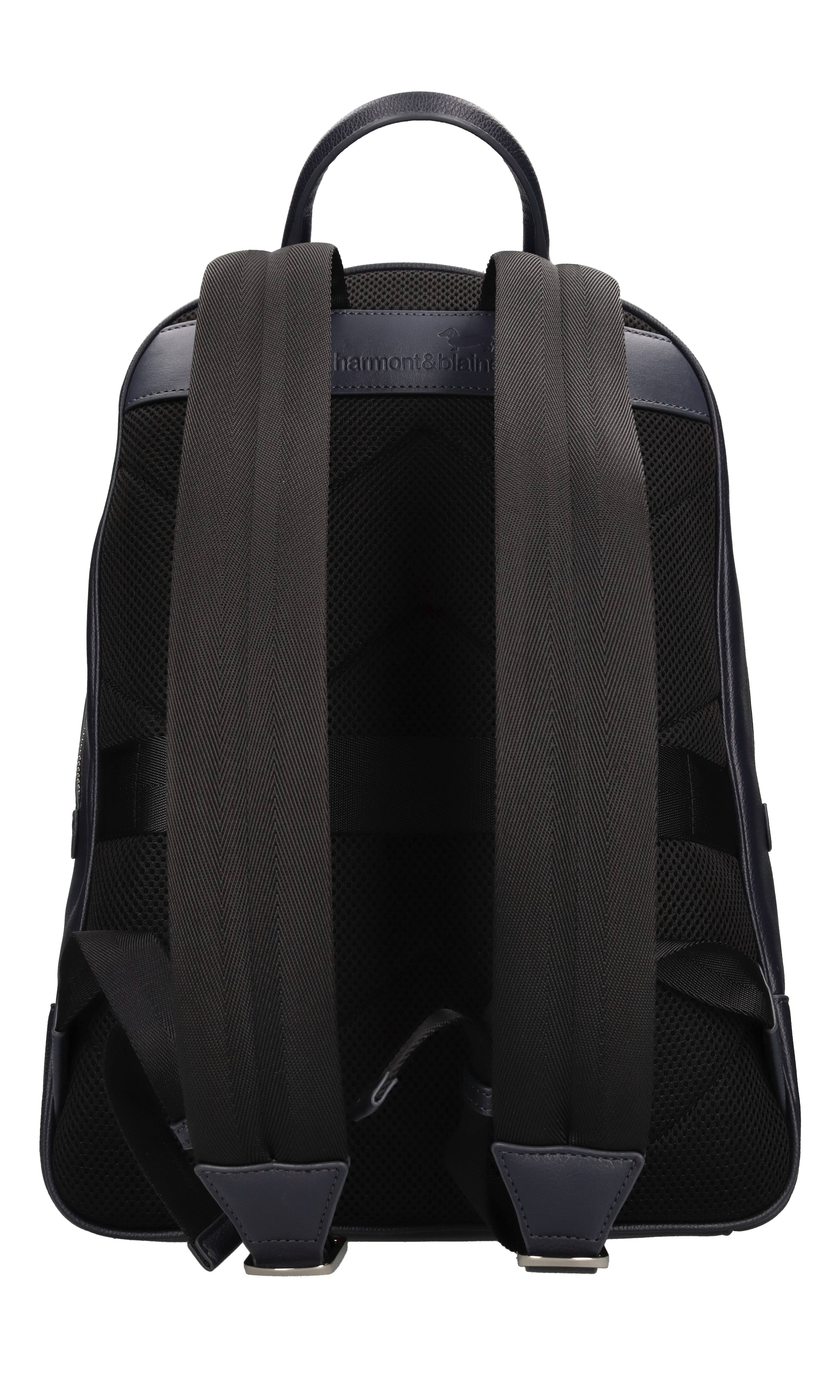 Zaino in pelle ed ecopelle. 1 Comparto. 1 Tasca. Chiusura con zip. Porta PC. Sistema d'ancoraggio ai trolley. Spedito su bustina trasparente.