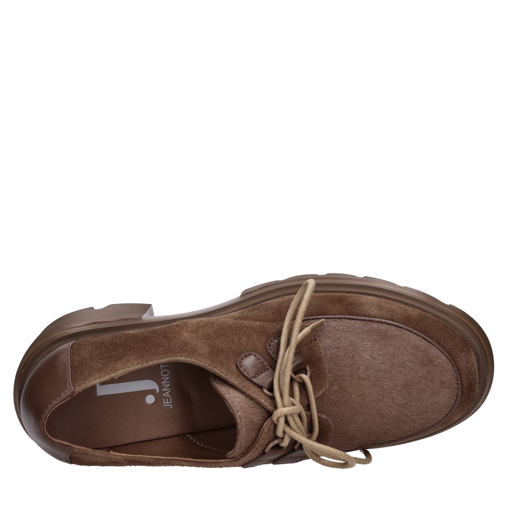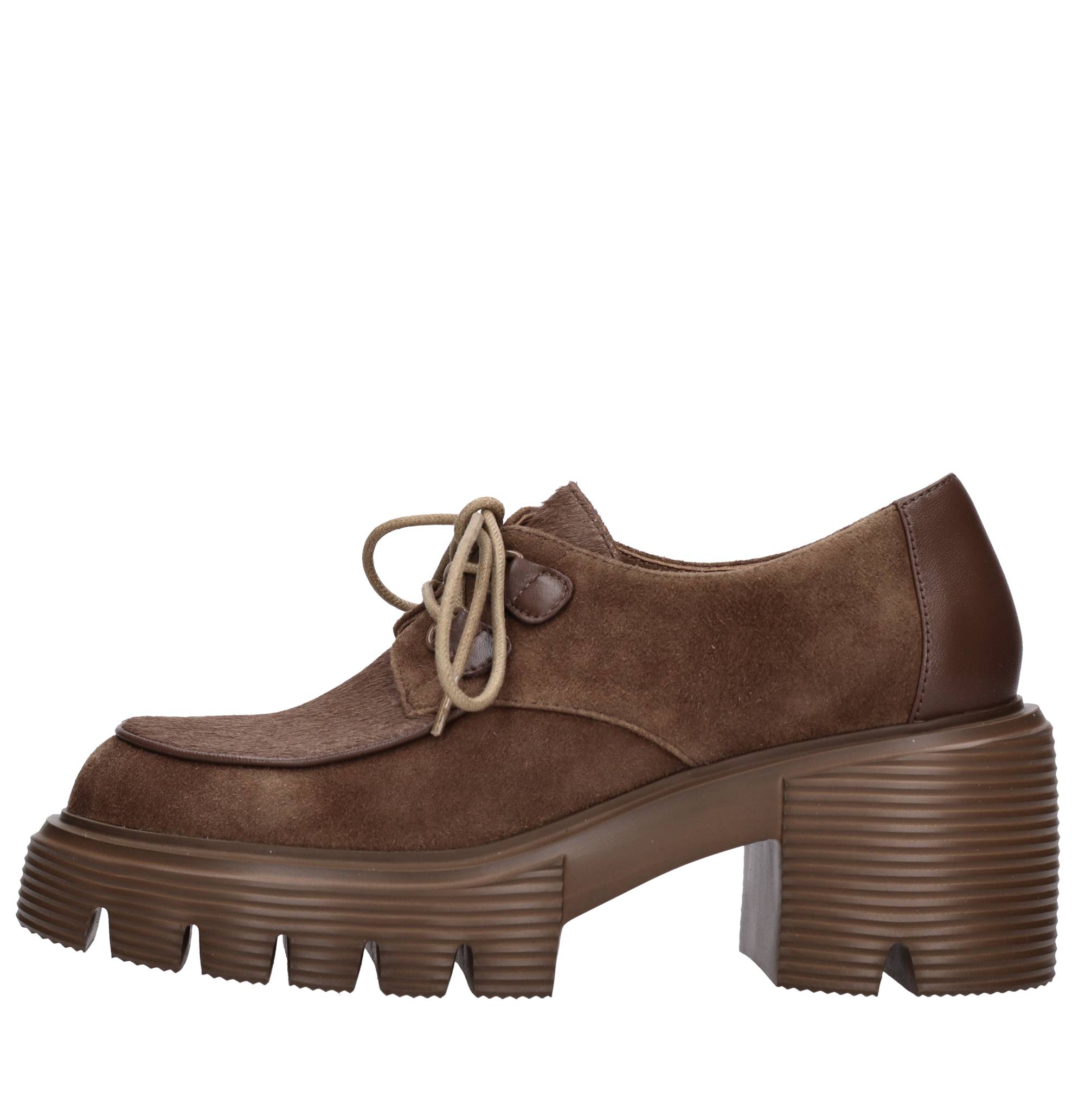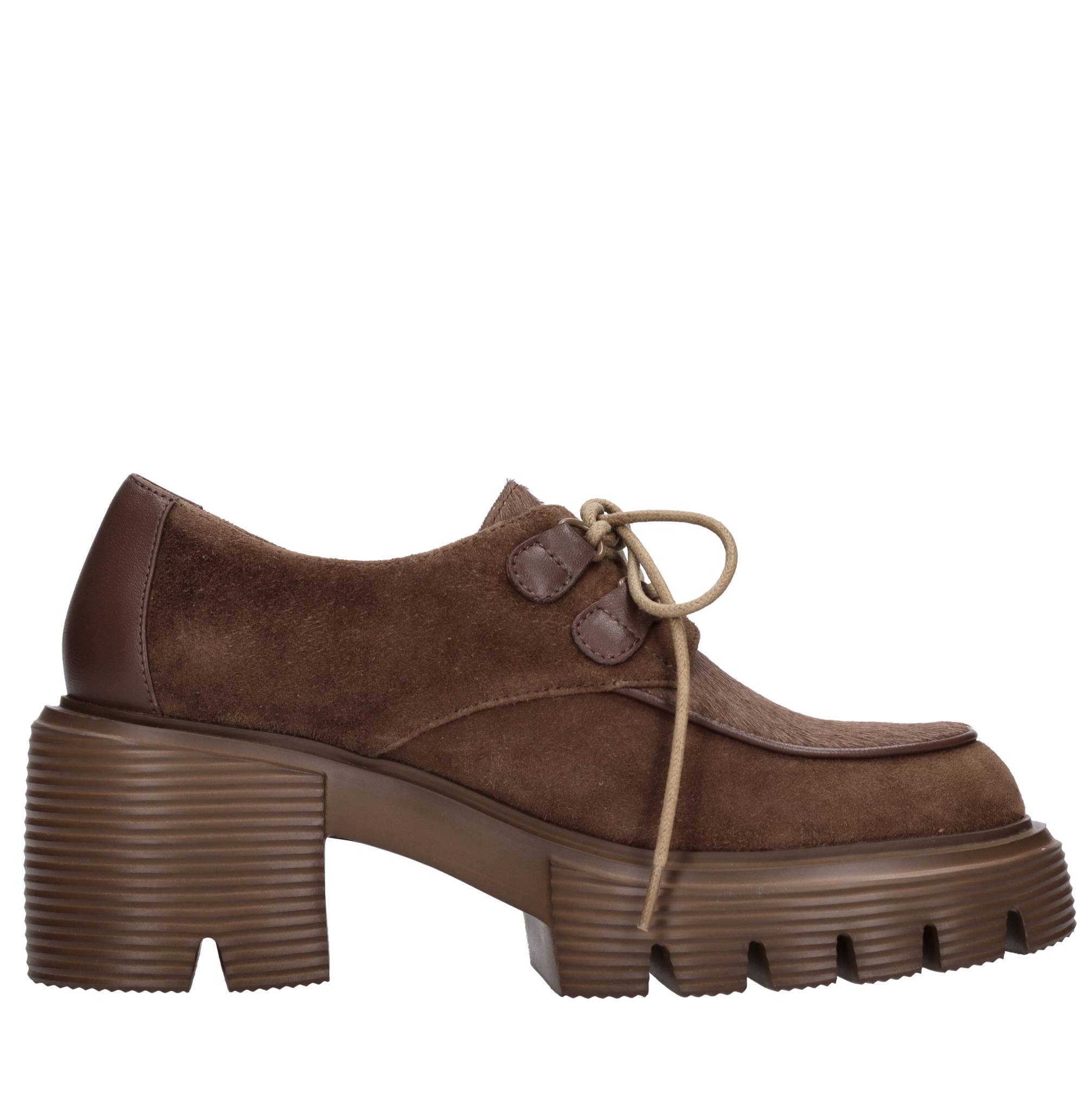Stringate in pelle camoscio e cavallino. Tomaia interna in pelle. Suola esterna in gomma.