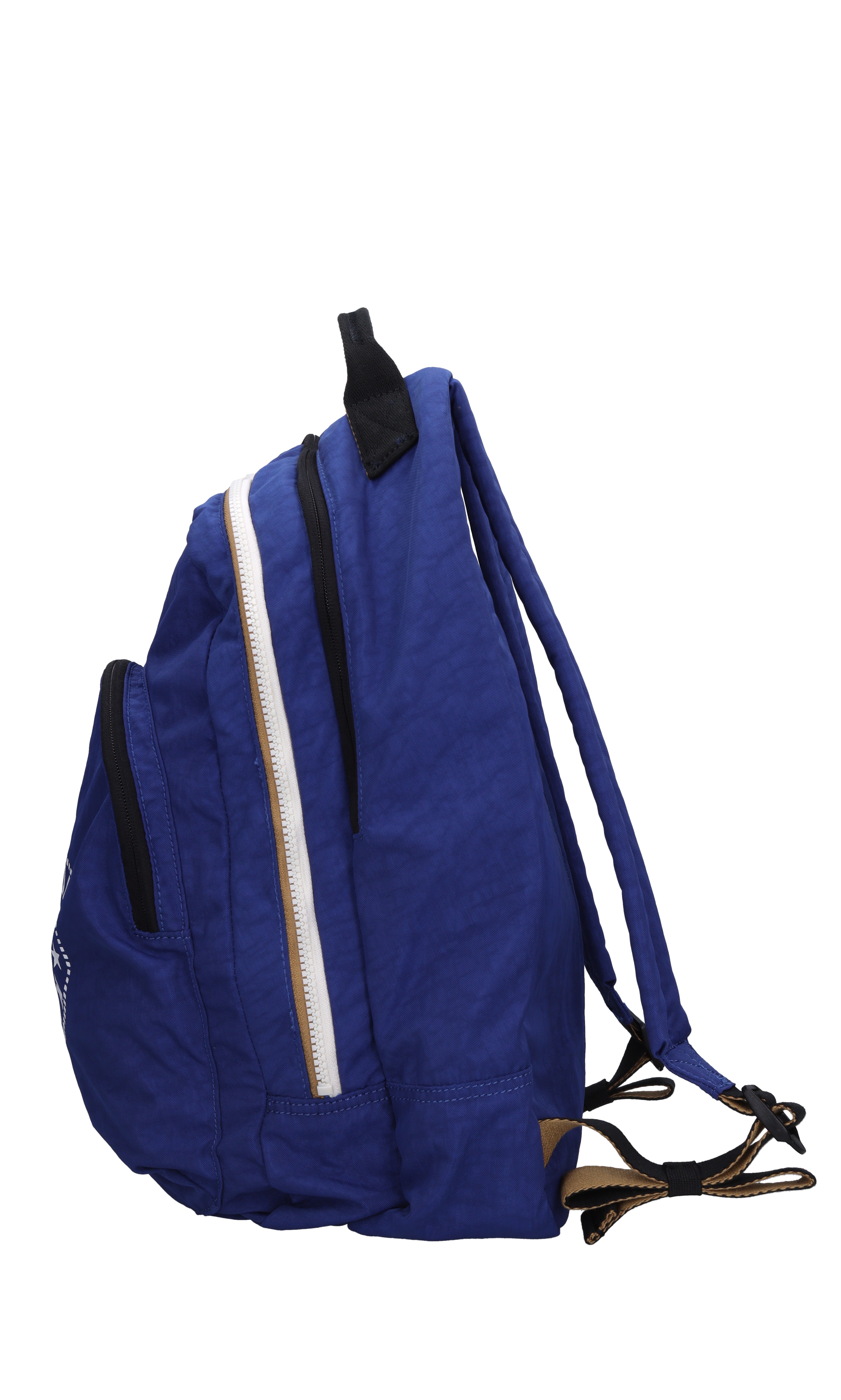 Zaino in tessuto tecnico. 1 comparto. 2 tasche frontali. Chiusura con zip. Spallacci regolabili. Spedito su bustina trasparente.