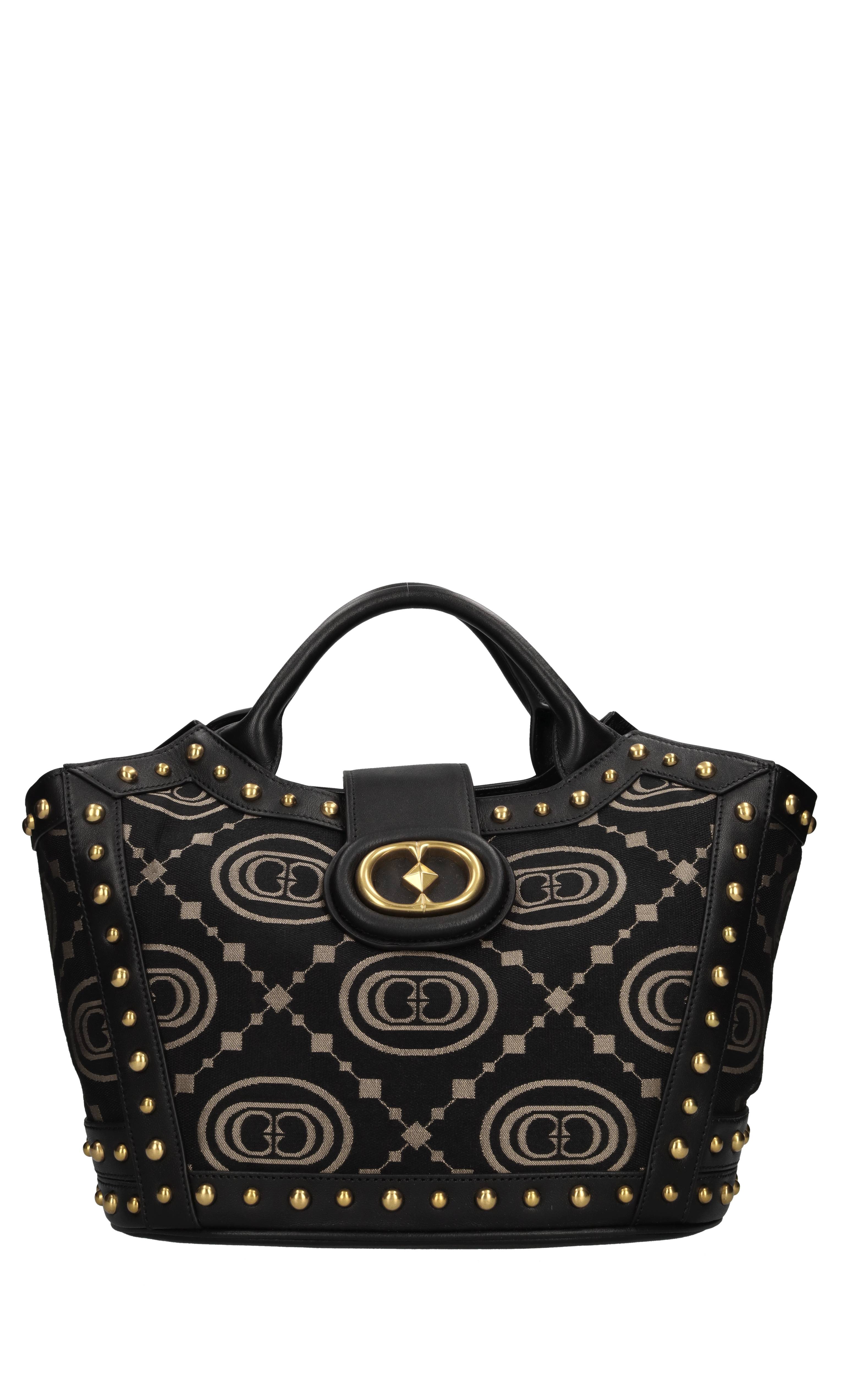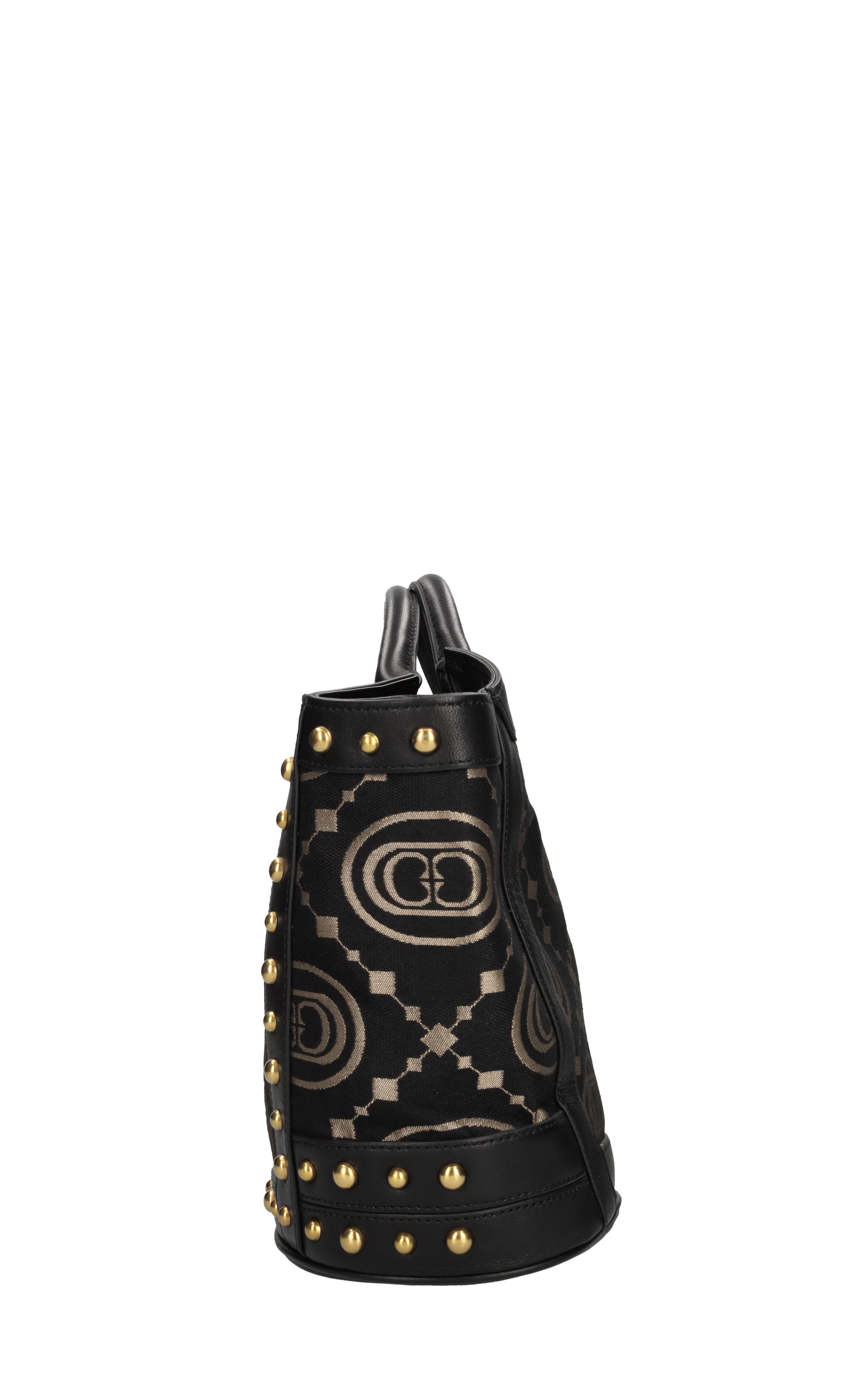 Borsa in pelle e tessuto. 1 Comparto. Chiusura con bottone a scatto. Senza cerniera. Tracolla golden chain e pelle removibile.